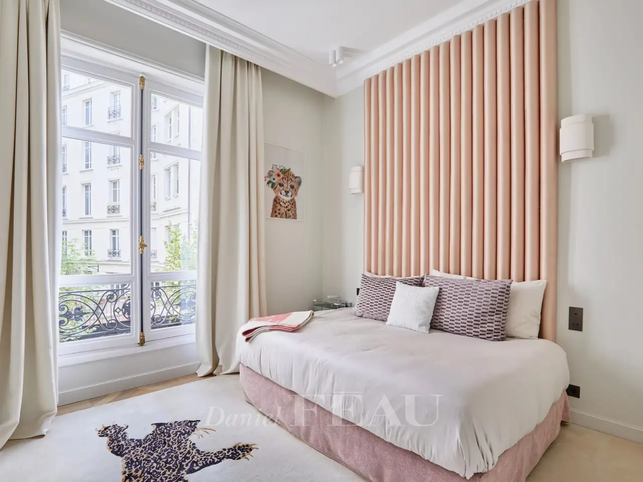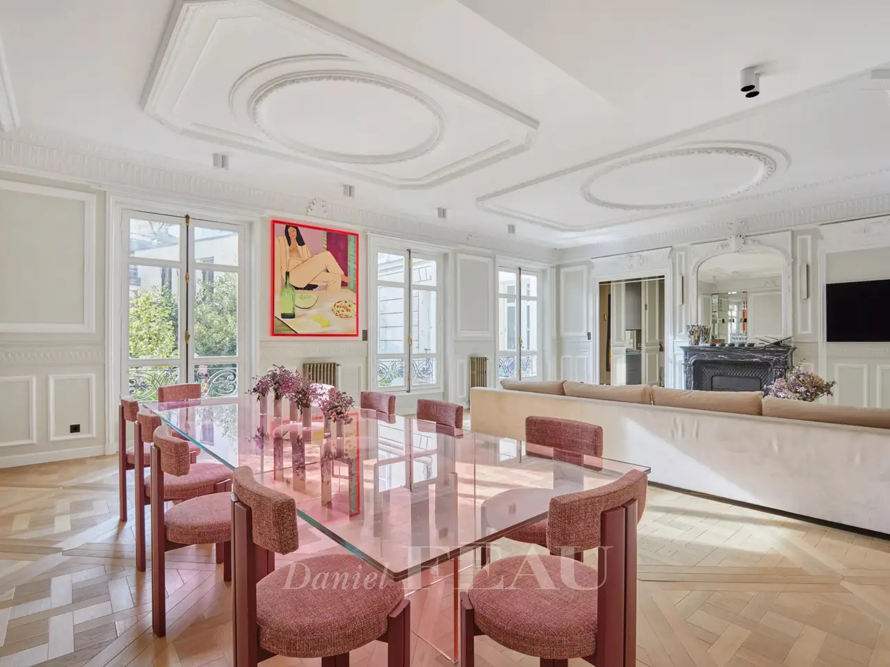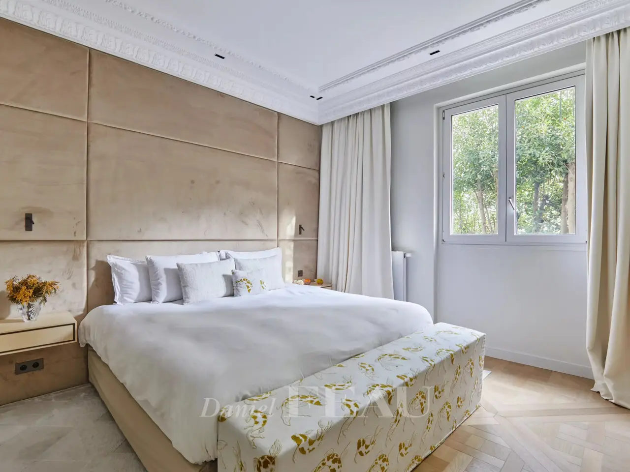 This meticulously renovated south-west facing apartment overlooking a leafy garden is on the 1st floor of a fine late 19th century building located in a street lined with fine period buildings just a stone’s throw from Parc Monceau and its iconic rotunda. Featuring 3.30 metre high ceilings and particularly bright, it includes an over 60 sqm double living/reception room, an adjacent equipped kitchen, a master suite with a bathroom and wc, two further bedrooms, a bathroom and a separate wc. The apartment benefits from an excellent floor plan. With bespoke storage space and a cellar.