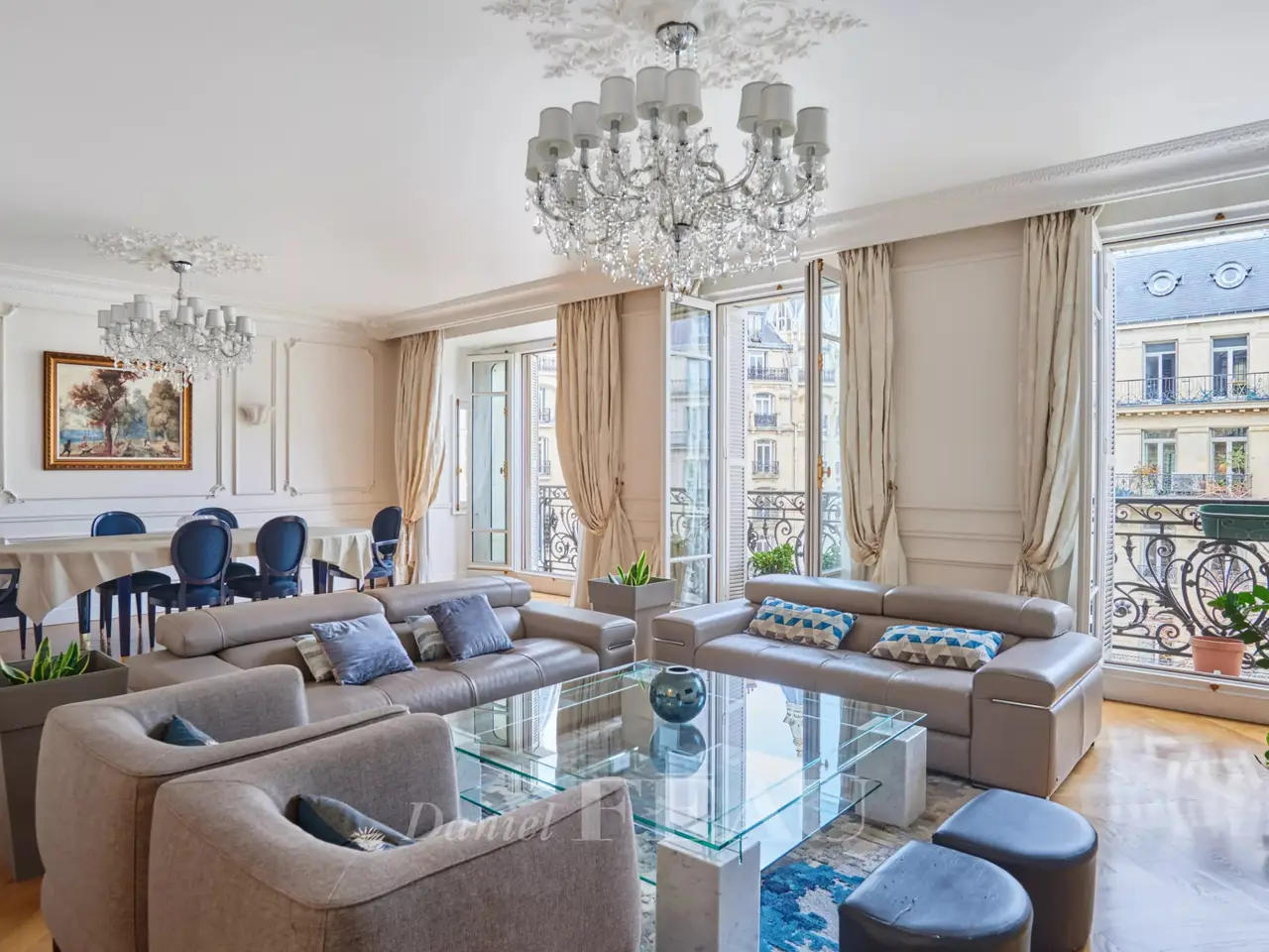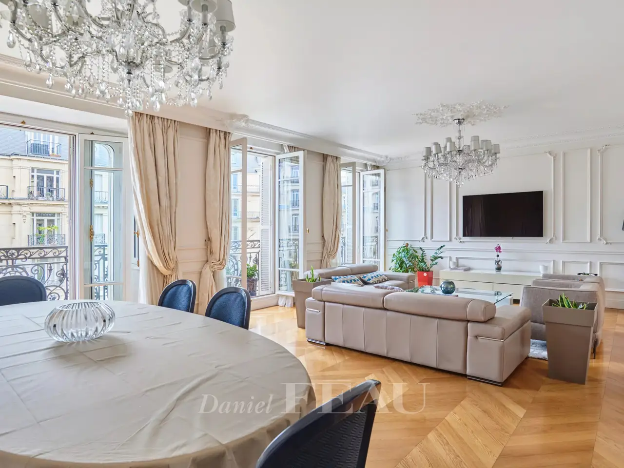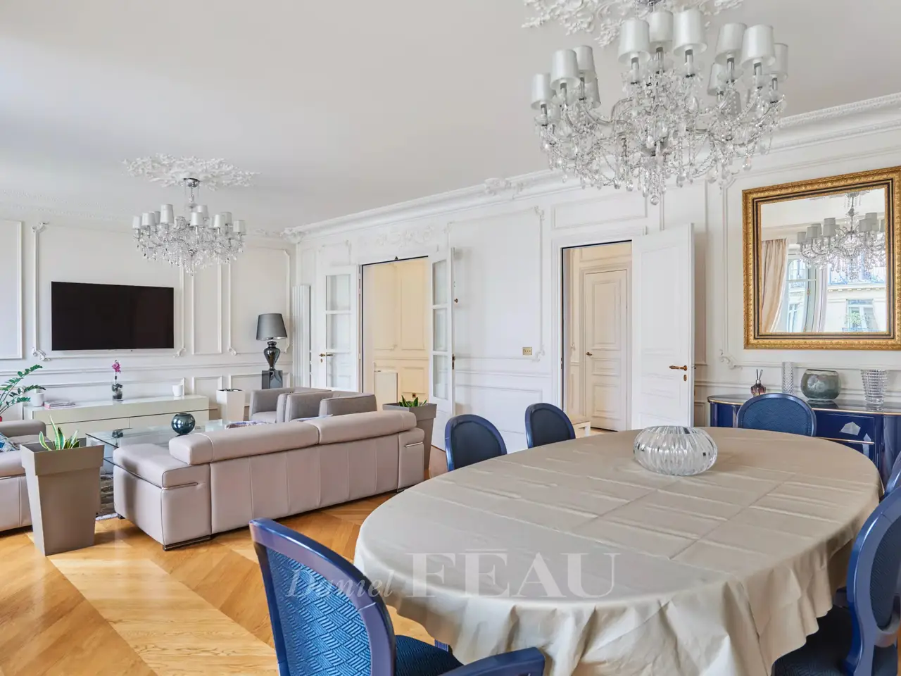 Wagram/Courcelles neighbourhood. This entirely renovated near 150 sqm apartment bathed in sunshine is on the 4th floor of a superb early 20th century freestone building with a lift and very well-maintained common areas. Air-conditioned and benefiting from an excellent floor plan, it includes a bright living/reception room and dining room enjoying an open view, a spacious kitchen with dining facilities, three generous bedrooms each with a shower room, and a separate wc. Ample fitted storage space. Period features include parquet flooring and mouldings. With a cellar and a storage room.
