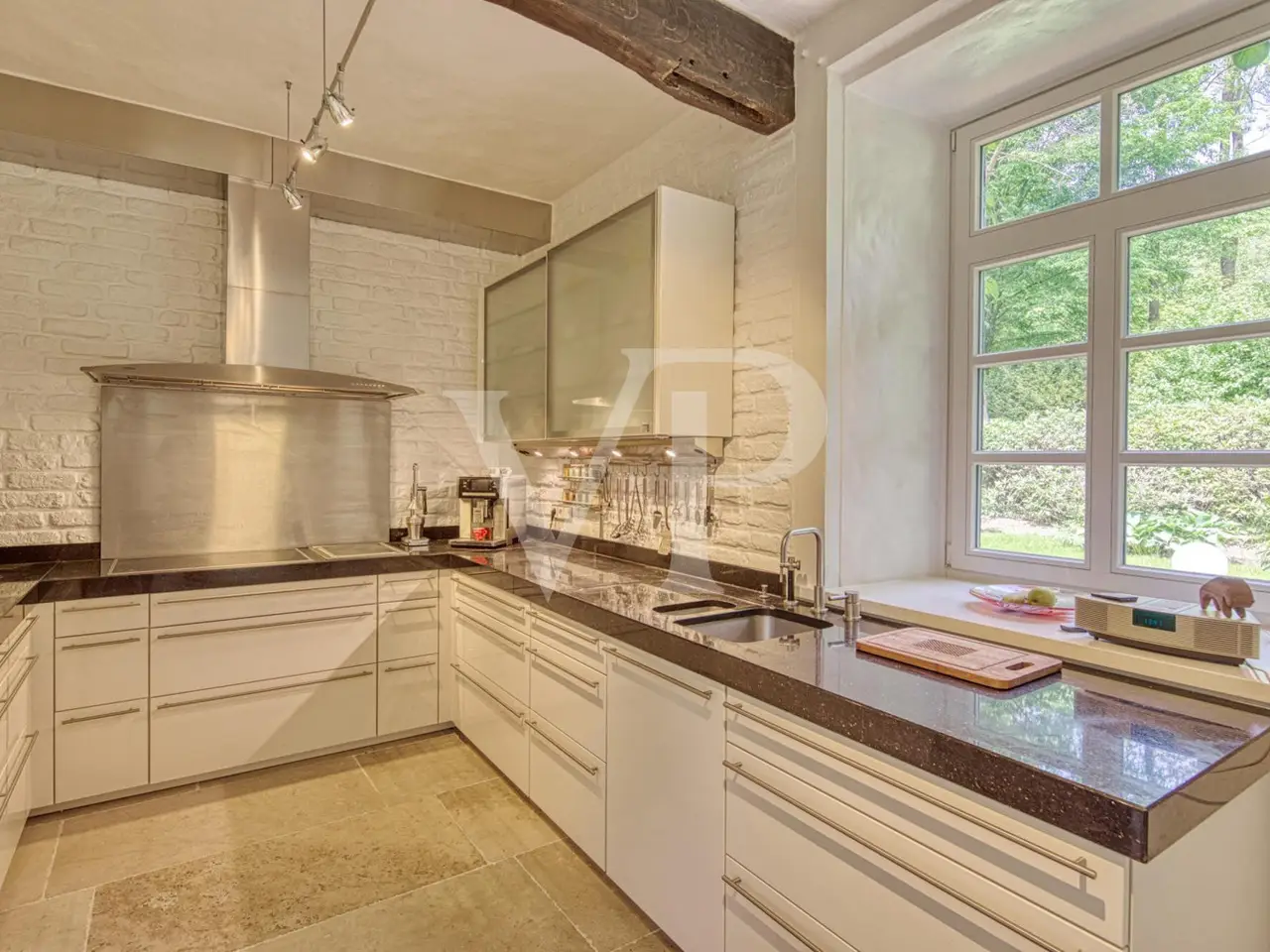 Prestigious country house with history, charm and high living comfort Nestled in the picturesque natural landscape of the Gedau Valley and located directly on the Münsterbach stream, this extraordinary, detached property uniquely combines the charm of a historic country estate with modern living comfort. The listed house was built in 1981 in the style of the former 17th century Kupferhof and has since been continuously developed with great attention to detail. The country house is the quietest and most secluded house within the historic Gut Gedau complex - with its own access to the stream and a particularly private, almost secluded position on the edge of the ensemble. The location combines maximum seclusion with being embedded in a listed estate of particular cultural value. Particularly noteworthy is the comprehensive core renovation of the first floor between 2021 and 2023, which integrates not only the highest structural quality but also future-proof technology. The approximately 384 m² residential building offers a well thought-out room concept with high-quality furnishings on three floors: On the first floor, three open-plan living rooms with new oak parquet flooring and multiple terrace access form the heart of the house. The large Poggenpohl kitchen with high-quality Gaggenau appliances and granite slab flooring, the light-flooded conservatory with antique French cotto tiles and the modern guest WC create an atmosphere of comfort and elegance. The thick exterior walls, high-quality Burgundy and travertine floors and restored fieldstone walls combine aesthetics with energy efficiency. Upstairs, a spacious gallery with an open ceiling and solid oak floorboards leads to the private rooms: a master area with bedroom, walk-in closet and a spa-like bathroom including a steam shower, sauna and custom furniture made from Austrian bird's-eye maple. Two further guest/children's bedrooms share a separate shower room. The top floor (approx. 130-150 m² usable area) can be converted and used flexibly - whether as a home office, studio, granny annexe or commercial space. LAN, high voltage current, good lighting and elaborate insulation offer optimal conditions. Permission for use as living space has already been granted. Gut Gedau 3 is more than just a house - it is a refuge for people who demand quality, design, space and tranquillity. Here you live close to nature and at the same time within easy reach of all of Aachen's urban amenities. Whether as a family home, a retreat or a place to work and live - this property is unique and is waiting to be filled with new life.