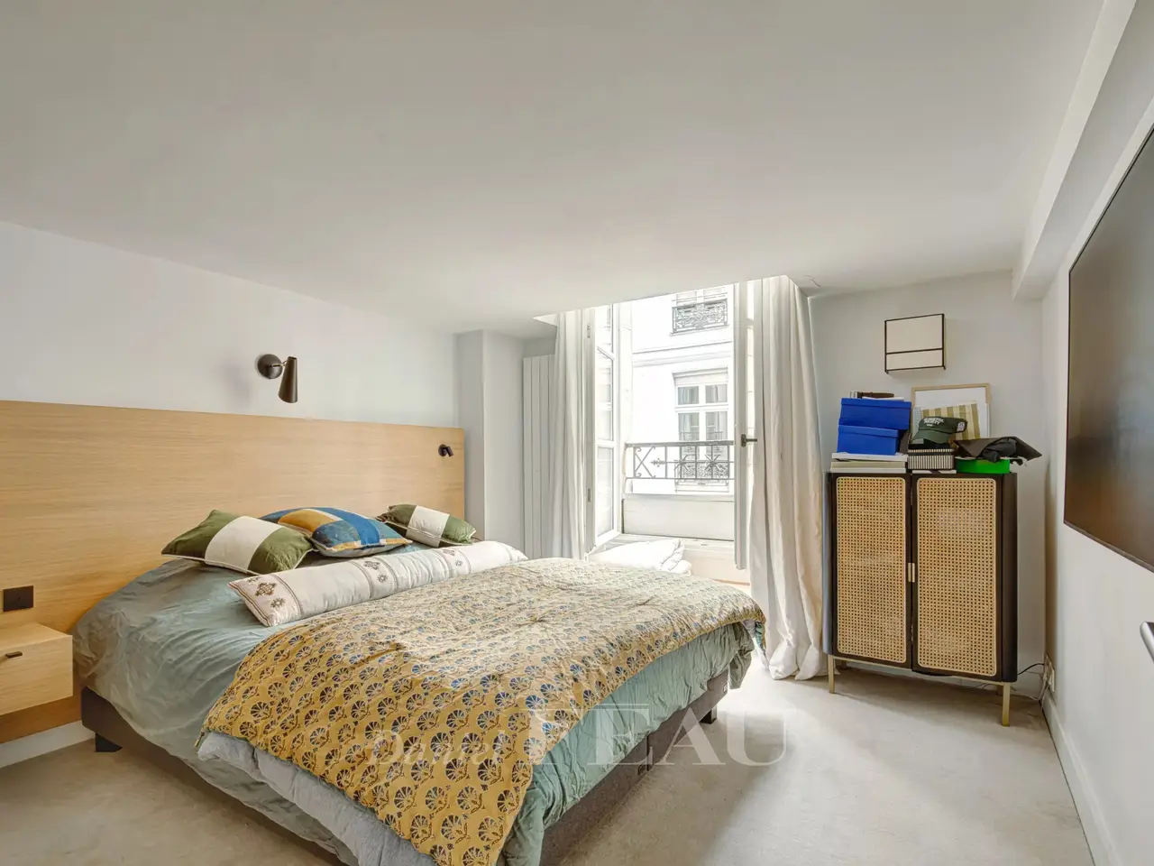 Mail neighbourhood, just a stone’s throw from rue Montorgeuil. This ideal pied a terre on the “piano nobile” of a fine 18th century building with a lift has been renovated throughout by an interior decorator. It includes an entry with a utility area and a guest wc, a spacious living/reception room featuring 4-metre high ceilings, a fully equipped open-plan kitchen with a pantry, and a master suite with a bathroom and a wc. A staircase accesses a possible dressing room, study or spare bedroom.