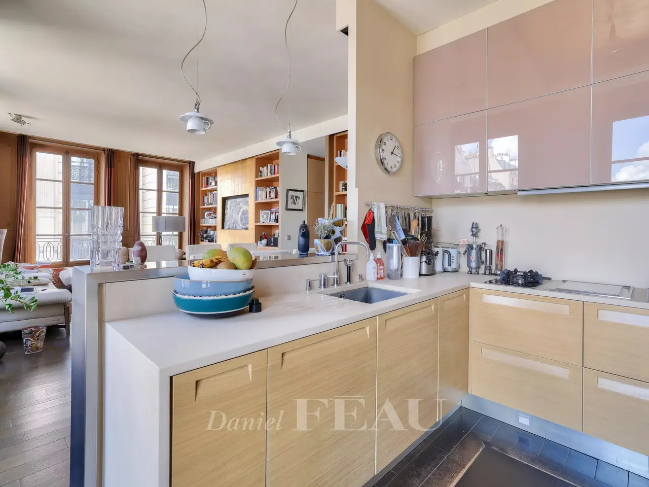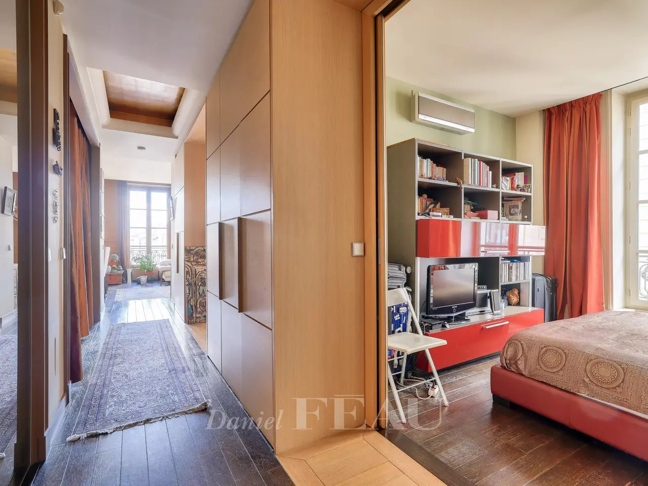 Rue Notre-Dame des Victoires. This apartment enjoying an open view of Place de la Bourse is on the 3rd floor of a luxurious mid 19th century co-ownership with a caretaker. Offering 95.46 sqm of floor space and 92.13 sqm of living space as defined by the Carrez Law, it includes an entry with fitted storage space, a superb living/reception room bathed in sunshine thanks to six floor-to-ceiling windows, a fitted and equipped open-plan kitchen, two bedrooms (one air-conditioned), a shower room/wc and utility room/wc. With a cellar.
