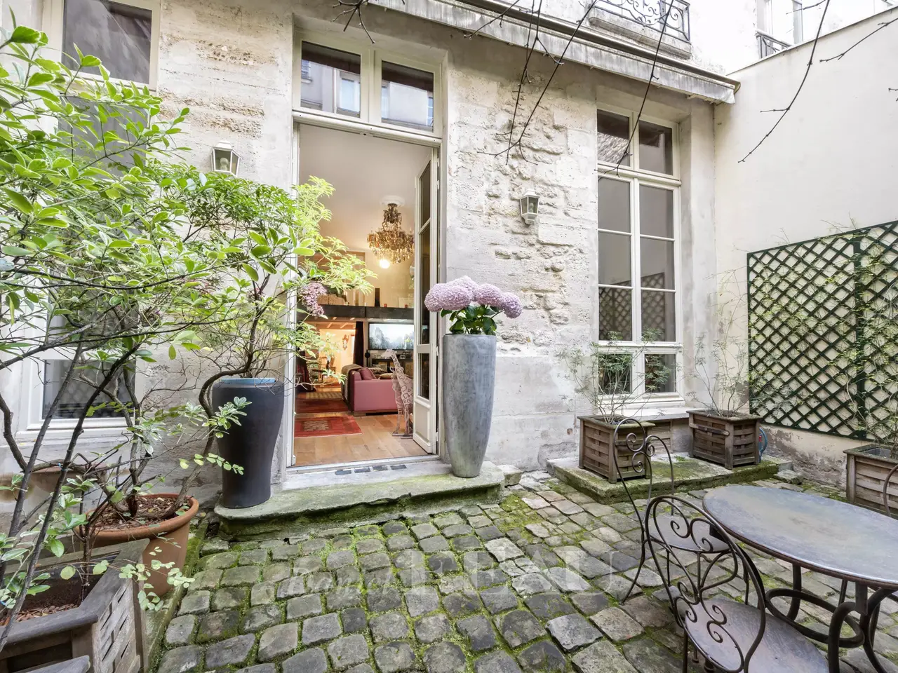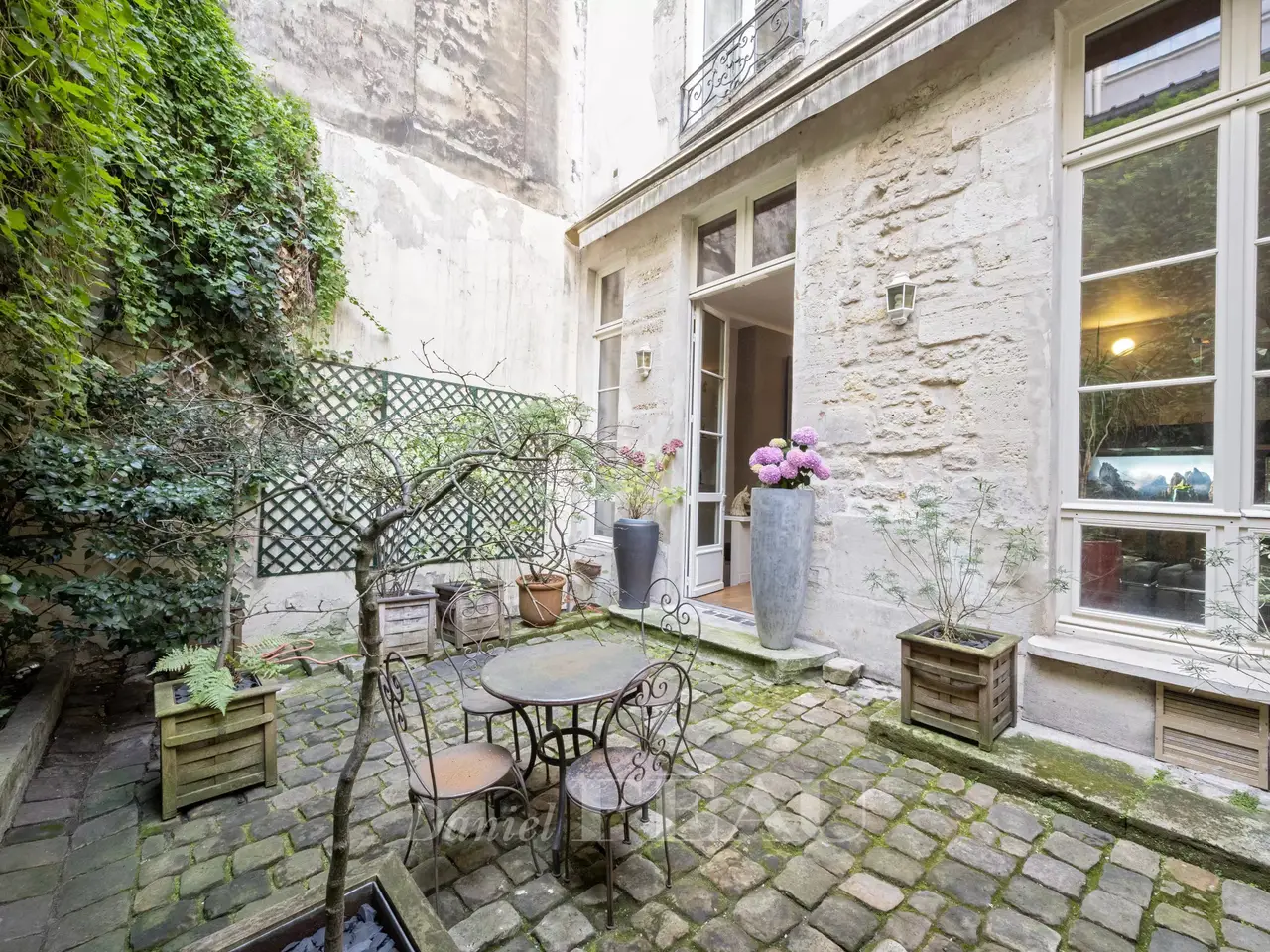In the heart of the highly sought-after Rue Charlot, just steps from the Marché des Enfants Rouges, lies a rare gem — a true house within an 18th-century building. With a surface area of 133.77 m² (Carrez law) and 154.16 m² total floor space, this reception apartment stands out for its 33 m² private garden, hidden from view, and its unique charm. The layout is as follows: On the ground floor, a private entrance, a study, and a spacious 45 m² reception room featuring a 4-meter-high ceiling and an original fireplace, all opening onto a pleasant private courtyard. Upstairs, a mezzanine bedroom suite offers ample storage, a shower room, and separate toilets. On the lower level, a fully furnished and equipped dining kitchen, a laundry area, and a storage room complete the property. Combining space, elegance, and tranquility, this apartment is a true haven of peace in the heart of the Marais, within one of its most coveted neighborhoods.