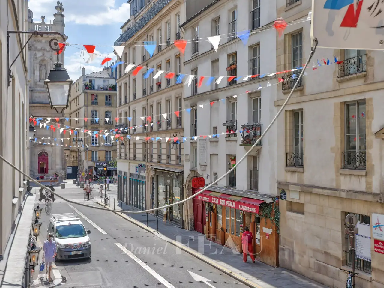 In the heart of the highly sought-after Marais district, on the first floor of a 19th-century building with an elevator, this two/three-room apartment offers a surface area of 68 m² (Carrez Law). Fully and tastefully renovated, this bright, dual-aspect property overlooks both the street and the courtyard and benefits from generous volumes. It features a spacious west-facing living/dining room with a fully fitted and equipped open kitchen, one bedroom, a study or guest room, a bathroom, a large walk-in closet, and separate toilets. A cellar completes this property.