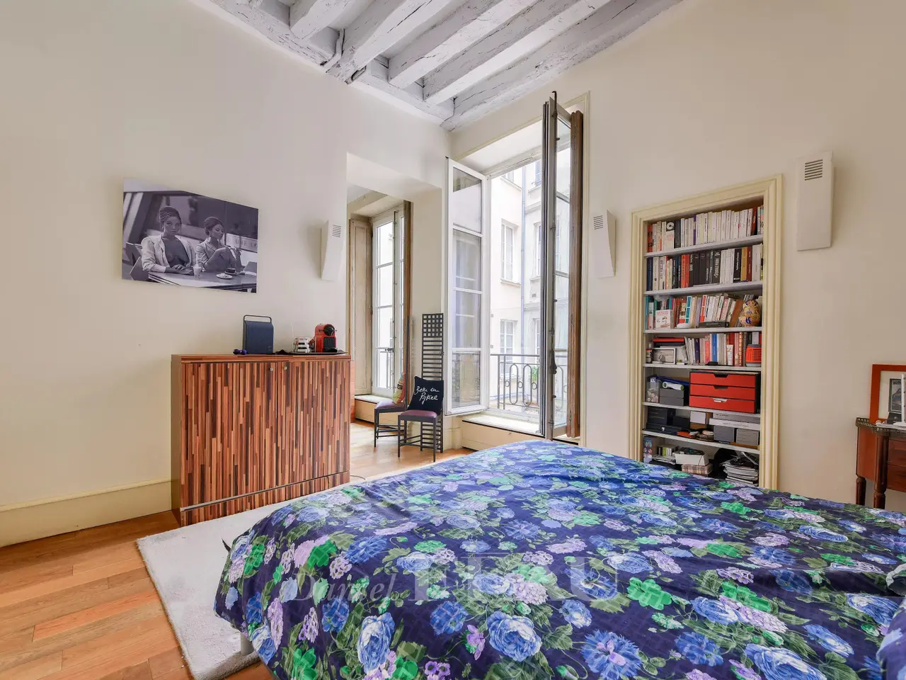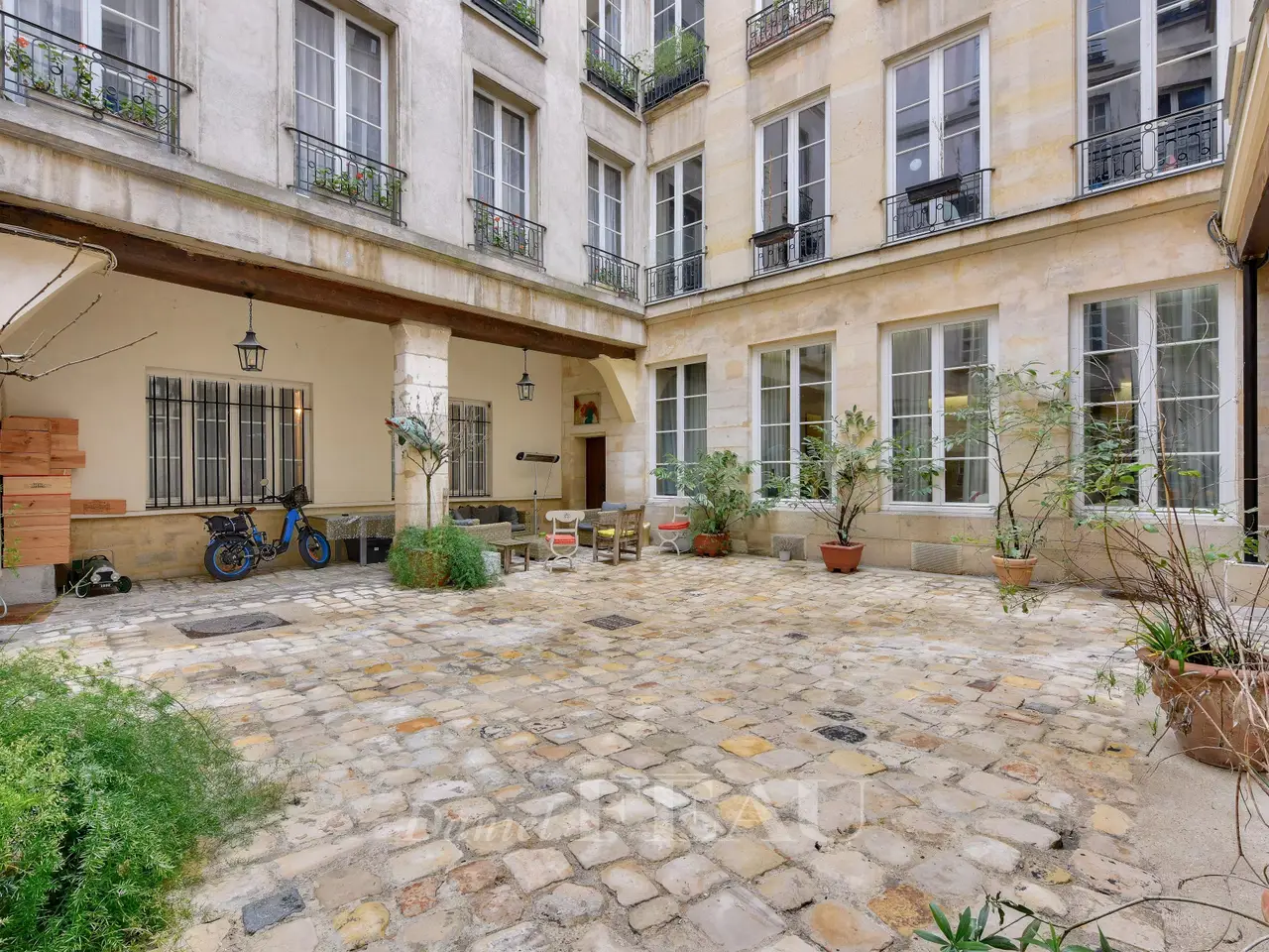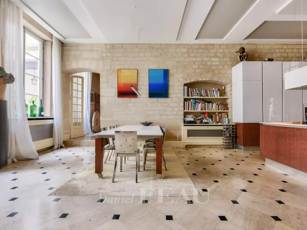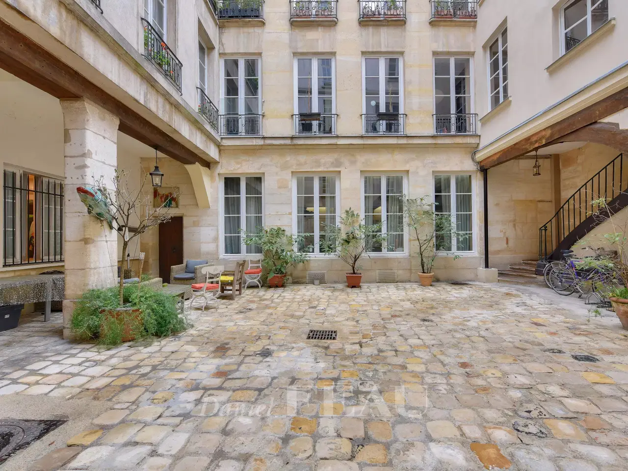 Rue Quincampoix. This magnificent duplex apartment overlooking a paved courtyard is on the ground and first floor of a listed 17th century co-ownership. Directly accessed by means of the main courtyard, it offers 176.26 sqm of living space including a grandiose entrance hall, a 76.33 sqm living/reception room featuring 3.90 metre high ceilings and with a TV lounge featuring a stone fireplace, a fully equipped kitchen, a second sitting room area and a dining room, and a bedroom. Magnificent period features include exposed stone, marble, a fireplace and exposed beams. A wide staircase with wrought-iron banisters leads to two further bedrooms, two bathrooms and a dressing room.
