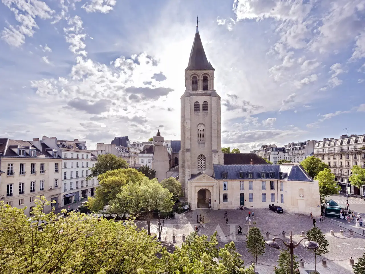 Sole Agent. This 91 sqm apartment in mint condition is on the raised 2nd floor of a magnificent recently refaced late 19th century building directly opposite Place Saint Germain and the church. Commanding a picture-postcard view, it includes a living/reception room with a fireplace, a fully equipped kitchen, a spacious bedroom, a dressing room, a study or possible second bedroom, a bath/shower room and a separate wc.