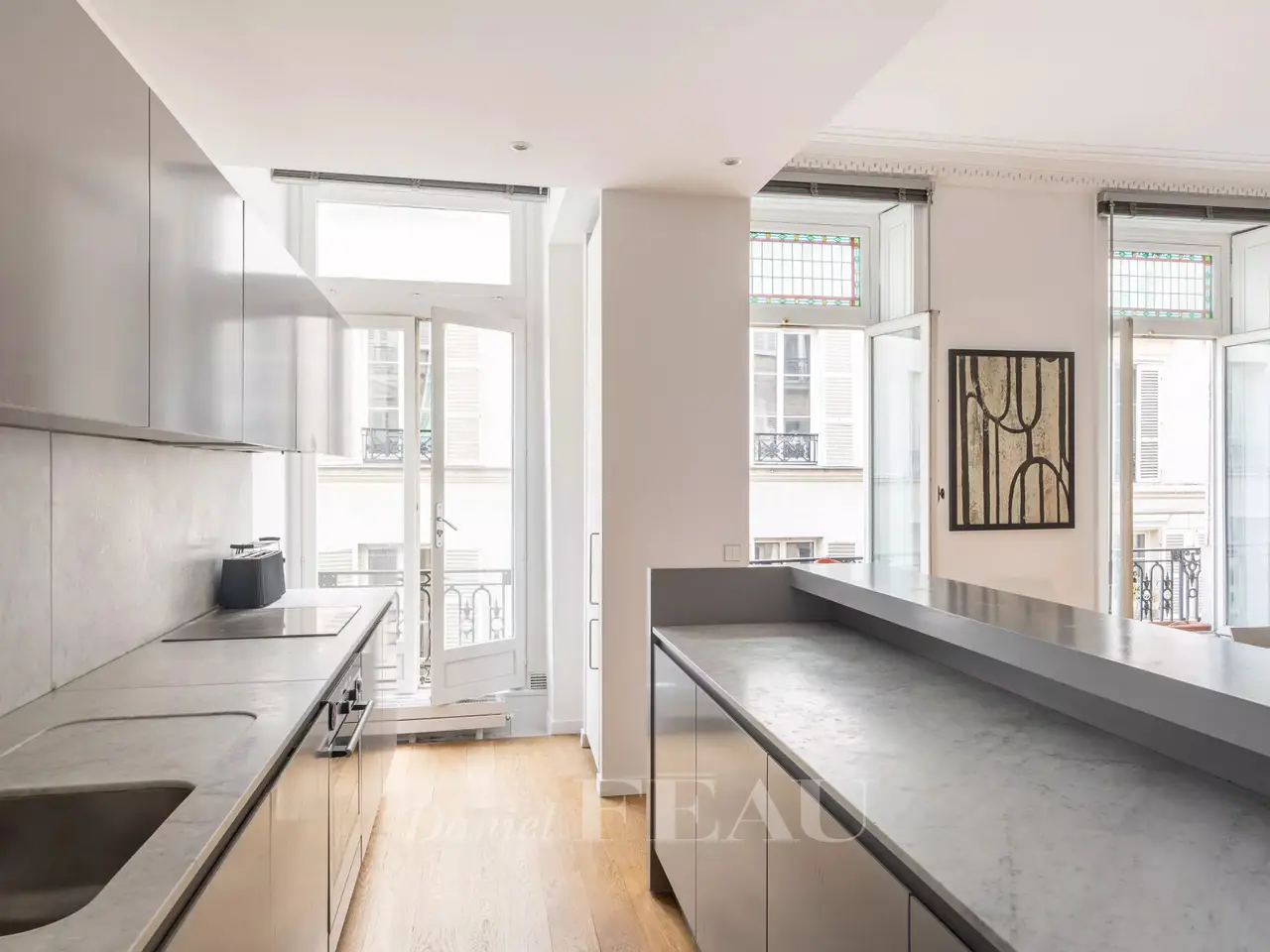 Rue Monsieur le Prince. This elegant near 145 sqm dual-aspect apartment on the second floor of a fine mid 18th century building with a lift features 3.20 metre high ceilings. Beautifully appointed and allying period charm with contemporary comfort and style, it includes a double living/reception room, a contemporary semi open-plan kitchen, a master suite with a bath/shower room and wc, a second suite with a shower room and wc, a possible space bedroom, and a study or dressing room. With a 14 sqm cellar. Possible premises for a self-employed professional.