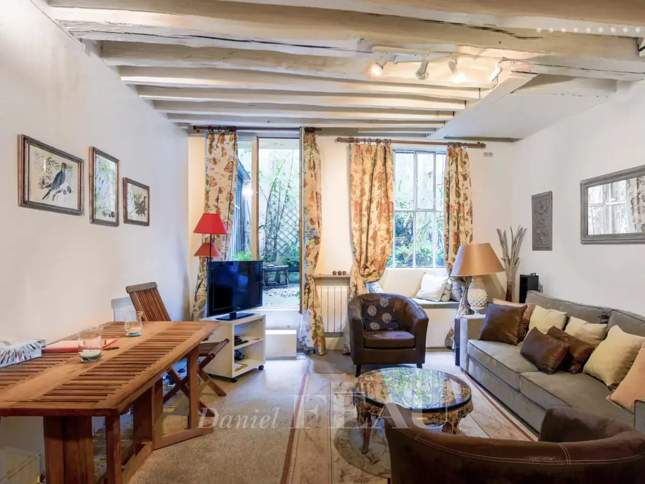 Rue Jacob, Saint-Germain-des-Prés. This split-level 58 square meter apartment on the 1st floor of a fine 18th century building includes a living/reception room, a kitchen, a bedroom opening onto a leafy 12 square meter courtyard, a bathroom and a wc. Opening onto the same courtyard, an adjacent 46 square meter ground-floor unit currently used as business premises comprises a main room with a kitchen, a bedroom, and a bathroom/wc could be joined to the apartment.