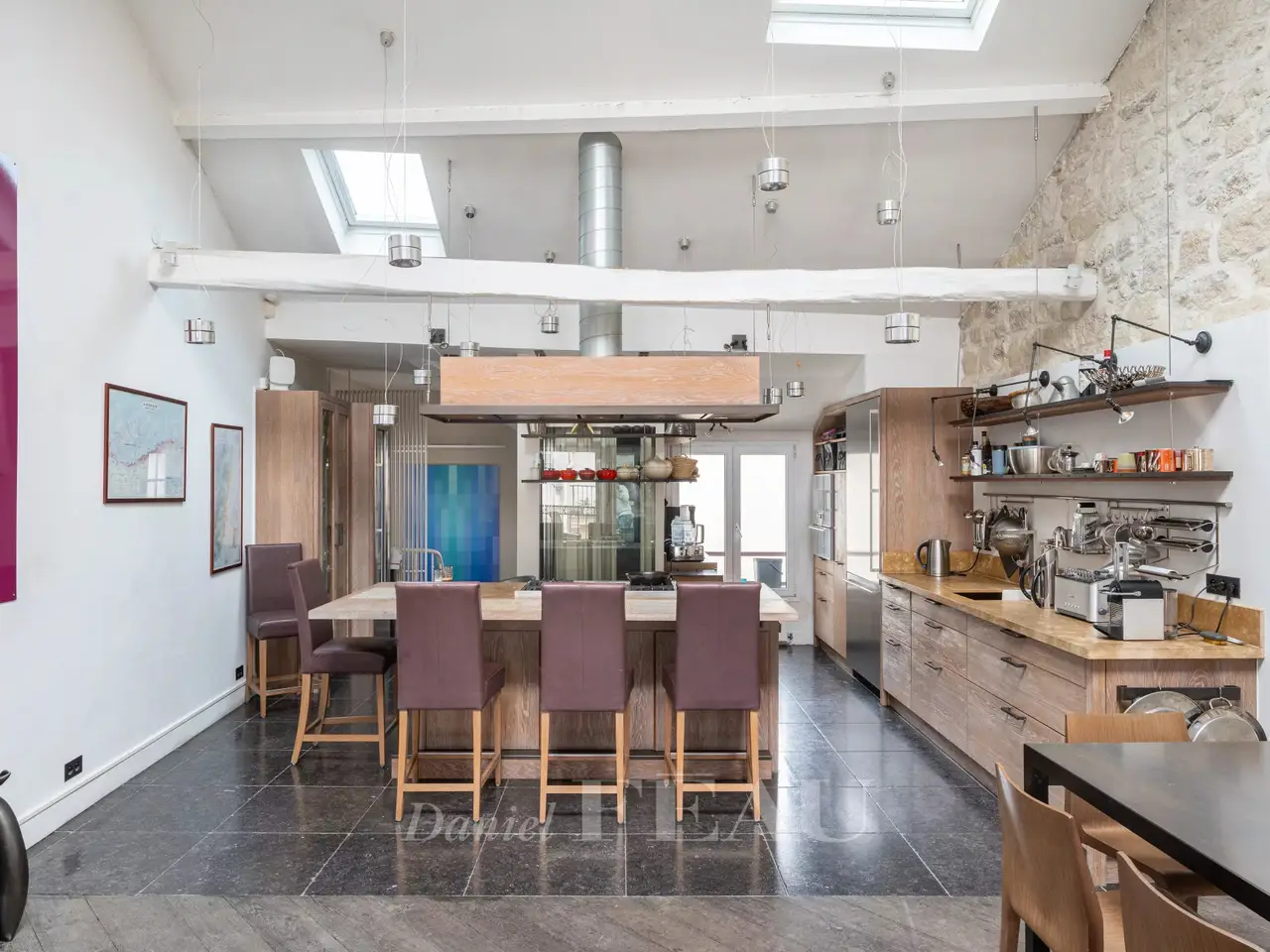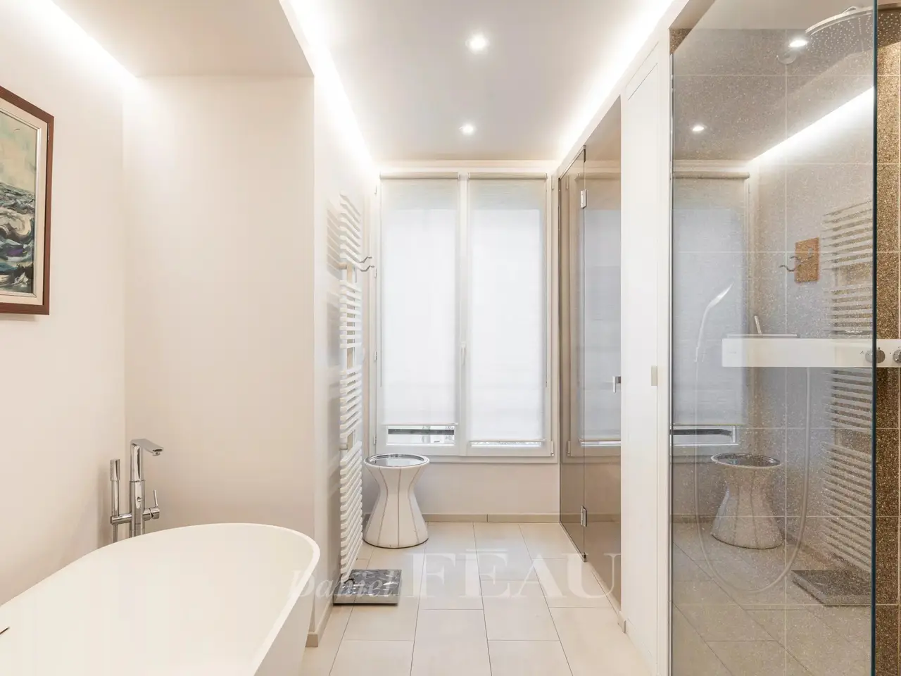 This atypical five-storey mid 19th century property with a lift is located a stone’s throw from Luxembourg Gardens. Offering 427 sqm of floor space and 324 sqm of living space, it includes a ground-floor counter-current lap pool, and access to the lift and the staircase accessing all floors. The first, second and third floors each comprise a spacious bedroom or study, a bathroom and a wc. It would be possible to create two further bedrooms if required. An elegant music room in the style of a piano-bar is on the fourth floor. The top floor includes a superb dual-aspect living/reception room featuring a soaring ceiling, and an open-plan kitchen. On a basement with a utility room and a wine cellar.