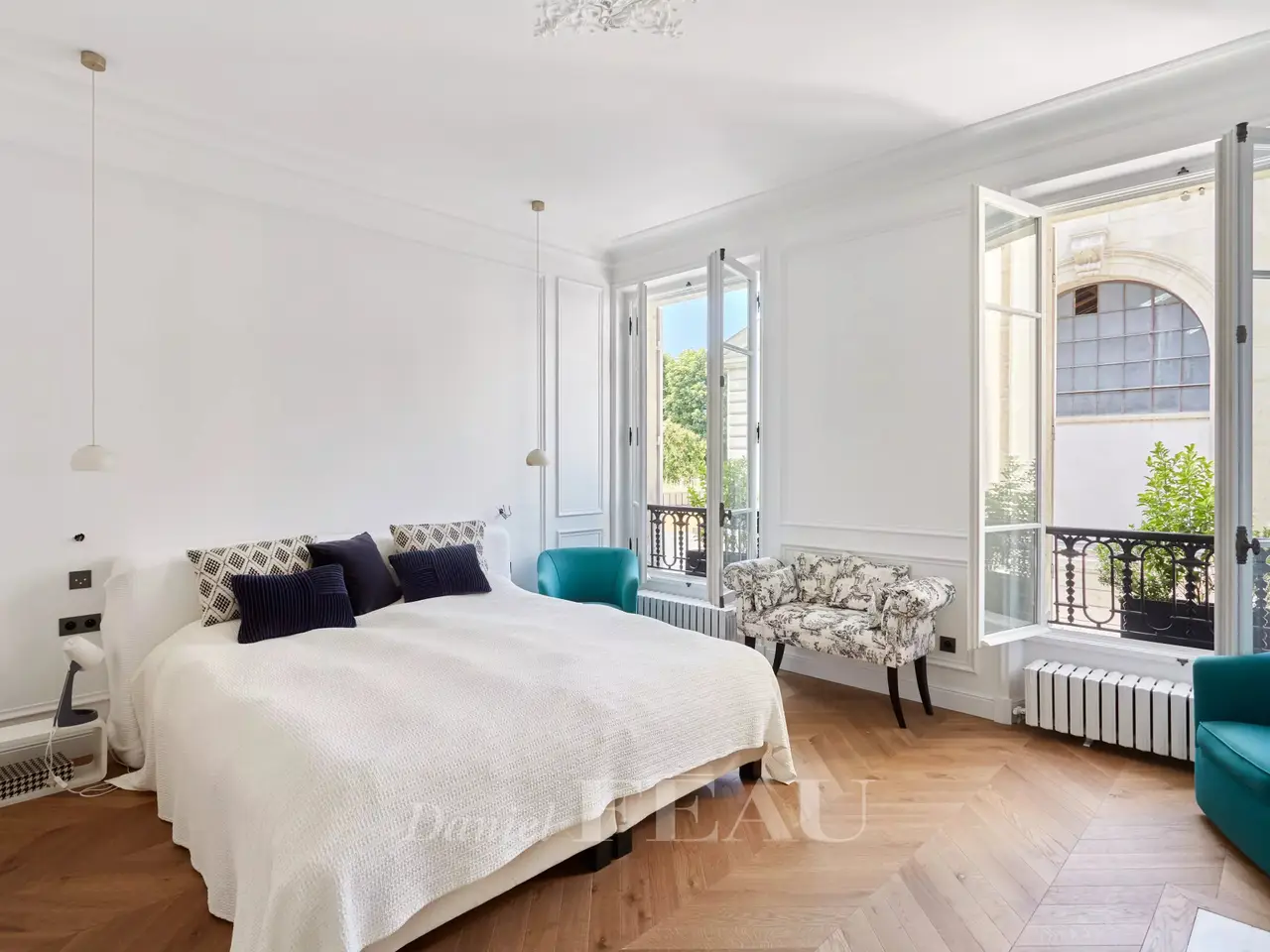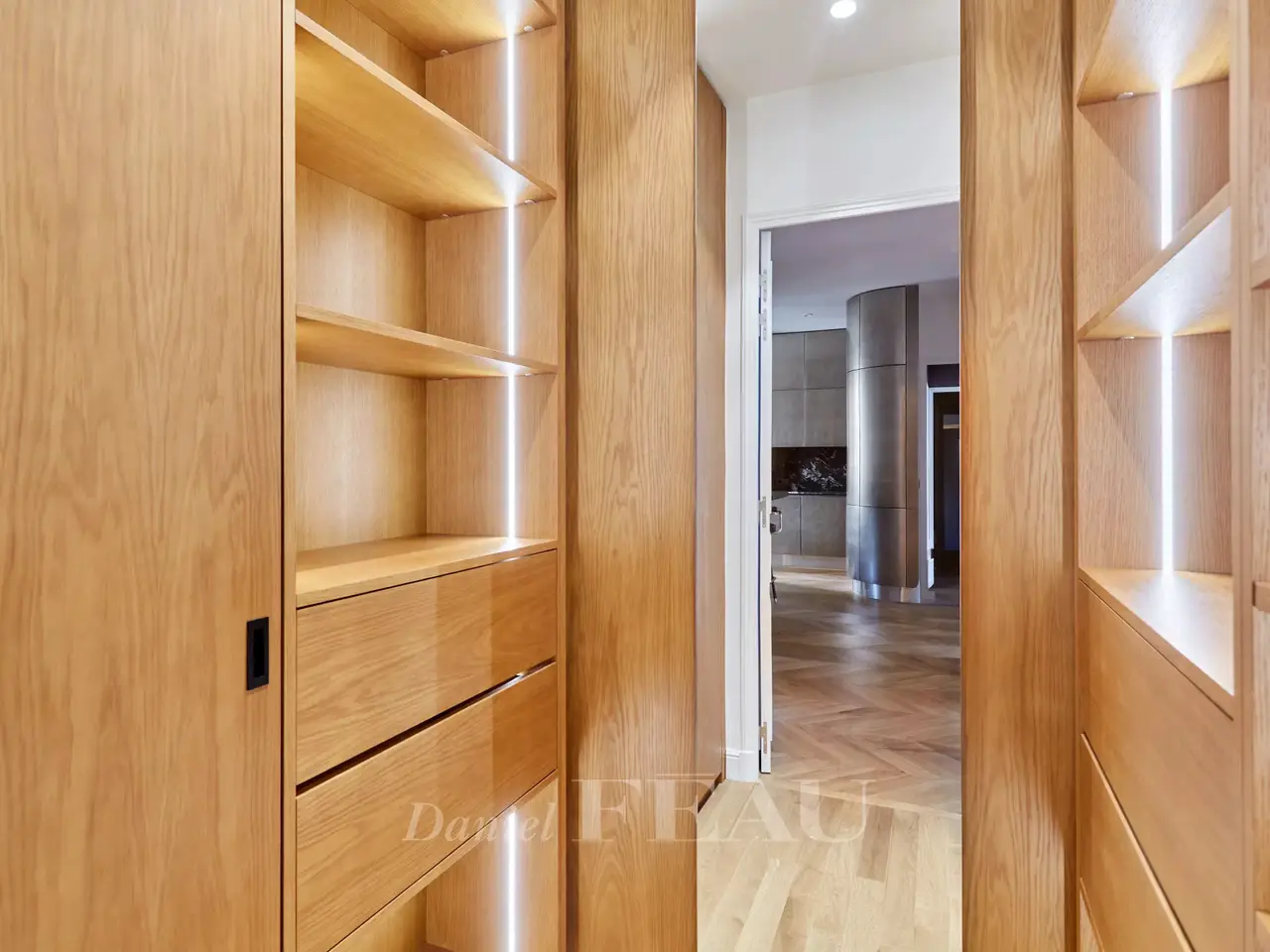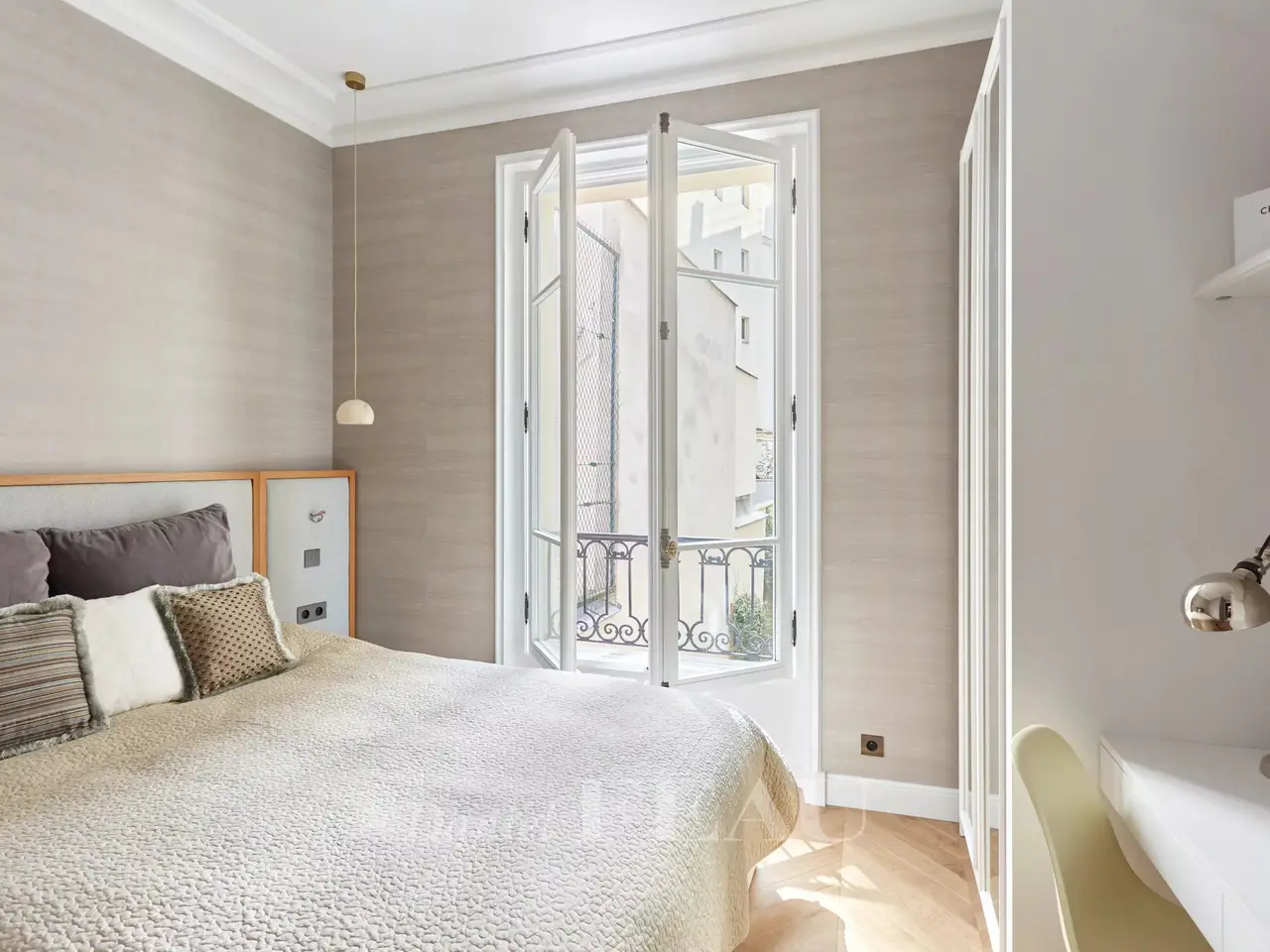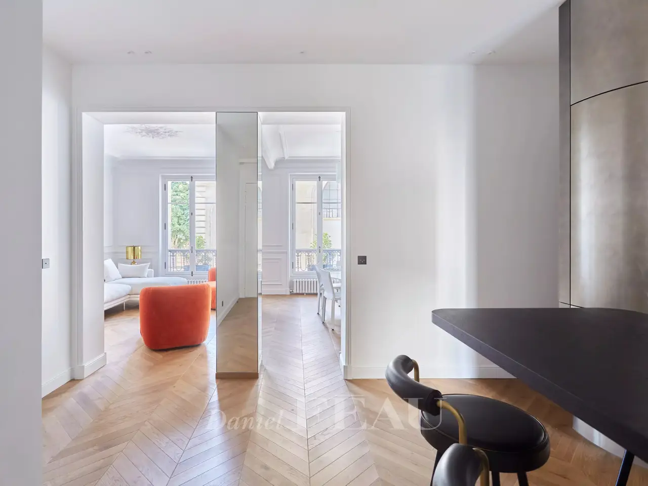 Sole Agent. Université - Champs de Mars neighbourhood. This entirely renovated and beautifully appointed apartment on the 1st floor of a luxurious late 19th century building with a caretaker and a lift offers 94.50 sqm of living space as defined by the Carrez Law. Enjoying an open view over the Palais de l’Alma’s leafy greenery, it includes a spacious double living/reception room, a new semi open-plan kitchen, two bedrooms, a shower room, a separate wc and a dressing room. Period features include Herringbone parquet flooring, mouldings and fireplaces. Furniture may be offered in addition to the price. With a cellar.