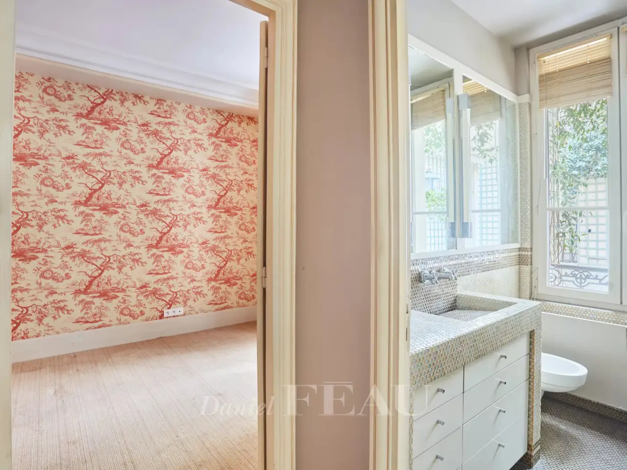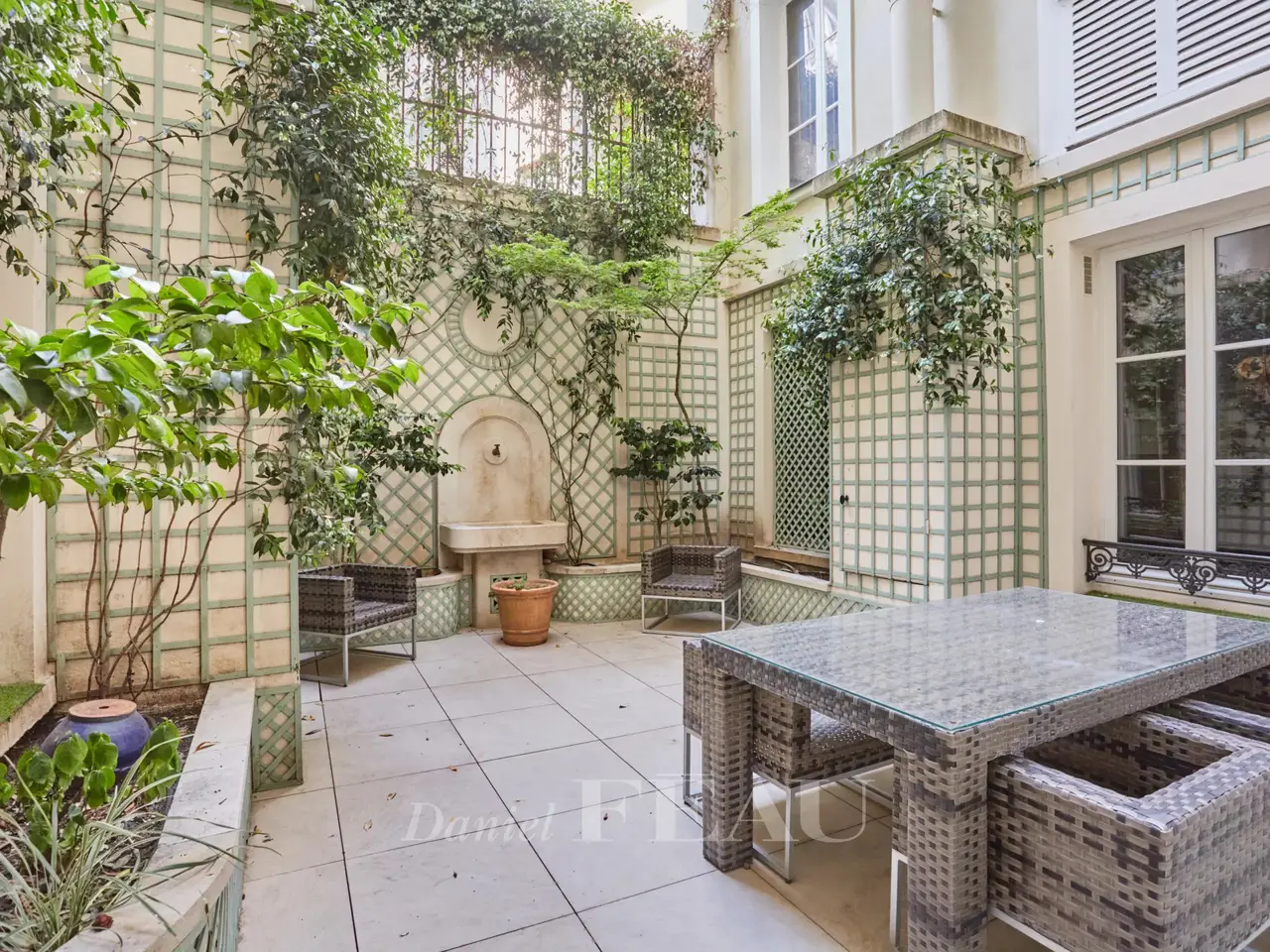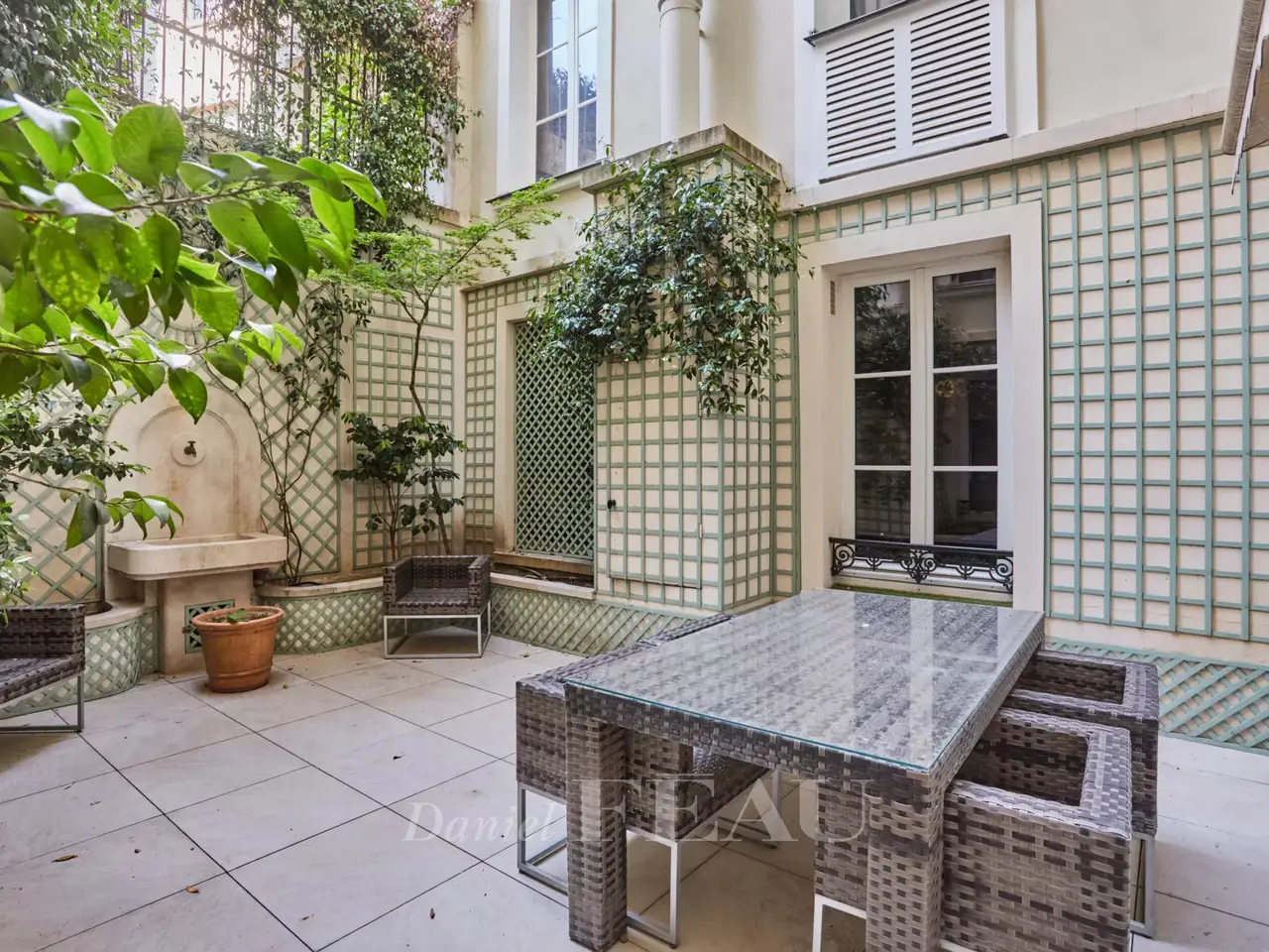 Place de Breteuil. This 97 sqm apartment in very good condition is on the ground floor of a luxurious freestone building with a caretaker. Benefiting from a little garden and a 28 sqm patio, it includes a double living/reception room featuring parquet flooring and a fireplace, a separate kitchen, a suite with a shower room, a dressing room and a wc, a second bedroom and a separate wc. With a cellar. Possible premises for a self-employed professional.