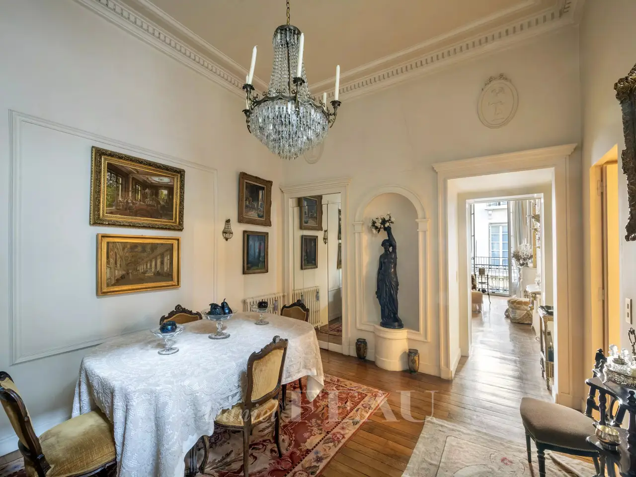 Place du Palais Bourbon. This exceptional apartment on the second floor of a fine late 18th century building with a caretaker and a lift offers 106.65 sqm of floor space and 93.03 sqm of living space as defined by the Carrez Law. Boasting period features including 3.60 metre high ceilings, it includes a living/reception room, a dining room, a kitchen, a suite with a bathroom and a dressing room, a bedroom with a shower room, and a separate wc. With two cellars. A rare opportunity in a prime location.