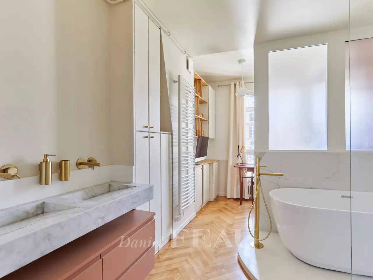 Nearby the iconic Bon Marché Department Store, 147 sqm apartment on 3rd floor of a turn of the 20th Century building with a lift. In very good condition and Est-West exposed, it comprises a spacious reception room with an open plan kitchen, a master bedroom with a bathroom, a study, a dressing room and a wc, then three further bedrooms, a shower room, a laundry room and a guest wc. With a cellar. In perfect condition. Ideal for a family.