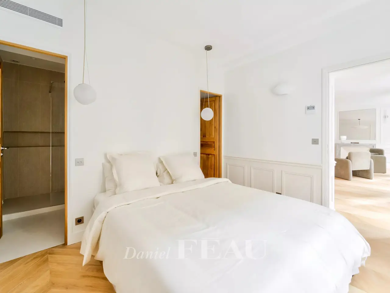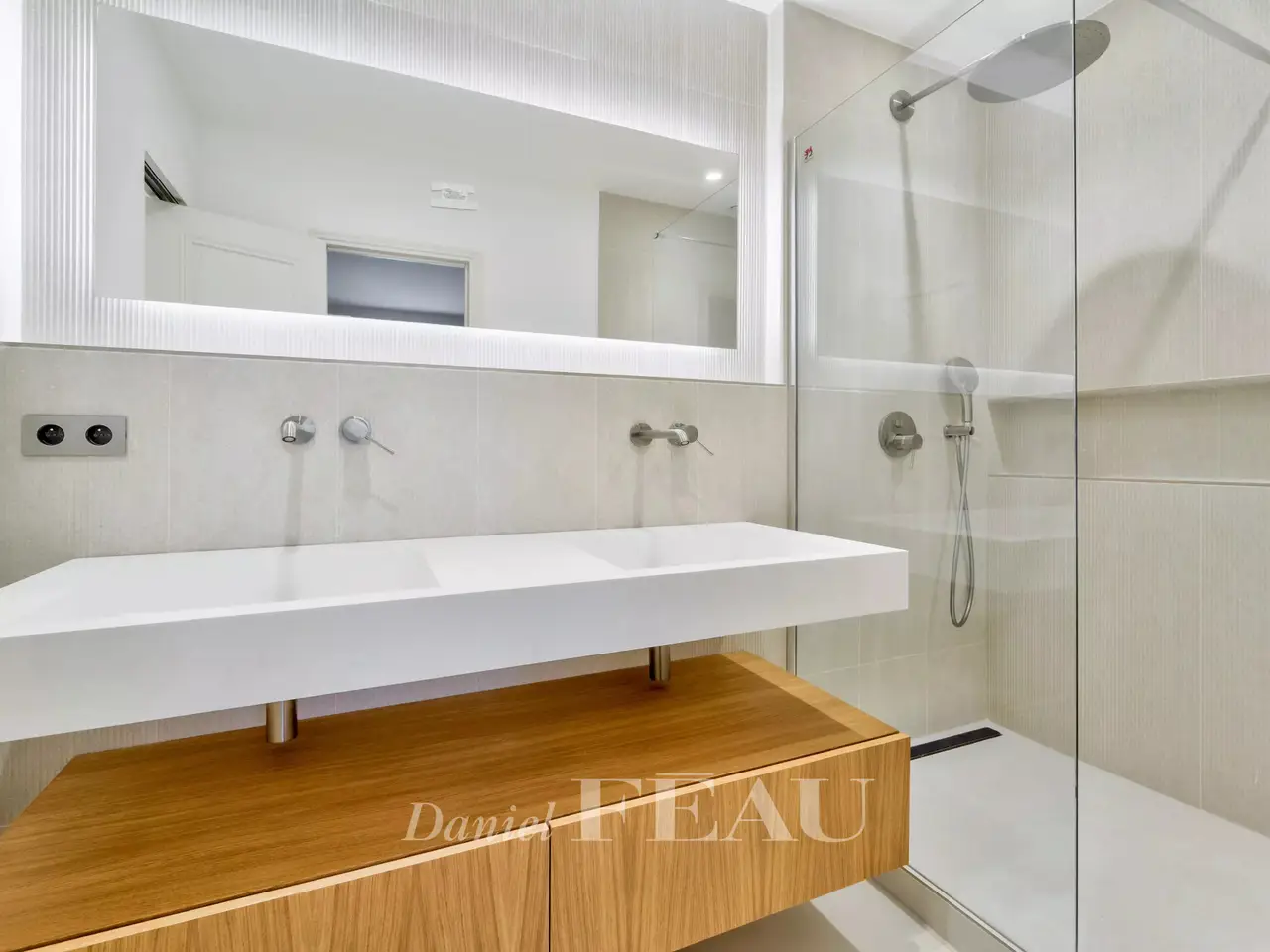 Université/Saint Germain neighbourhood. This apartment offering 104.12 sqm of floor space and 102.38 sqm of living space as defined by the Carrez law is on the 2nd floor of a fine late 18th century building with a lift. Renovated throughout in a tasteful contemporary style, it includes an entry with fitted storage space, a fully south-facing living/reception room and dining room, a semi open-plan kitchen with dining facilities, and two bedrooms (one with a shower room and wc, the second with a shower room and dressing room). With a cellar. A lock-up garage in the co-ownership may be acquired at extra cost.