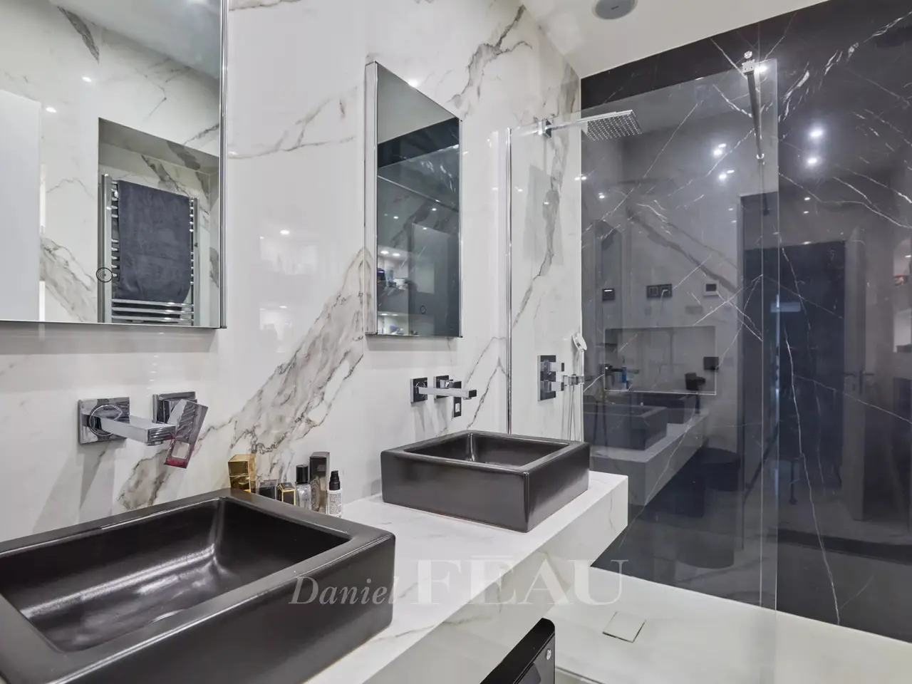 This bright three-room apartment is on the second floor of a luxurious mid 20th century building facing the iconic Four Seasons Hotel. Renovated throughout by an interior decorator, it offers 77 sqm of living space as defined by the Carrez Law including a spacious living/reception room, an equipped kitchen, a main bedroom with a shower room, a little second bedroom and a separate toilet. Beautifully appointed, and featuring Carrara marble and home automation. Cellar. The building has a 24/24 caretaker and is equipped with a lift. An ideal pied a terre enjoying views of the George V and Prince de Galles.