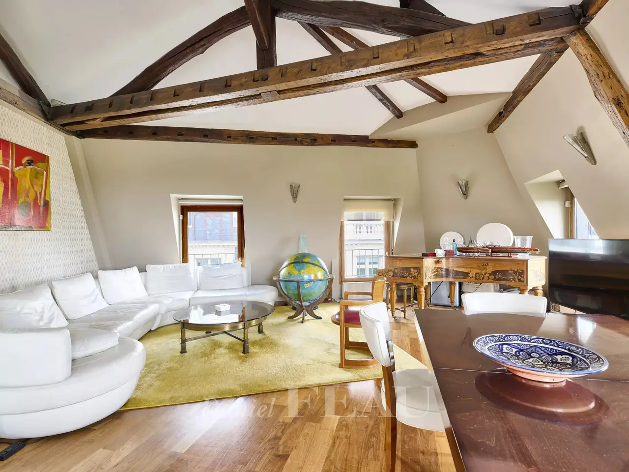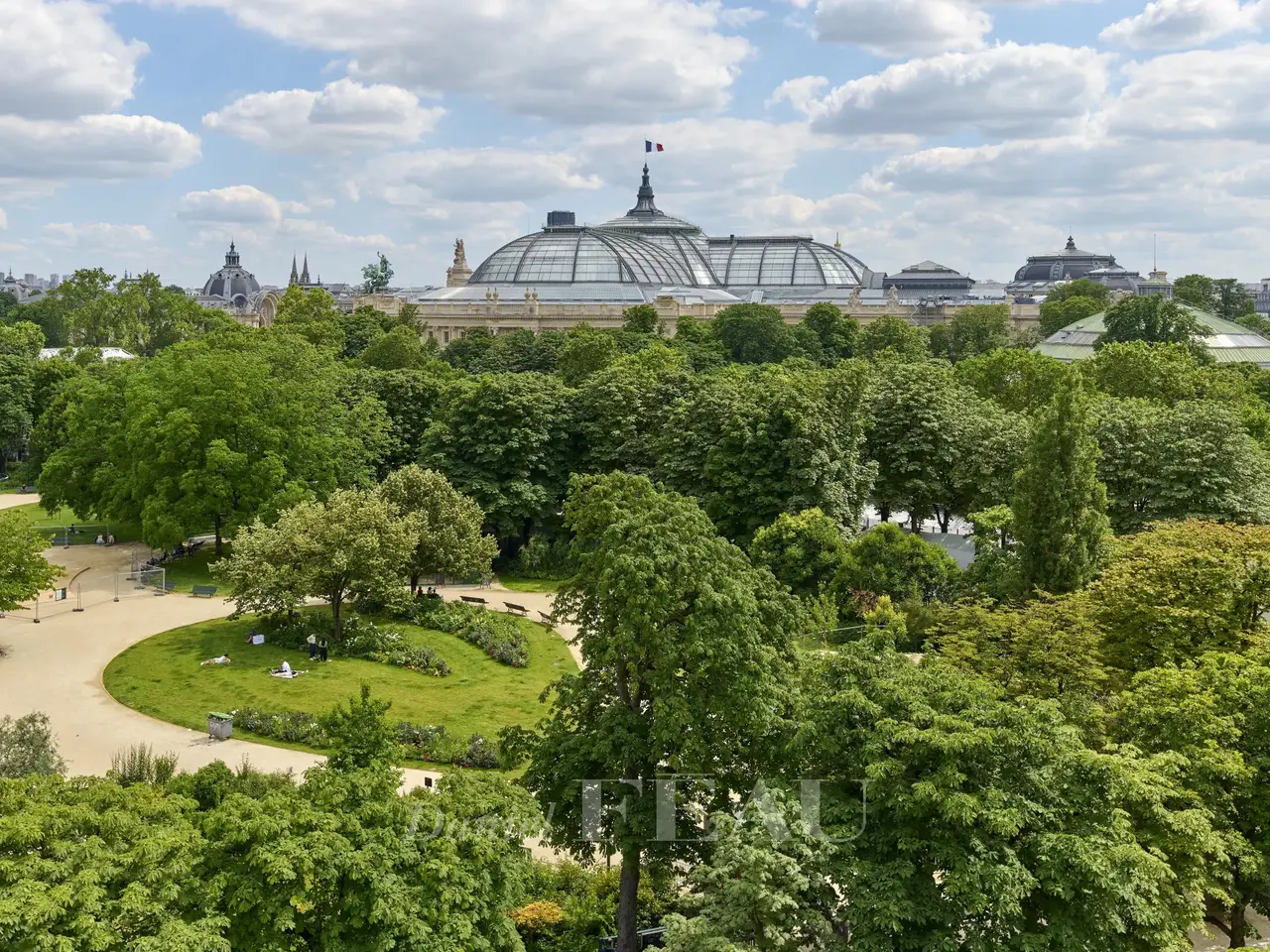 Matignon/Gabriel neighbourhood. This apartment on the top floor of a mid 20th century building commands panoramic views of the Champs Elysees gardens, Marigny Theatre, Grand Palais and Avenue Gabriel, with the Invalides Dome, the Eiffel Tower, Notre Dame and the Pantheon in the distance. 128 sqm of floor space and 108 sqm of living space as defined by the Carrez Law includes a double living/reception room benefiting from no facing neighbours, an equipped kitchen, two bedrooms, a bathroom, a shower room and two wc. The apartment benefits from an excellent floor plan with no wasted space. With a cellar.