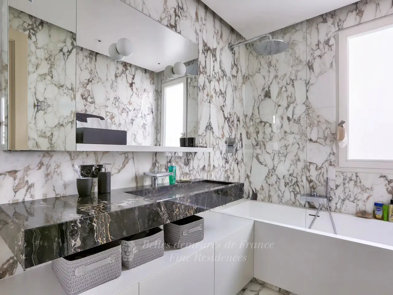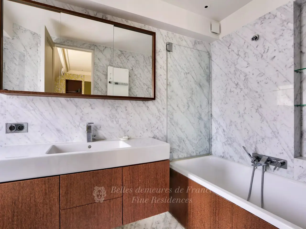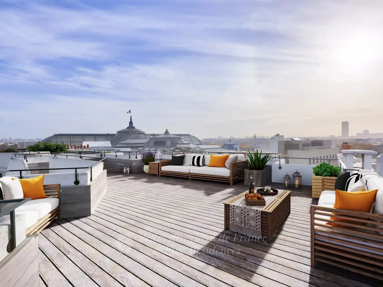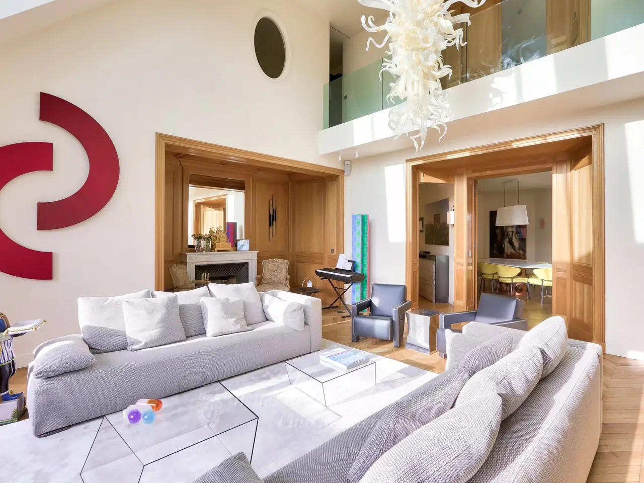 Place François Ier, in the heart of the prestigious Golden Triangle. On the top floors (7th and 8th) of a remarkable 1930’s Art-Deco style building designed by renowned architect Charles Lemaresquier, this rare penthouse of about 225 sqm living space includes an extensively glazed workshop-style living/reception room featuring 5.70 metre high ceilings and opens onto a 27 sqm terrace, a dining room, a kitchen, and three bedrooms with bath or shower rooms. Fully air conditioned. Benefiting from an 84 sqm terrace, the upper floor comprises a sitting room, a study, and a fitness room with a shower room. A fourth 45 sqm terrace commands a panoramic view of the capital. Two parking spaces in the building may be acquired at extra cost.