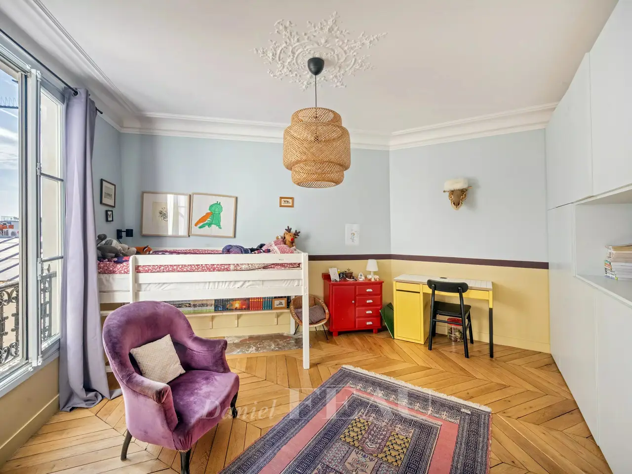 Place José Rizal. This bright family apartment benefiting from a continuous balcony enjoying an open view is on the 5th floor of a fine early 19th building with a lift. It includes a living/reception room, a dining room with an open-plan kitchen, a master suite with a shower room and dressing room, two further bedrooms and a bathroom. With a cellar.