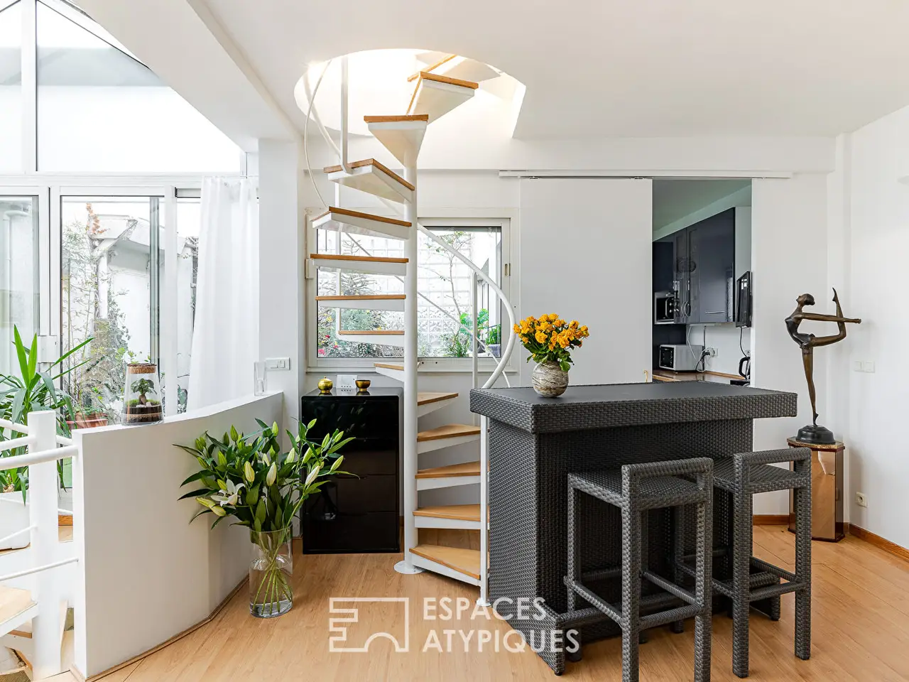 Nestled in the heart of the 13th arrondissement, just steps from the Tolbiac metro station and Parc de Choisy, this exceptional 240.89 m2 (217.54 m2 Carrez) loft, located in a quiet street, is shielded from the urban hustle and bustle. Like a sanctuary, this unique space unfolds around a private 27 m2 courtyard and an 11 m2 terrace on the first floor, welcoming us upon entry into an outdoor bubble of calm and light. The living room, a place for gathering and sharing, is the heart of this loft, which feels like a home. It is bathed in light thanks to the glass roof and numerous large windows. It offers an unobstructed view of the courtyard, which becomes a natural extension of the interior. Stairs and corridors lead from this living room to the various spaces, each designed to meet the specific needs of its occupants while preserving their privacy. On this same level, four bedrooms share a bathroom and a shower room. It is worth noting that this space benefits from a second independent entrance, allowing for the possibility of running a liberal profession. On the first floor, a charming master suite has its own access to a private terrace, perfect for peaceful relaxation. In the basement, a games/TV room and a vaulted billiard room have been created for family or friends' leisure time. The property also stands out with its indoor swimming pool, offering year-round use regardless of the weather conditions. The location is ideal, close to Place d'Italie, schools, shops, and restaurants. Well served by public transportation (lines 5, 6, 7, and 14), it is easy to reach the center of Paris or Orly Airport. The perfect blend of energy, comfort, and privacy makes this property a unique place where the rare outdoor spaces in Paris offer an exceptional living environment, both intimate and extraordinary. Two parking spaces in the neighboring building can be sold separately. Metro: Tolbiac (line 7) Bus: 47, 62, 83, 64 REF. 11800 Additional information * 8 rooms * 5 bedrooms * 2 bathrooms * 2 shower rooms * 2 floors in the building * 17 co-ownership lots * Annual co-ownership fees : 6 634 € * Property tax : 3 092 € * Proceeding : Non Energy Performance Certificate Primary energy consumption e : 264 kWh/m2.year High performance housing