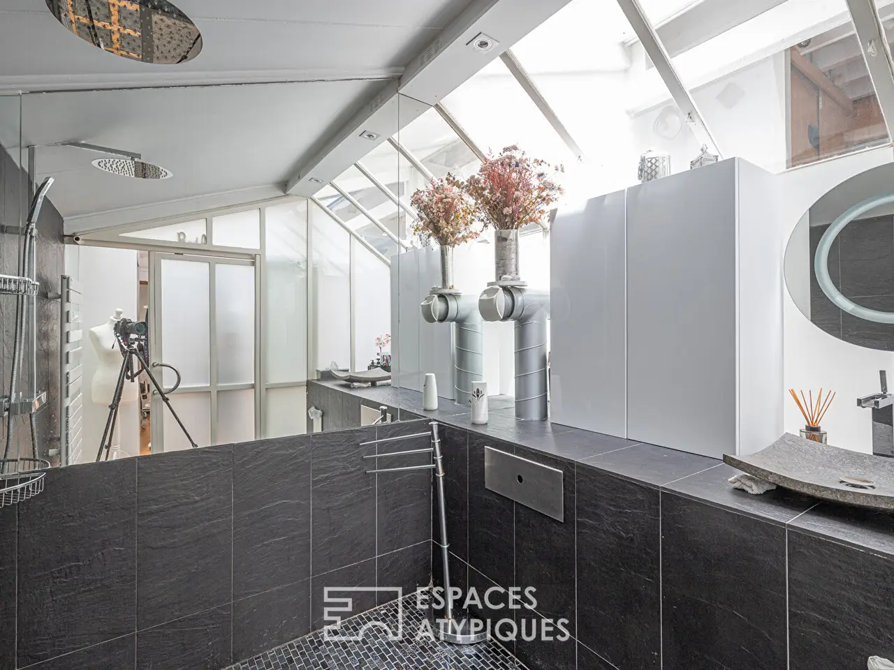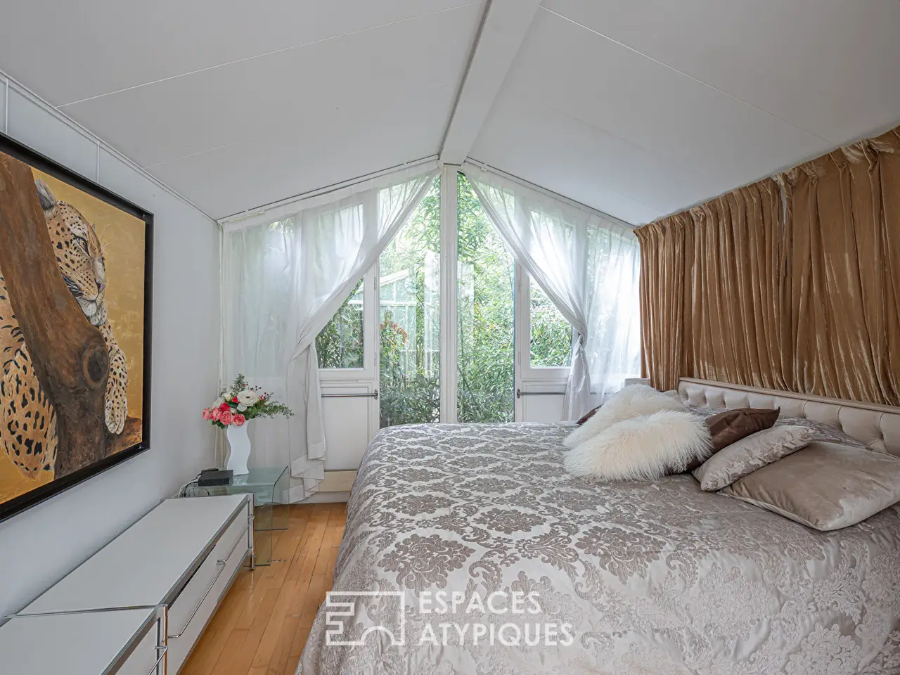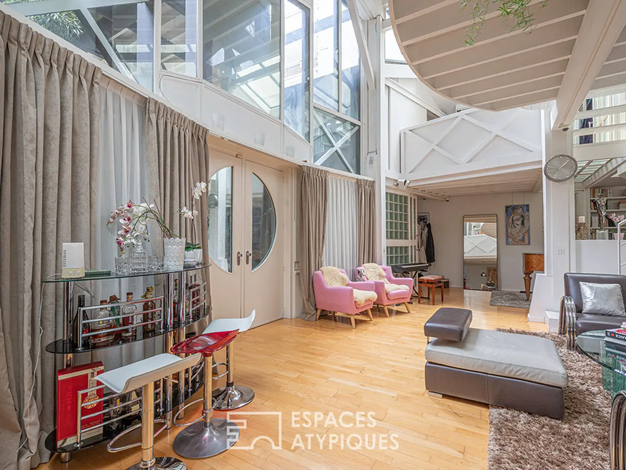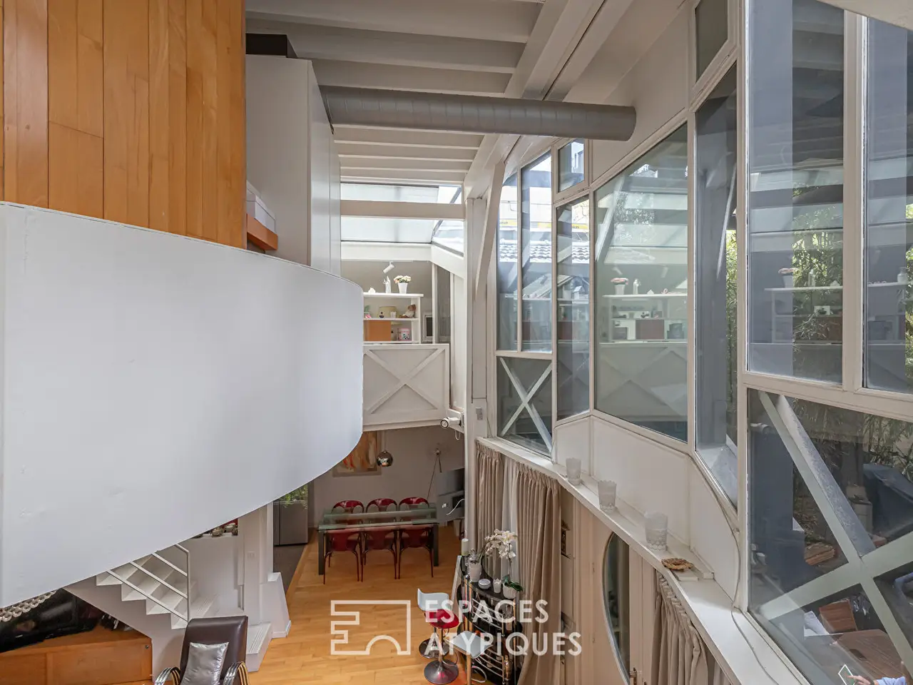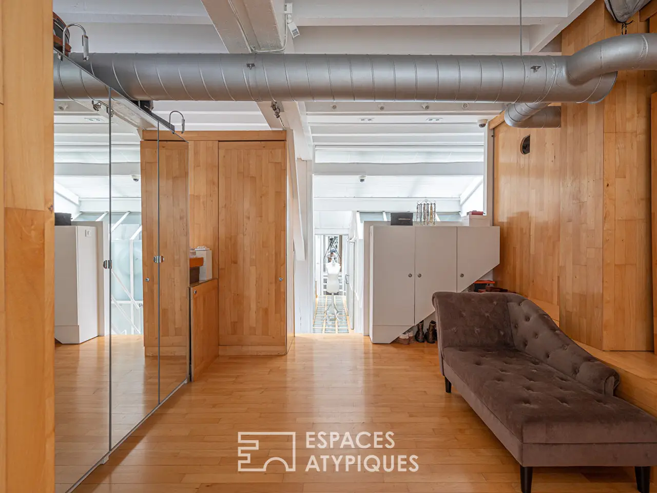 Located near the 11th century Town Hall in a quiet cul-de-sac, this house-style duplex of 170 m2 (160.24 m2 Carrez) benefits from a 16 m2 green terrace for exclusive enjoyment. The entrance on the ground floor opens onto a living room and a dining area with a semi-open kitchen totaling 59 m2 under 6.25 meters in height at the ridge. A second living room of 18 m2, an office of 12 m2 which can be transformed into a third bedroom and a laundry room complete this level. Two staircases rise from either side of the fireplace, leading to the 1st floor with two bedrooms of 12 and 20 m2 each with a shower room or a bathroom, as well as two dressing rooms of 9 and 17 m2. On the half floor there are two independent toilets. This warm duplex living space enjoys calm, a lack of privacy and constant light thanks to its numerous openings and its main South-East exposure. Well subject to the status of the co-ownership benefiting from an easily accessible bicycle parking space. Metros: Voltaire, Richard-Lenoir and Chemin-Vert REF. 6814 Additional information * 5 rooms * 2 bedrooms * 1 bathroom * 1 bathroom * Outdoor space : 16 SQM * 28 co-ownership lots * Annual co-ownership fees : 2 780 € * Property tax : 1 967 €