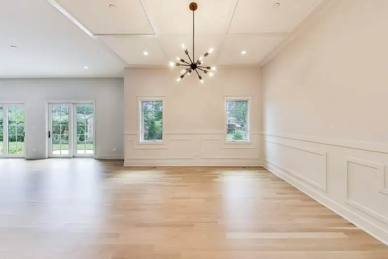 Prepare to be wowed by this stunning new construction luxury home-offering over 4,000 square feet of beautifully designed living space, five spacious bedrooms, and 4.5 elegant bathrooms! With soaring nearly 10-foot ceilings on both the first and second floors, this home feels grand, open, and filled with natural light at every turn. The heart of the home is a dream kitchen made for both everyday living and entertaining, featuring premium Thermador appliances including a 6-burner Thermador range, custom cabinetry, and a striking waterfall-edge island with seating for casual dining. The kitchen flows seamlessly into a bright and airy family room with a cozy gas fireplace, opening right out to a private outdoor patio-perfect for entertaining or relaxing evenings under the stars. You'll love the formal dining room with coffered ceilings and warm white oak hardwood floors that add elegance and charm throughout the main level. A smartly designed mud room with sink and tons of storage connects directly to the attached two-car garage, with room for two more cars in the driveway. Upstairs, discover four large bedrooms and three full bathrooms, including two en-suite bedrooms! The luxurious primary suite is a true retreat with dual walk-in closets, a spa-like bath with soaking tub, glass-enclosed shower, and bidet-ready outlets. The second-floor laundry room adds everyday convenience. The fully finished basement expands your living space with a fifth bedroom, full bathroom, and a flexible area perfect for a rec room, home gym, studio, or guest suite. This home has it all-style, space, comfort, and top-quality finishes throughout. Move-in ready and available now-don't miss your chance to call this exceptional property home!