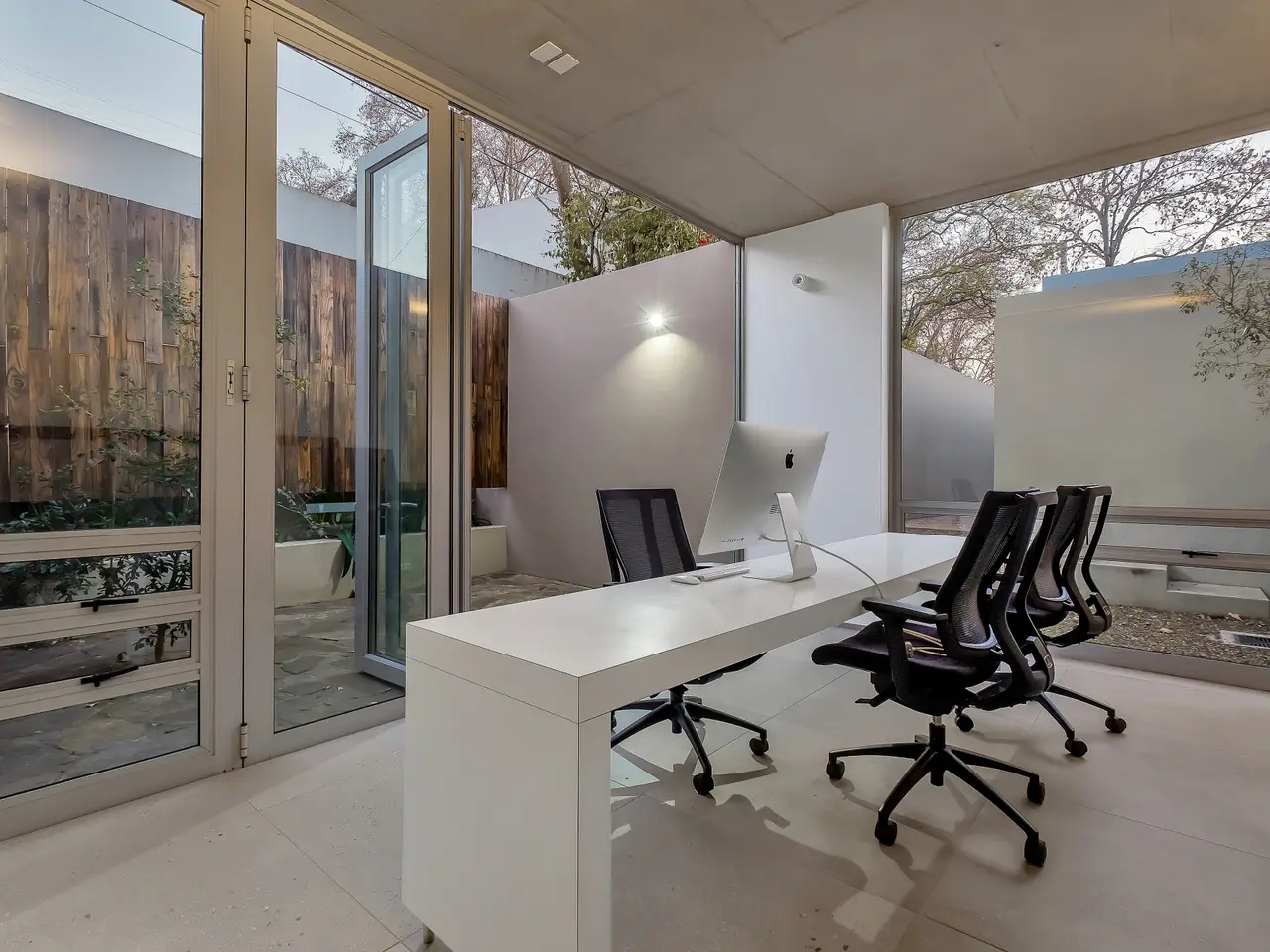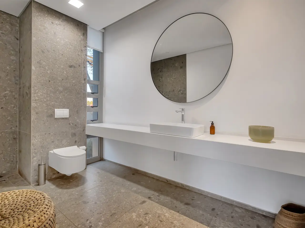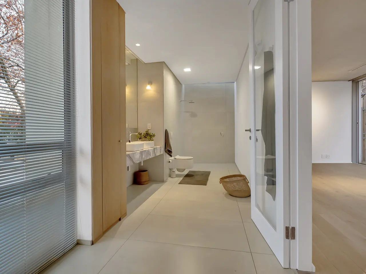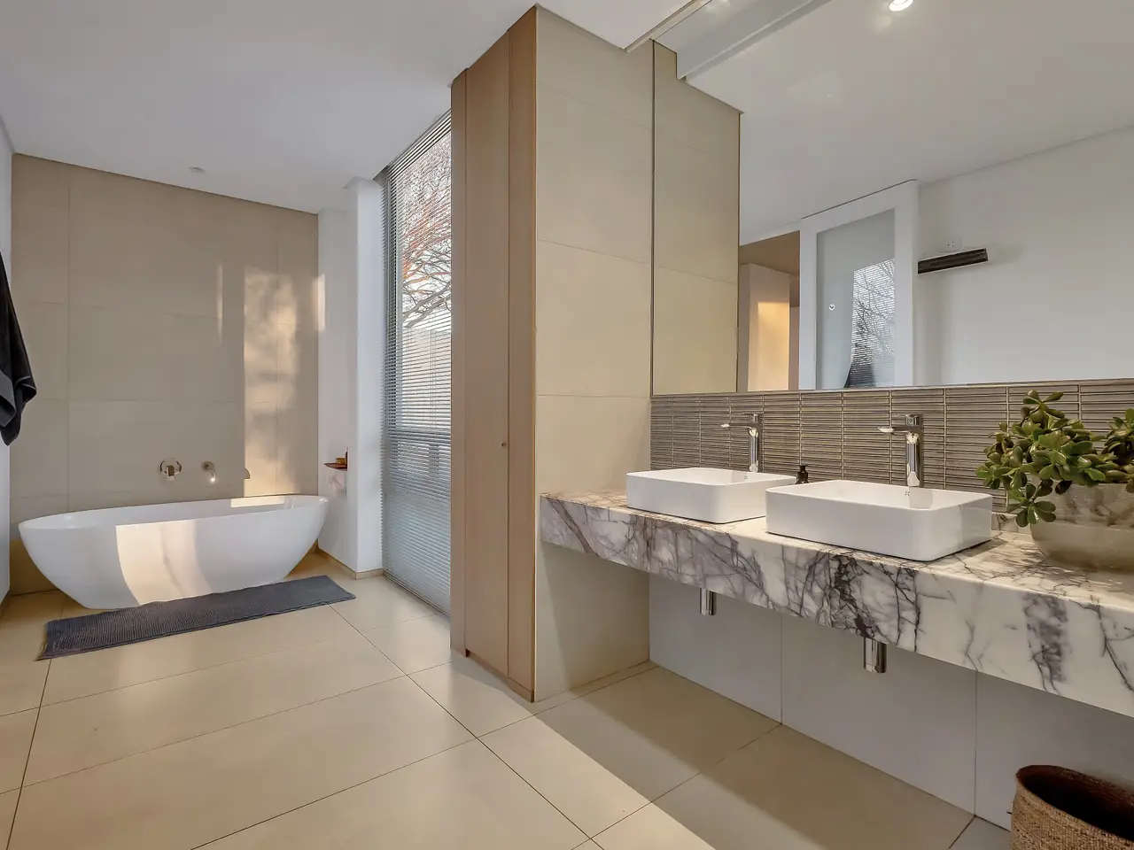 This architectural masterpiece out of the pages of a glossy magazine, combines cutting-edge glamour with a minimalist aesthetic. Brimming with sunshine and energy, it thinks way beyond the minimalist box. An inspired blend of floor to ceiling fenestration, bespoke cabinetry, and detailed finishes throughout are a happy mix. Courtyards, expansive tree-top views, ideal north facing aspects and seamless integration between the indoors and outdoors set the tone of this urban retreat measuring 513 square metres, with welcoming entrance and free-flowing spaces to include state of the art kitchen with stunning feature stone wall, integrated appliances and breakfast bar, dining, living, areas opening to the elevated pool and terraced treed garden – a total entertainer’s lifestyle. Generous stacking doors open this home to light, air, and structured garden views. There is a private guest wing comprising of spacious bedroom, bespoke bathroom, and private courtyard access. Currently this section is being utilised as a study. Guest cloakroom. The feature-clad staircase takes you to the accommodation on the upper level of the home, with tree-top views over the suburb. There are four bedrooms and three bathrooms finished to exacting standards (two en suite). Both the master suite and second bedroom suite are superbly integrated with the outdoors and the expansive treed garden below. The master suite offers a sun filled dressing room with clerestory windows and beautifully detailed full bathroom. A stand-alone, light filled, double volume, open plan studio/cottage of 126 square metres, with private entrance and double garage, enclosed courtyards, open plan kitchen, living and bedroom spaces and gorgeous bathroom offers multiple options – ideal for extended family living, additional income generating cottage, Airbnb, or home office environment. The double volume spaces allow for a mezzanine level to be created for additional living or accommodation. In addition, excellent staff suite with direct access to the main house, additional double automated garage, and storeroom/laundry. Features include piped gas connection for geysers and hobs, SMEG appliances and sinks, swivel wood burning fireplace in the living area and alarm system in the cottage. Do not miss out on this opportunity in the stylish suburb of Parkview, where access to local coffee shops, eateries, the retail strip on Tyrone Avenue, and both private and public schools, is just a stone’s throw away. Distinctive architecture plus a prestige neighbourhood. One look will do.