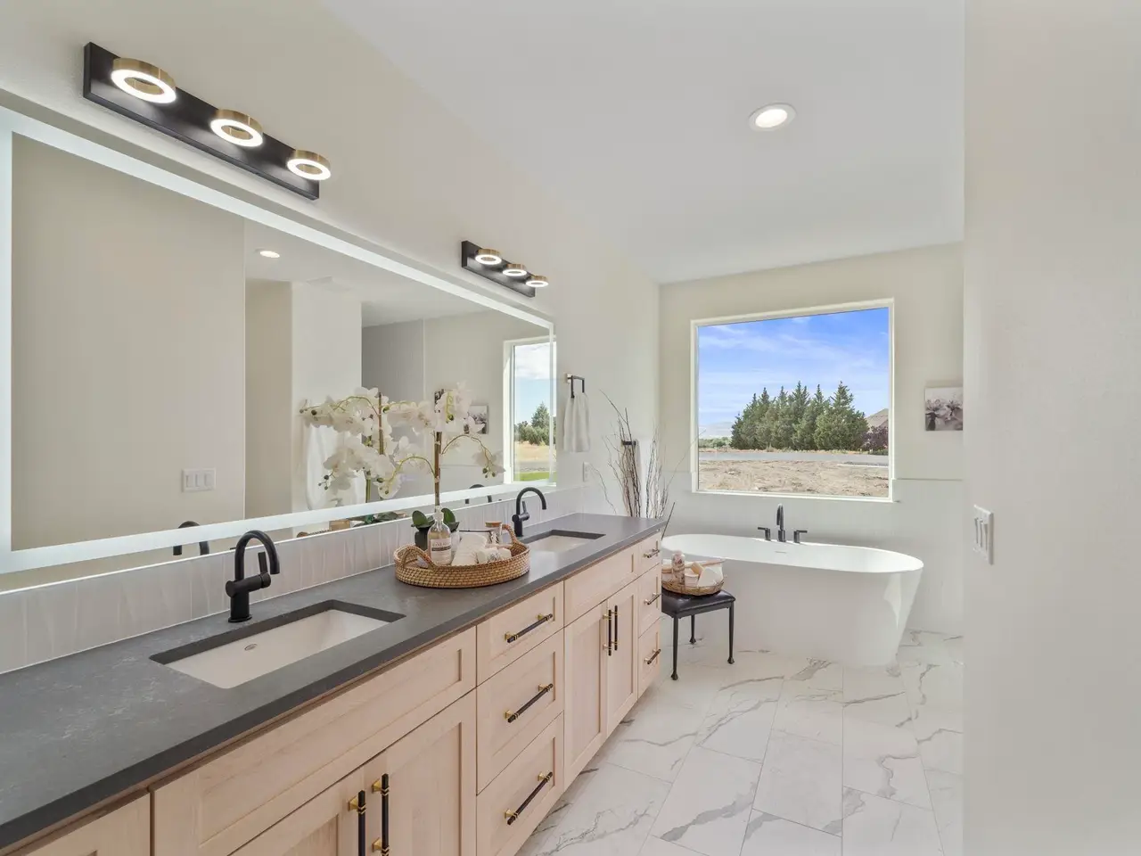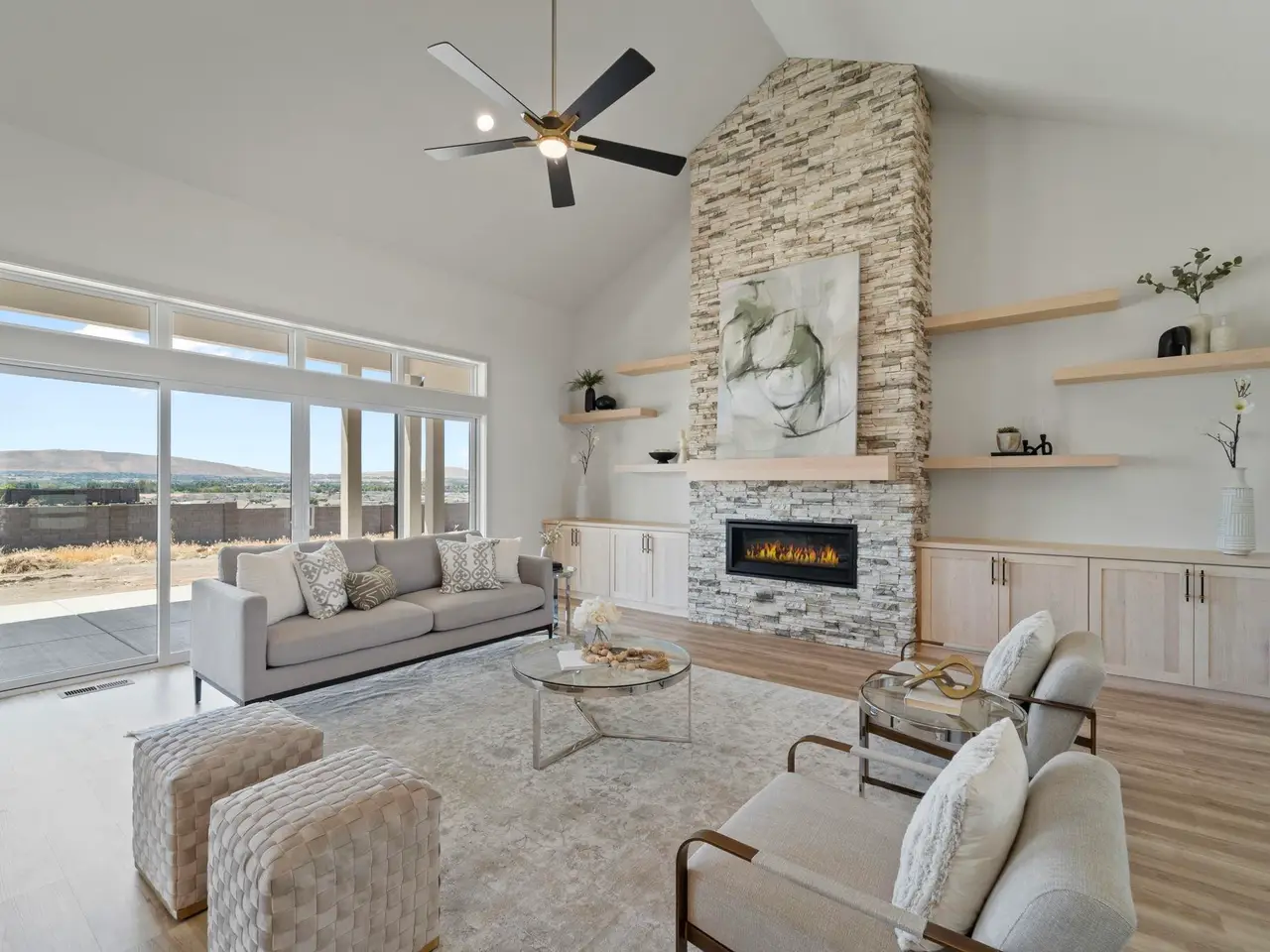 MLS# 284261 Discover unparalleled living in this exquisite custom-built home by Greg Senger Construction, boasting expansive panoramic views. Situated on a generous .65-acre lot in the prestigious Eagle Crest neighborhood of Pasco, this 3,238 square foot single-family residence offers a perfect blend of luxury and functionality. Step into a world of elegance with raised and vaulted ceilings that create an airy, open atmosphere throughout the main floor's 2,558 square feet. The great room, anchored by a cozy gas fireplace, flows seamlessly into a gourmet kitchen featuring custom-built maple cabinets, quartz countertops, designer backsplash and stainless-steel appliances and is open to the large dining area. Luxury vinyl plank flooring graces most of the home, while the primary suite and main bath boast elegant tile floors. The spacious primary suite is a true retreat, complete with a luxurious bath featuring a soaking tub, walk-in tile shower, and the convenience of stackable laundry hookups in the generous closet. Two additional bedrooms, a study, and a large laundry center complete the main floor living space. Upstairs, a 680 square foot bonus room with a wet bar and full bath provides the perfect entertainment space or potential guest quarters. This versatile area expands the home's living possibilities, ideal for various lifestyles and needs. Outdoor living is a dream with the 644 sq ft covered back patio, stubbed for a gas BBQ and offering the perfect vantage point to soak in the breathtaking river views. The expansive lot provides ample space for future additions such as a shop & pool, making it ideal for those who love to entertain or pursue outdoor passions.Additional features include a mud room for added convenience, a high-efficiency Carrier heat pump, and installed solar panels for energy efficiency. The home is plumbed for a water softener, and the spacious 1,025 square foot three-car garage is wired for an electric vehicle charger. The exterior showcases a stunning combination of stucco with krackshield, cultured stone, and wood siding accents. Located in the desirable Eagle Crest community, this home offers the perfect balance of privacy and accessibility. Whether you're seeking a family haven or an executive retreat, this property delivers on all fronts. Don't miss this opportunity to make this exceptional custom home yours. Schedule a viewing today and experience the luxury, space, and breathtaking views that could be your everyday reality.