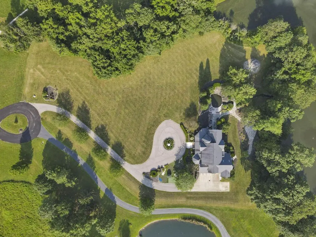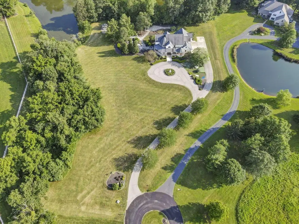 Live in luxurious executive estate meticulously maintained, located in desirable Highland Estates. Premium lot borders what was previously the Highlands Golf Course. Only 2 homes on cul-de-sac. Spacious rooms, finished walkout lower level, with a theater room .Putting green out front! Breathtaking views from all rooms. High end finishes-granite, crown molding, built-ins, walk-in closets, 3 gas log fireplaces, central vacuum, antique gas light converted fixtures, leaded glass, security & whole home sound system. Heated 3+ car garage, stately circular drive w/ fountain, wrap around front porch, 2 screened in porches. Separate entry guest suite. 25 mins to Easton, < 5 min to freeway access, 1/2 hr to downtown. Schedule your in person showing today!