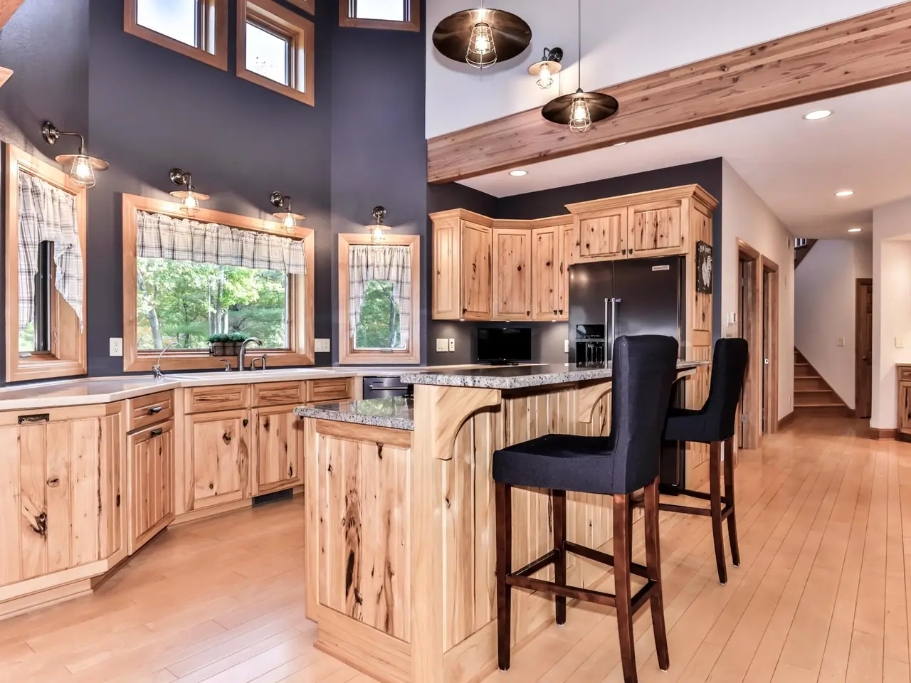 This stunning 3-bedroom, 3.5-bath craftsman-style home and hobby farm estate sits on over 11 acres of rolling, wooded terrain just minutes from Rhinelander, offering a rare blend of privacy, functionality, and charm. The property features fenced pastures, outdoor arenas, multiple wells with irrigation, open meadows, wooded trails, and a classic barnperfect for equestrian or recreational use. Built by VanStrydonk, the home showcases Scan-Log siding & natural fieldstone, multiple porches, extensive landscaping, flower beds, a fire pit, and a blacktop driveway leading to a 2-car attached garage with a finished hobby room above. A custom 52' x 36' auxiliary building echoes the homes architecture, adding versatility and style. Inside, you'll find a gourmet kitchen with solid surface counters and high-end appliances, a dining area with a gas parlor stove, a main floor office, and a soaring two-story living room anchored by a massive fieldstone gas fireplace. The layout includes two primary suitesone on the main level and one upstairsplus a lofted office, main floor half bath, and laundry hookups on both the main and lower levels. The lower level offers a spacious family room with built-in theater, an exercise room with included gym equipment, a third bedroom, full bath, and utility room. With its thoughtful design and natural beauty, this property is a peaceful retreat with all the amenities of modern livingyour own little piece of heaven. Photos, aerial views, and a full inclusion list are available.