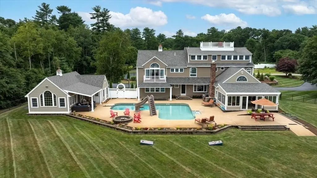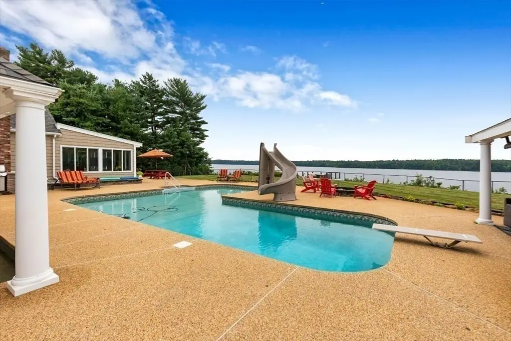 Experience the grandeur of this spectacular, private lakefront estate with panoramic views of Silver Lake. Main house has 6 options for bedrooms, 5 1/2 baths, 4 season room with incredible views. Additional "Pool Cabana" with kitchen, gorgeous living room, full bath, loft & flex space. Extremely well designed granite kitchen will bring out your inner chef with 12 foot island with seating, top of the line appliances. Custom inground L-shaped16X40 heated saltwater pool & heated 7X12 swim spa. Grand main suite with sitting room. Outdoor kitchen with granite top, built-in grill and fridge are brand new. Additional 1/2 bath for pool area. Watch the gorgeous sunset on lakeside deck or private beach. Widow's walk roof top viewing deck. Full tennis/sport court. All situated on a 2.4+ acre double lot. Deep Artesian Well. Hardwoods throughout. Many handicapped accessible features. Property being sold furnished, move right in! Make your appointment to view this south shore gem today!