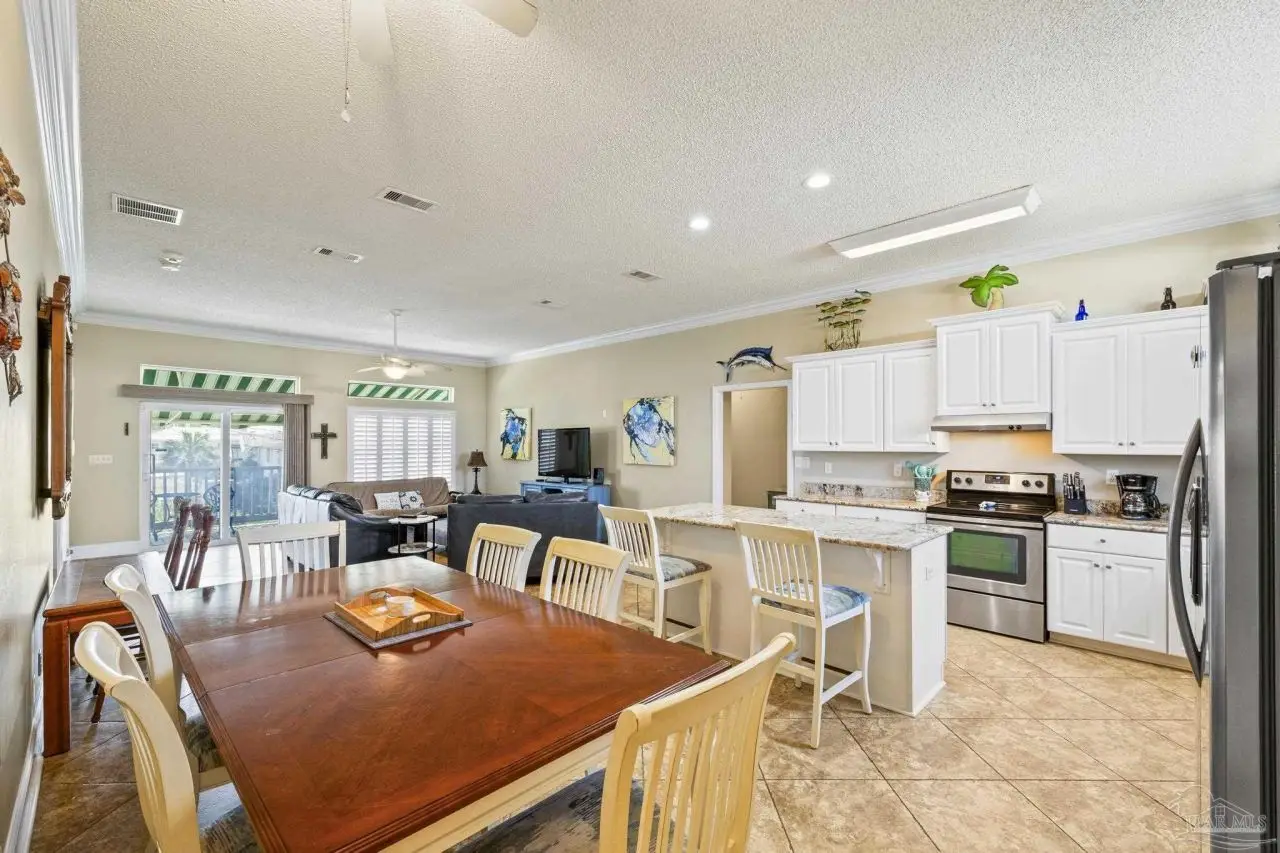 Escape to the Beach where your next Home Awaits! The spacious & light-filled open-concept living area seamlessly connects the kitchen, dining, & living spaces, creating a warm and inviting atmosphere for gatherings with family & friends. There are high ceilings, crown molding and tile floors throughout this split floorplan boasting 3 large bedrooms & 2 full baths, not to mention the downstairs game room & additional storage. This home is completely furnished & ready for you to enjoy or rent & sleeps 11 as furnished. The heart of this home is a large kitchen with island, granite counters & tons of cabinets. Whether you're preparing a casual breakfast or hosting a lavish dinner party, this kitchen is equipped to handle it all. Dive into your own private saltwater - heated - in-ground- pool, perfect for cooling off on warm days or enjoying a refreshing evening swim. The spacious pool deck offers ample room for lounging & entertaining, creating your own personal paradise. This property is an oasis of tranquility just steps from the pristine sparkling Gulf waters. Enjoy effortless access - a 1 minute away - with your beach cart on the walkway to the beach next to the house. Spend your days swimming, sunbathing, shelling, or simply strolling along the Emerald Green Waters. And when you return home - rinse off with the convenient outdoor shower. The soothing sounds of the waves will be your daily soundtrack. Embrace the coastal lifestyle with covered patio or when we get the occasional shower, the Playroom offers all sorts of games like ping pong, Pop-a-Shot & Foosball. The Playroom & covered patio are also great for al fresco dining or simply relaxing & enjoying the gentle sea breeze in the shade. Upstairs you can watch the water on the front deck where there is a remote awning for those hot & sunny afternoons. This home offers convenient access to all of the restaurants, shops & activities the Beach and Boardwalk has to offer! AC 2024, Roof 2023, Pool/Pool Heater 2021.