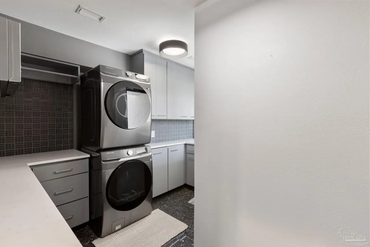 Experience luxury coastal living at its finest in this stunning 3 bedroom, 2.5 bathroom townhome in the heart of downtown Pensacola. Perfectly positioned within the exclusive gated community of Port Royal, this residence offers unobstructed views of Pensacola Bay and over 2,200 square feet of modern, sophisticated living space. The entry level includes a private garage and additional storage. A few steps up, the main living area welcomes you with high ceilings, abundant natural light, and designer finishes. The open concept layout flows seamlessly from the living and dining areas into an updated, chef inspired kitchen featuring stainless steel appliances, an ice maker, and a large island ideal for entertaining. Off the living room, a private balcony provides breathtaking sunsets and front row views of the Blue Wahoos fireworks. Upstairs, the primary suite offers a peaceful retreat with a spa like bathroom, beautiful custom shower, dual vanities, and a walk in closet with built in organization. Two additional bedrooms and a full bath complete the upper level, offering comfortable space for guests or family. Port Royal is a low density community of only 60 residences located on a private peninsula. Amenities include a resort style pool, fitness center, and 24 hour gated security, all just steps from Palafox Street's vibrant shops, dining, and marina. Offering the perfect blend of modern luxury and downtown waterfront living, 5 Port Royal Way is ideal as a full time residence or a lock and leave coastal getaway. Schedule your private tour today!