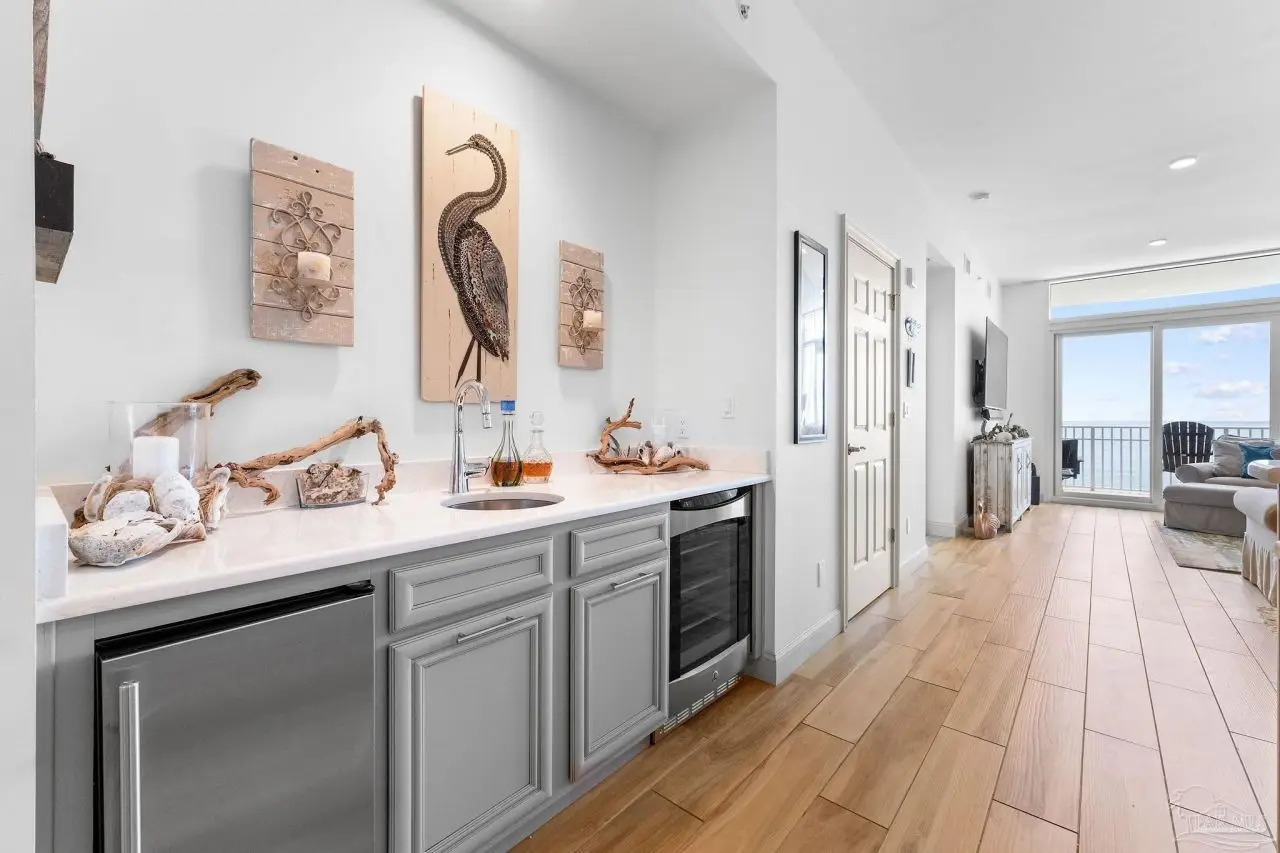 Extraordinary 6th floor, direct gulf-front residence with breathtaking views overlooking miles of protected coastline! Enjoy exceptional residences and amenities in a tranquil, low-density beachfront setting far away from the crowds. Vista del Mar has an irreplaceable location at the east end of the island of Perdido Key and borders over 5 miles of protected Gulf Islands National Seashore offering nature trails, bike paths, and unspoiled beaches for your enjoyment. This luxurious three bedroom/3.5 bath FURNISHED residence includes assigned garage parking and showcases a thoughtful floor plan with impressive floor-to-ceiling windows, a generous balcony complete with gas grill, and breathtaking Gulf views. The exquisite kitchen boasts white quartz countertops, high-end cabinetry, a Chef’s kitchen featuring a Wolf® range and chimney hood, a Sub-Zero® refrigerator, and a wet bar equipped with ice maker and wine refrigerator. Luxurious bathrooms are designed with frameless, thick glass shower doors and ample walk-in closets. At Vista Del Mar, enjoy a secure, gated community entrance, designated garage parking, and climate-controlled owner storage at the amenity level. The grand lobby entrance offers various seating areas, custom artwork, and awe-inspiring views. High-speed elevators lead to climate-controlled lobbies. Indulge in the lavish outdoor pool area with a vast beachfront deck, hot tub, and covered outdoor seating. Experience the heated indoor pool with stunning water views. The owner’s health club provides a fully-equipped fitness room, yoga studio, and massage treatment rooms. Residents can unwind in the club room with fireplace, bar, pool tables, and TVs. Surround yourself with lush landscaping, coastal breezes and WELCOME HOME TO LUXURY BEACHFRONT LIVING AT ITS FINEST!