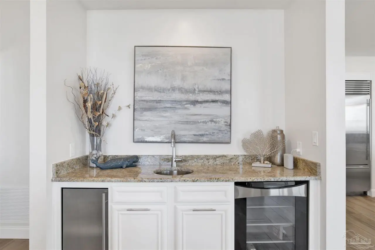 THIS RARE 5-BEDROOM, 6TH FLOOR CORNER RESIDENCE HAS BREATHTAKING, PANORAMIC VIEWS OVERLOOKING MILES OF PROTECTED COASTLINE AND THE GULF! ENJOY EXCEPTIONAL AMENITIES IN A TRANQUIL, LOW-DENSITY BEACHFRONT SETTING FAR AWAY FROM THE CROWDS. Vista del Mar has an irreplaceable location at the east end of the island of Perdido Key and borders over 5 miles of protected Gulf Islands National Seashore offering nature trails, bike paths, and unspoiled beaches for your enjoyment. This luxurious residence has been specially customized to a 5 BEDROOM/4.5 BATHROOM floor plan and comes fully furnished with assigned garage parking. This gem showcases impressive floor-to-ceiling windows, a generous balcony complete with gas grill, and stunning white ship lap accents throughout. The exquisite kitchen boasts granite countertops, high-end cabinetry, a Chef's kitchen featuring a Wolf® range and chimney hood, a Sub-Zero® refrigerator, and a wet bar equipped with ice maker and wine refrigerator. Luxurious guest suites are designed with spa-like bathrooms and ample walk-in closets. At Vista Del Mar, enjoy a secure, gated community entrance, designated garage parking, and climate-controlled owner storage at the amenity level. The grand lobby entrance offers various seating areas, custom artwork, and awe-inspiring views. High-speed elevators lead to climate-controlled lobbies. Indulge in the lavish outdoor pool area with a vast beachfront deck, hot tub, and covered outdoor seating. Experience the heated indoor pool with stunning water views. The owner's health club provides a fully-equipped fitness room, yoga studio, and massage treatment rooms. Residents can unwind in the club room with fireplace, bar, pool tables, and TVs. Surround yourself with lush landscaping, coastal breezes and WELCOME HOME TO LUXURY BEACHFRONT LIVING AT ITS FINEST!
