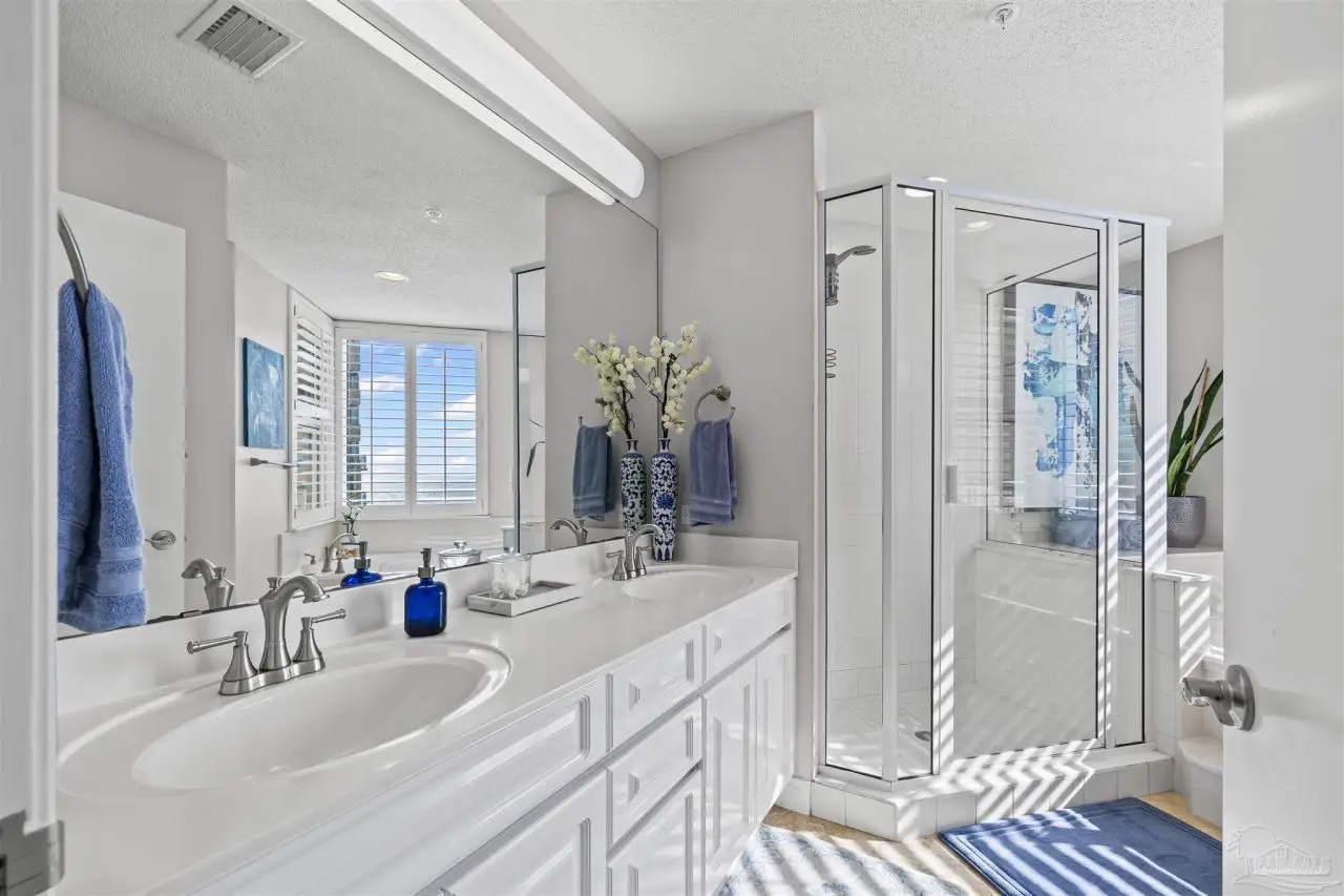 Experience coastal living at its finest in this stunning 3-bedroom, 3-bathroom penthouse perched on the 16th floor of Beach Colony East. With panoramic Gulf views and over 1,900 square feet of elegantly appointed space, this residence offers the perfect blend of luxury and tranquility. Step into a light-filled open-concept living area with floor-to-ceiling glass doors that lead to an expansive beachfront balcony-ideal for morning coffee or sunset cocktails. The gourmet kitchen features quartzite countertops, stainless steel appliances, and a breakfast bar that flows seamlessly into the dining and living spaces. Each bedroom is a private retreat, with the Gulf front primary suite boasting direct balcony access, a spa-like ensuite bath with a jetted tub, separate shower, and dual vanities. The two guest bedrooms are generously sized, each with its own full bath, perfect for hosting family and friends. Beach Colony offers resort-style amenities including gated entry, indoor and outdoor pools, fitness center, tennis and pickle ball courts, and direct beach access. Located minutes from dining, shopping, and the natural beauty of the Gulf Islands National Seashore, this penthouse is your gateway to the ultimate Perdido Key lifestyle. Don't miss this rare opportunity to own one of the largest penthouse units at Beach Colony with unmatched views and amenities.