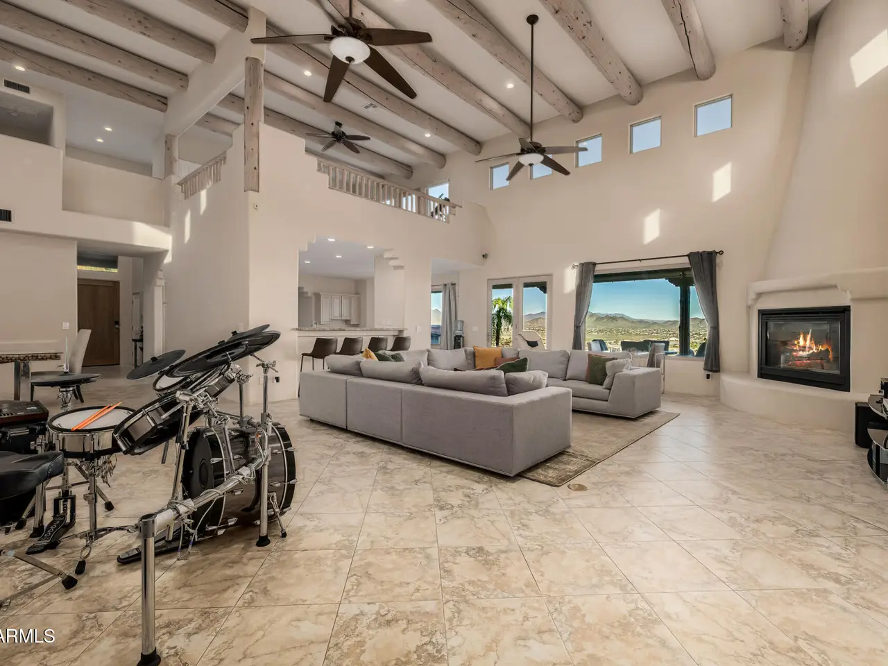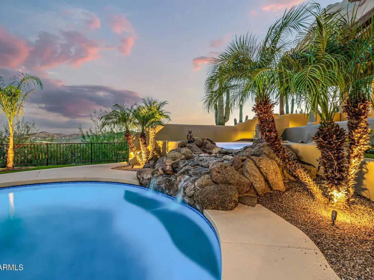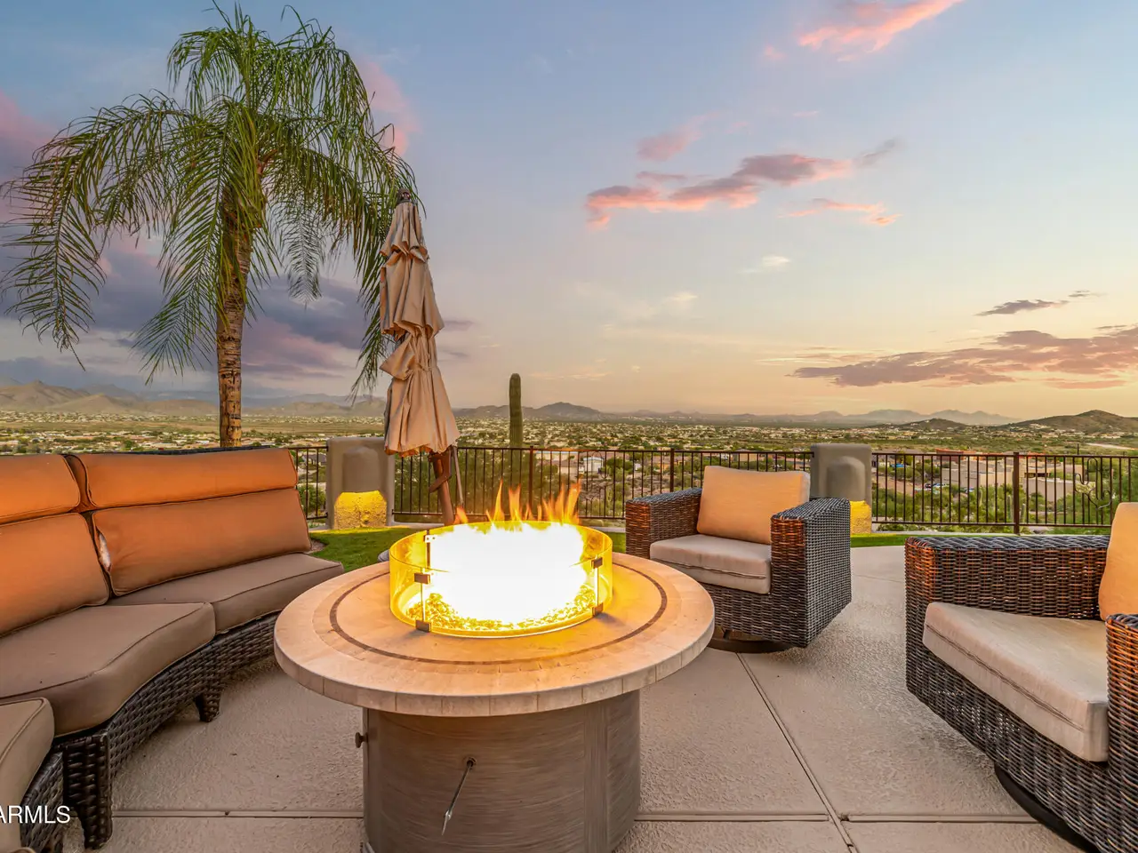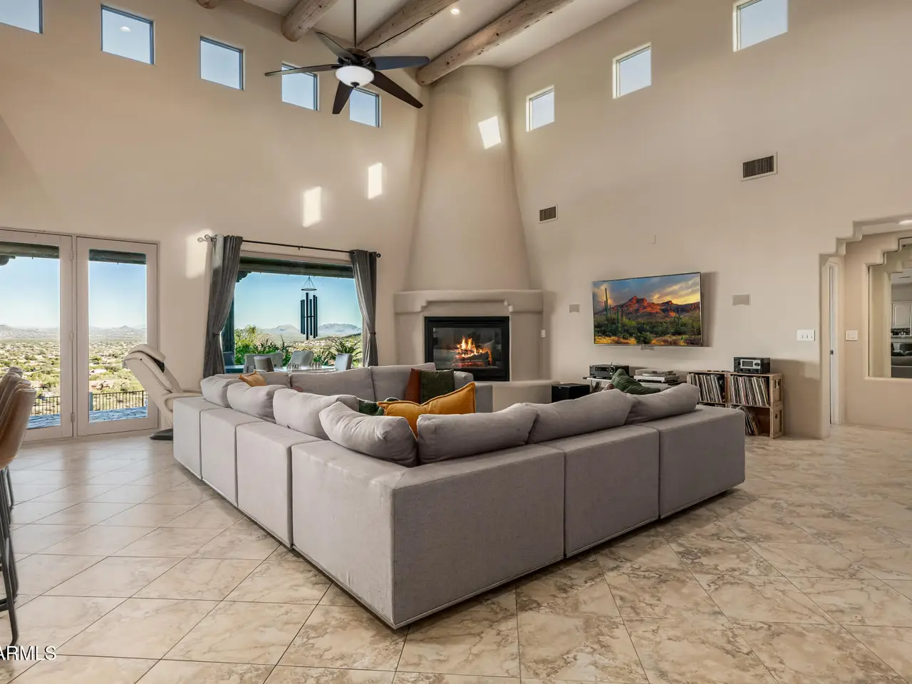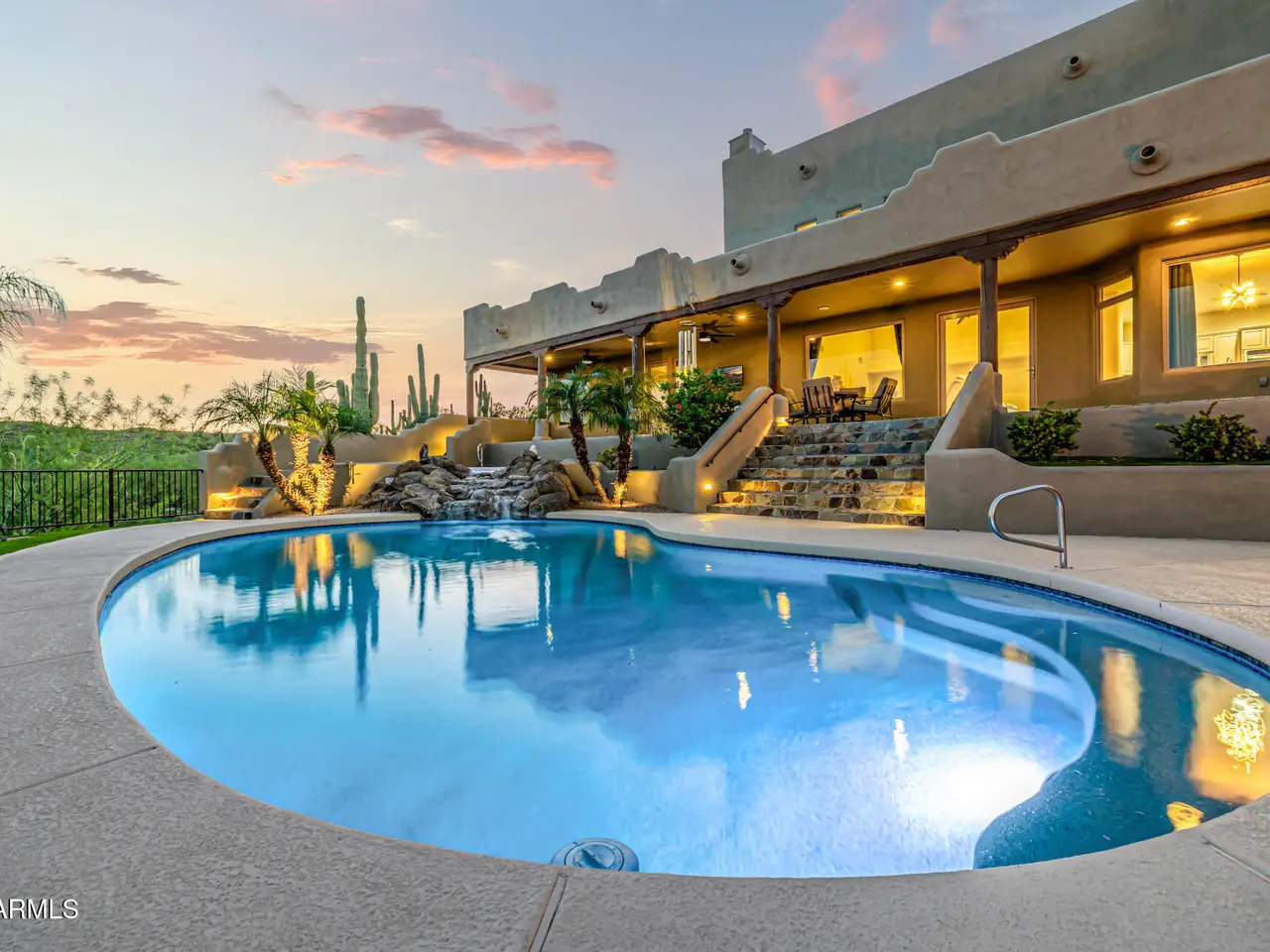 Live where the views feel endless. This custom property sits on 1.5 acres with million-dollar city lights & mountain panoramas from sunrise to sunset. Inside, the great room opens beneath dramatic cathedral beamed ceilings & a warm fireplace ideal for gatherings. The kitchen blends seamlessly with the living spaces & features rich cabinetry, granite counters & tile flooring throughout. Each bedroom includes a walk-in closet & the luxurious primary suite features a sitting/office area, patio access, spa-style bath & dual walk-ins. Enjoy a resort-style backyard with heated pool + spa, extended covered patio and view fencing. No HOA. Oversized 3-car garage with cabinets + epoxy floors, water softener, & plenty of storage. Freshly painted, impeccably cared for and move-in ready!