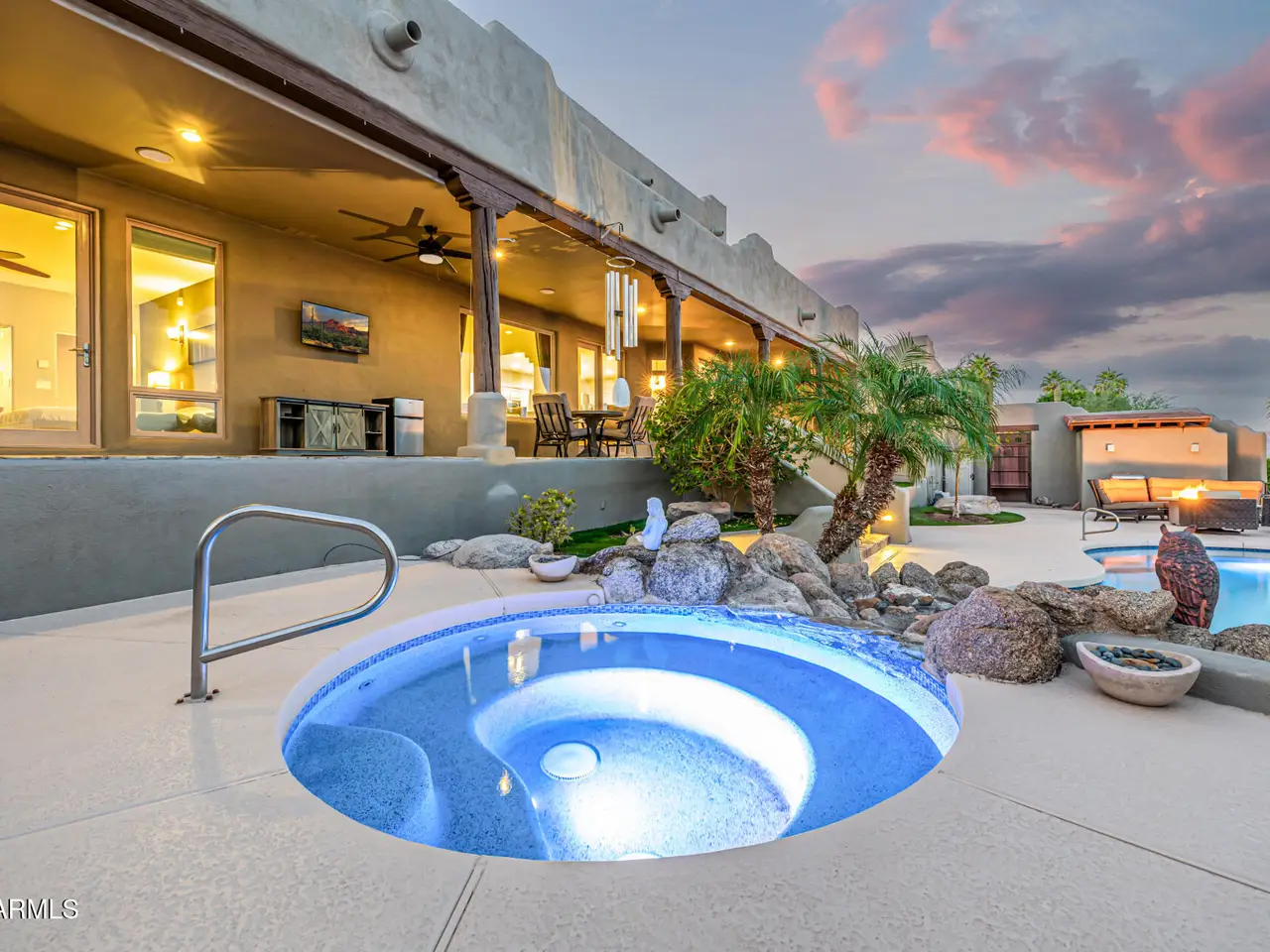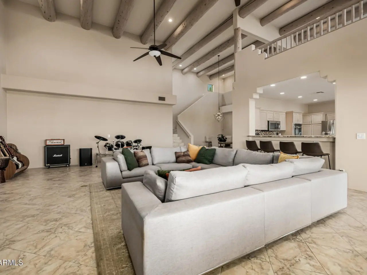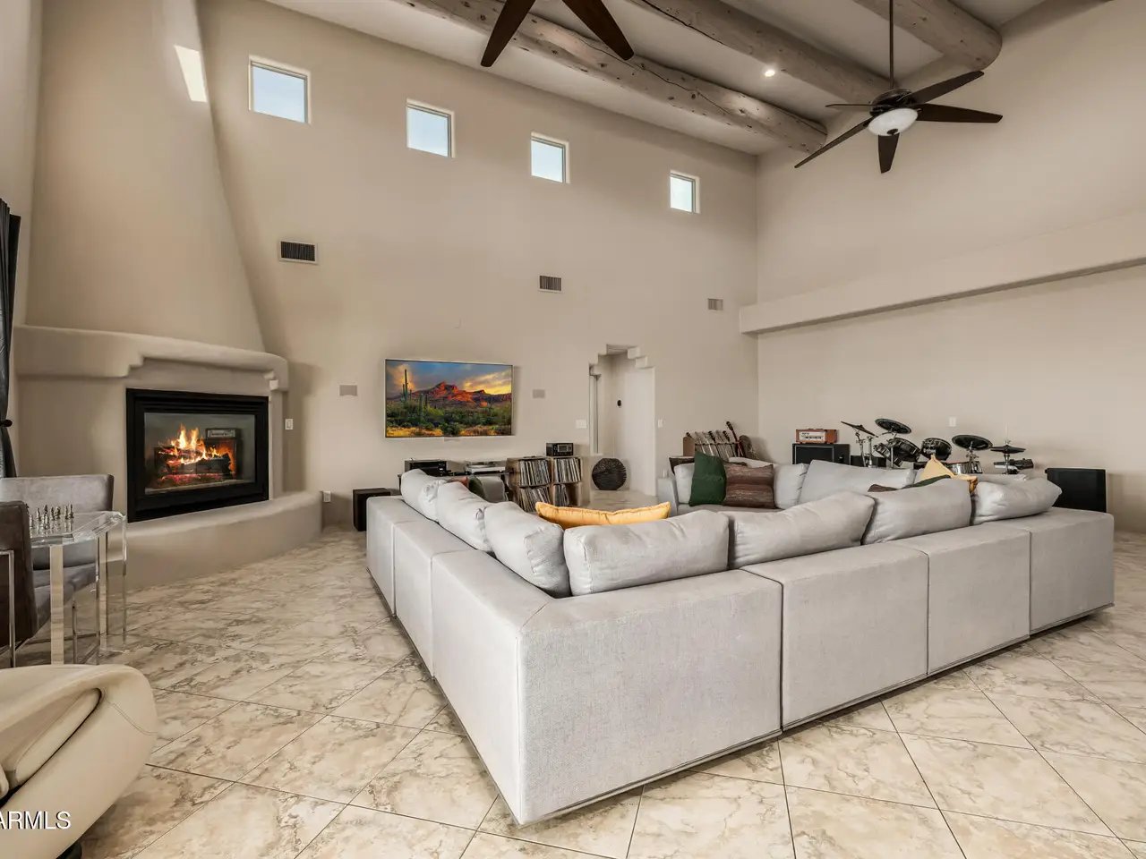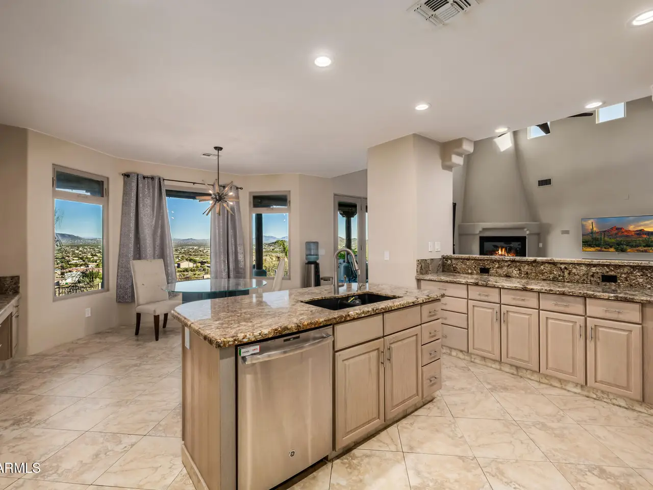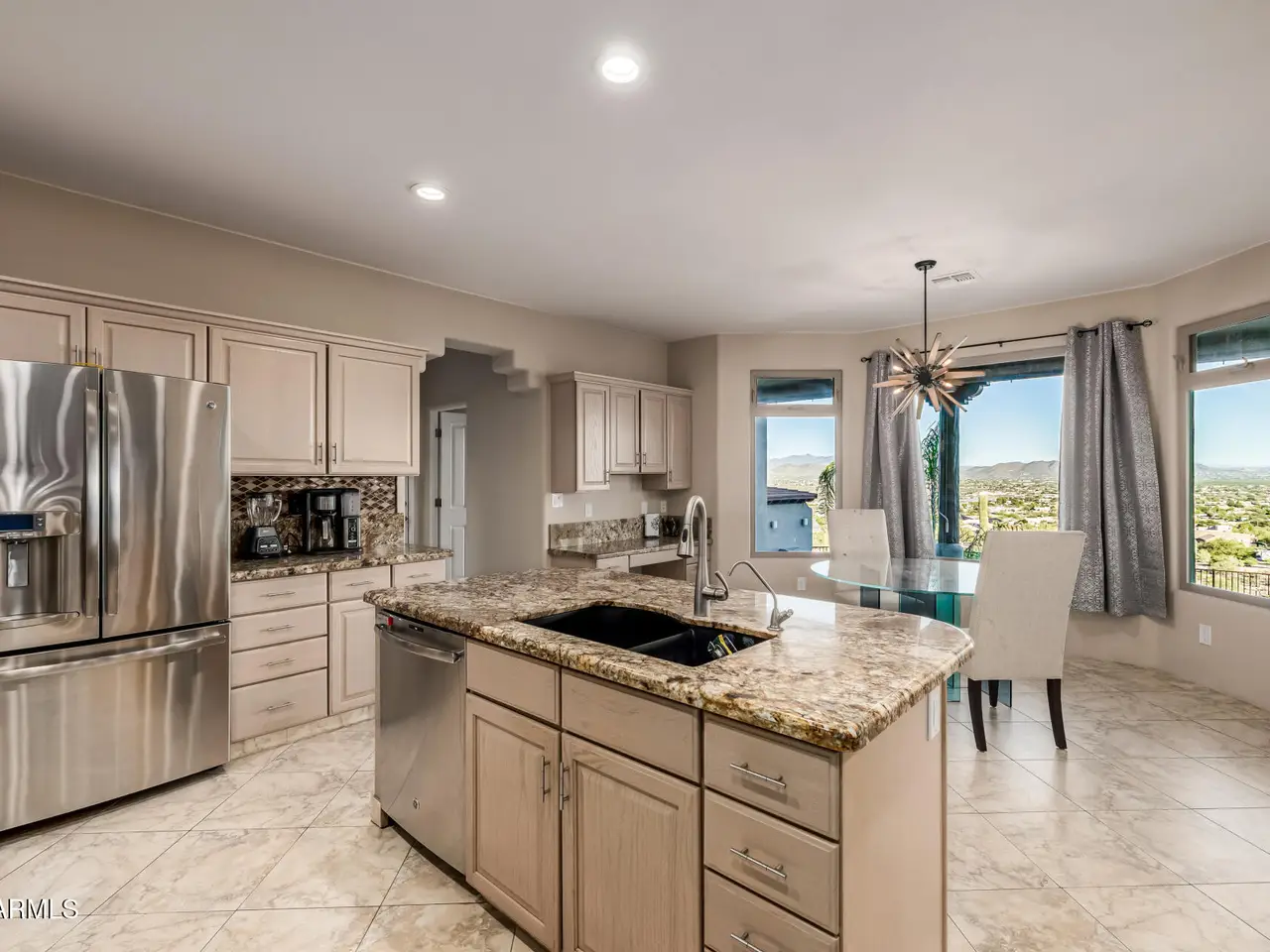 Live where the views feel endless. This custom property sits on 1.5 acres with million-dollar city lights & mountain panoramas from sunrise to sunset. Inside, the great room opens beneath dramatic cathedral beamed ceilings & a warm fireplace ideal for gatherings. The kitchen blends seamlessly with the living spaces & features rich cabinetry, granite counters & tile flooring throughout. Each bedroom includes a walk-in closet & the luxurious primary suite features a sitting/office area, patio access, spa-style bath & dual walk-ins. Enjoy a resort-style backyard with heated pool + spa, extended covered patio and view fencing. No HOA. Oversized 3-car garage with cabinets + epoxy floors, water softener, & plenty of storage. Freshly painted, impeccably cared for and move-in ready!
