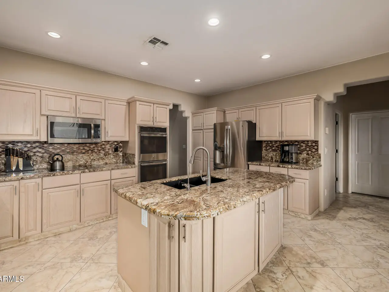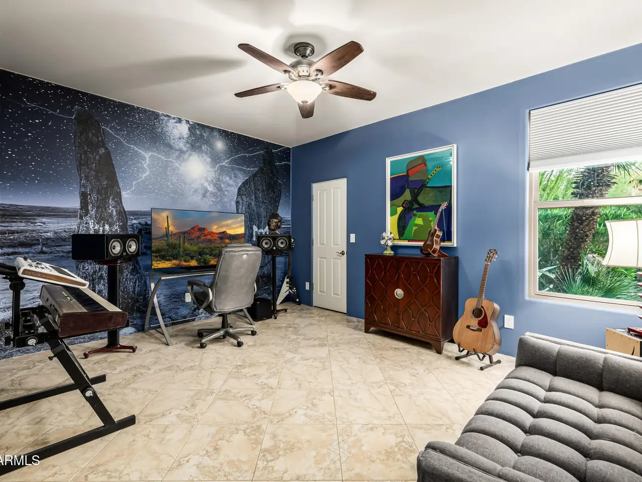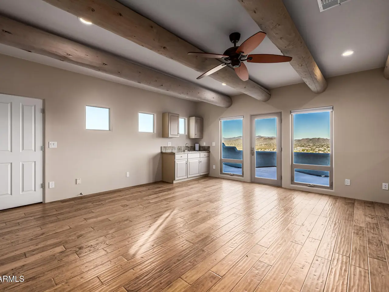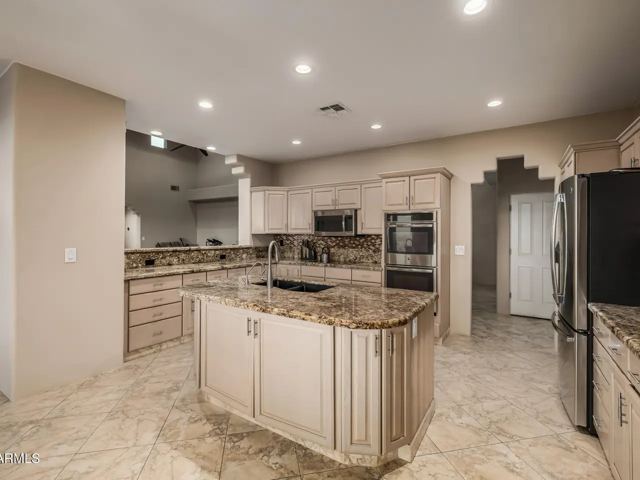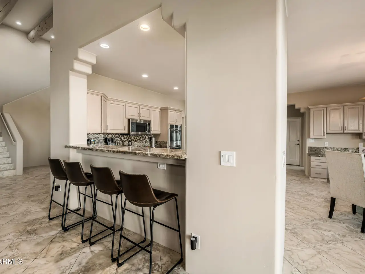 Live where the views feel endless. This custom property sits on 1.5 acres with million-dollar city lights & mountain panoramas from sunrise to sunset. Inside, the great room opens beneath dramatic cathedral beamed ceilings & a warm fireplace ideal for gatherings. The kitchen blends seamlessly with the living spaces & features rich cabinetry, granite counters & tile flooring throughout. Each bedroom includes a walk-in closet & the luxurious primary suite features a sitting/office area, patio access, spa-style bath & dual walk-ins. Enjoy a resort-style backyard with heated pool + spa, extended covered patio and view fencing. No HOA. Oversized 3-car garage with cabinets + epoxy floors, water softener, & plenty of storage. Freshly painted, impeccably cared for and move-in ready!