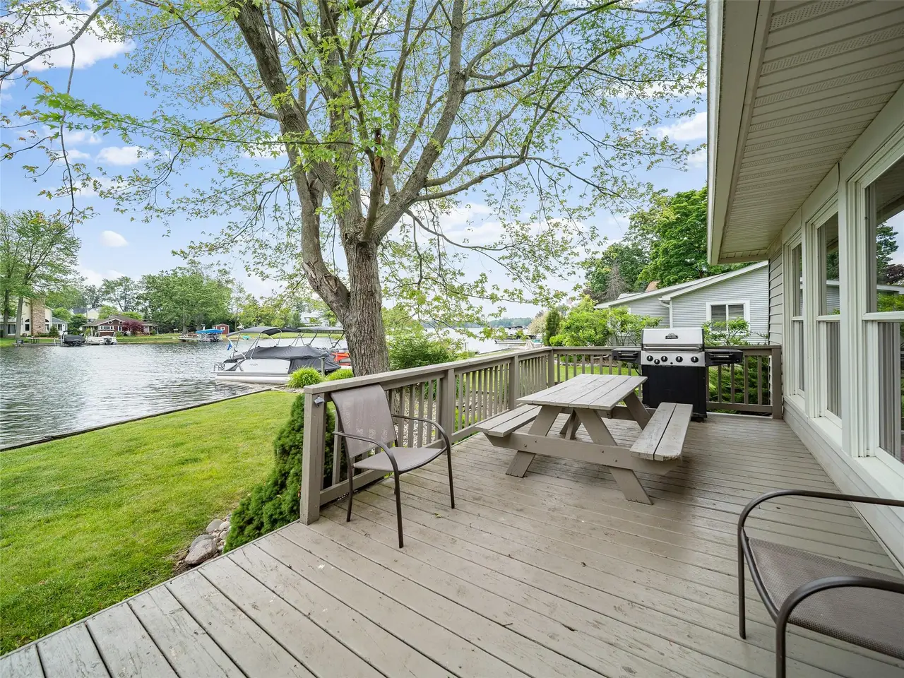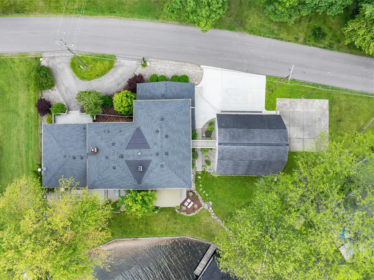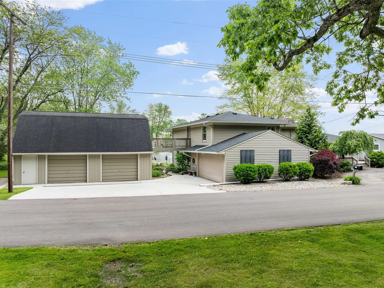 Welcome to Lake Life on All-Sports Strawberry Lake! This stunning 4-bedroom, 3-bath lakefront home offers 125 feet of private waterfront on one of Michigan’s desirable chains of lakes. With over 3,000 sq ft of living space, you’ll enjoy sweeping views, warm finishes, and comfortable spaces designed for both entertaining and relaxing. Step into the main living area with soaring ceilings, a wall of windows overlooking the lake, and a cozy loft above. The open-concept layout features a beautifully updated kitchen with custom cabinetry, island seating, fireplace and an expansive dining area that comfortably fits a crowd—all with panoramic water views. Cozy up in a spacious family room with a lodge-like feel, stone fireplace, media center, and easy access to the backyard and lake. Whether you’re enjoying coffee on spacious deck under the covered gazebo or sunset cruises on the water, this home is made for year-round enjoyment. Additional features include a large pole barn with space above ready to be finished for extra living quarters, a second lot across the street offering 2.30 acres of added privacy with unlimited potential. This is more than just a home—it’s a retreat. Whether it’s fishing, boating, or gathering with friends, Strawberry Lake living delivers a lifestyle you’ll treasure.