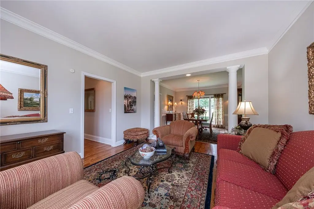 WELCOME HOME to this impeccably maintained custom house on a beautiful private lot in the prestigious Treesdale golf course community. Thoughtfully designed floor plan offers timeless elegance & functionality. Custom moldings, attractive hardwood flooring, & freshly painted neutral colors throughout. Chef's kitchen boasts custom cabinets, newer appliances, granite counters, island & large dining area that overlooks the beautiful private patio. Open living & dining rm w/custom moldings. Private office w/custom shelves. Spacious family rm w/cathedral ceiling, & custom fireplace flanked by windows. 4 spacious bedrooms upstairs(2 w/volume ceilings). Primary suite w/tray ceiling.Updated spa like bath boasts stunning shower, stand alone tub & more. Spacious owner's custom closet! Finished lower level features new Flotex flooring & paint, wet bar, full bath & storage. Casement windows w/new glass, HVAC, roof, int & ext paint, prof. landscaping, built in back-up power system & much more!