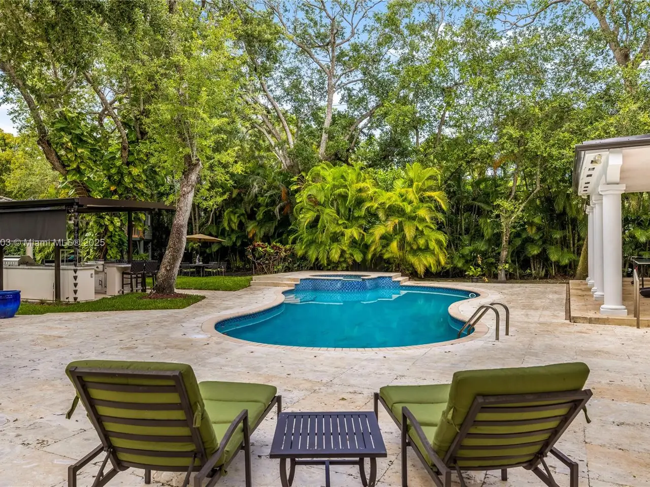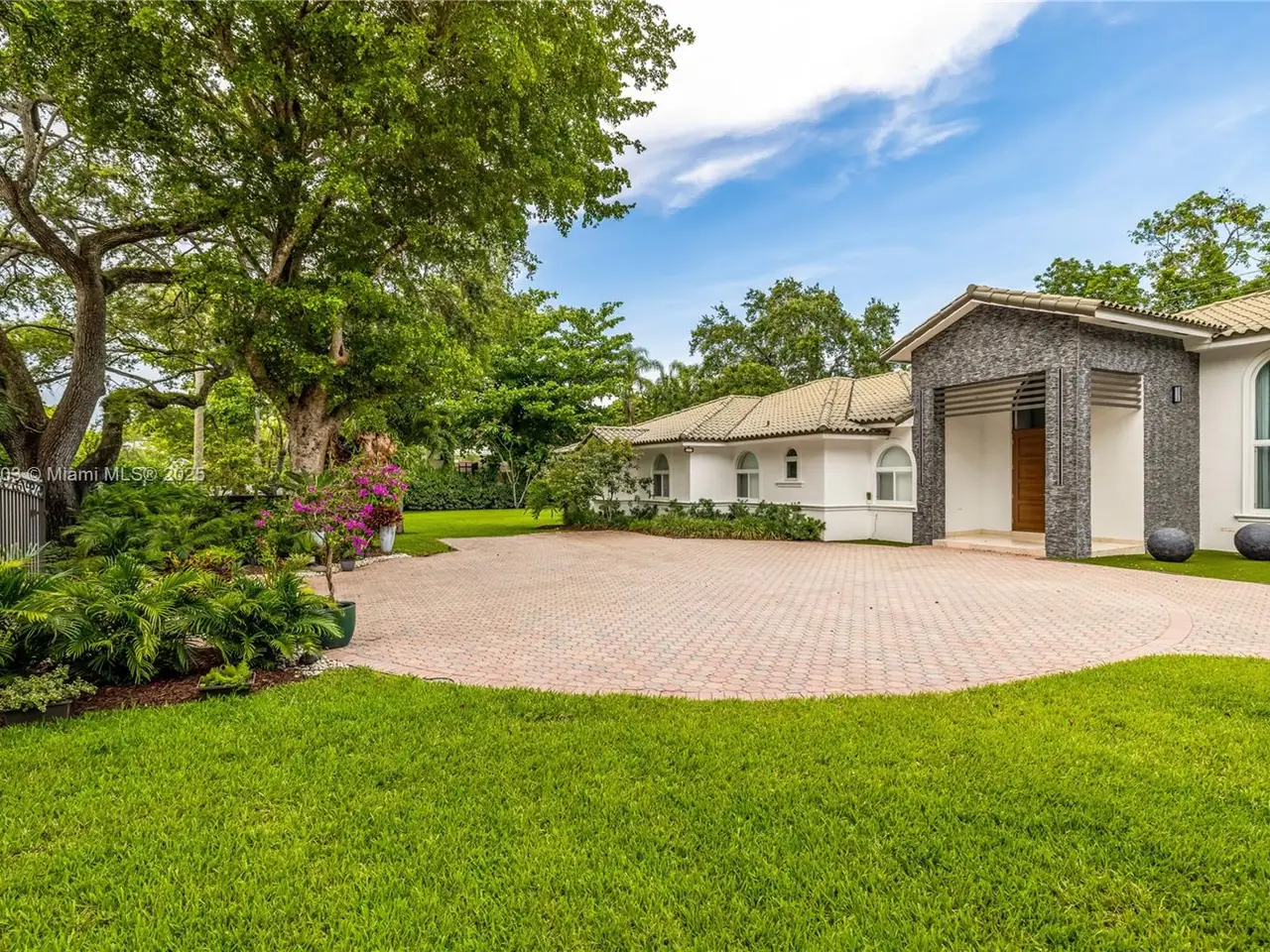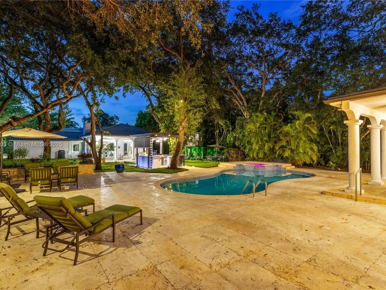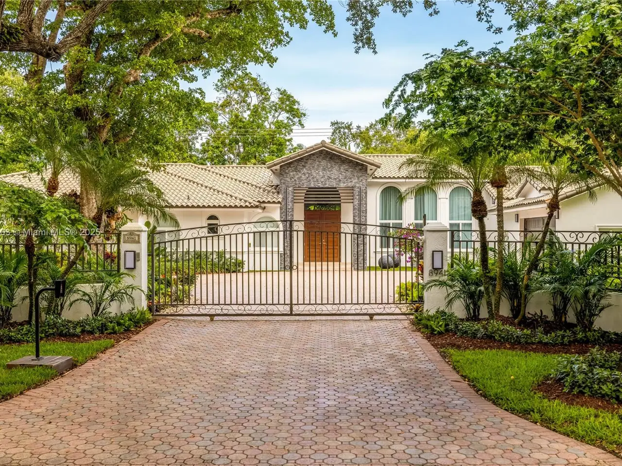 Stunning gated 1-story 8,126 total SF residence on a quiet cul-de-sac in prime North Pinecrest, steps from Gulliver & Beth Am. Set on a lush 1.1 acre with a 2-story, 1,300 SF guesthouse, treehouse, & ample parking. The 6-bed, 5.5-bath main home offers an office, new impact windows/doors, & Firenze Carrara polished marble tile throughout. Gourmet kitchen boasts a leather-textured marble island, Veneta Cucine cabinetry, & Miele appliances. Guest bath features full-height, single-slab Italian tile. Primary suite includes dual walk-in closets & a spa-style bath with Kohler DTV+ faucet less system for steam, audio, chromotherapy, & lighting. Whole-house Brilliant system manages lighting, Zoom intercom, & Sonos audio indoors/out. Outdoor oasis includes a new summer kitchen & resort-style pool.
