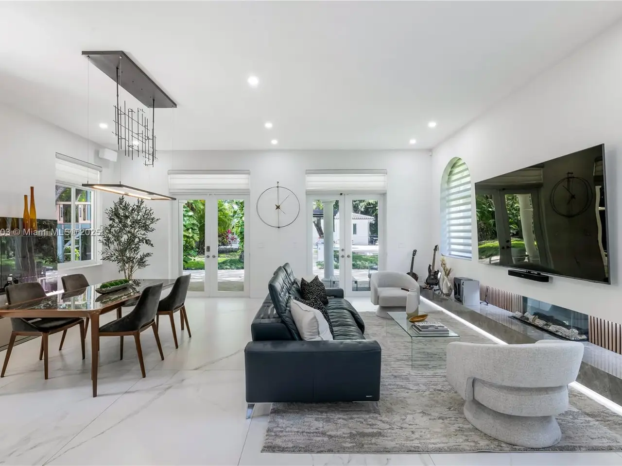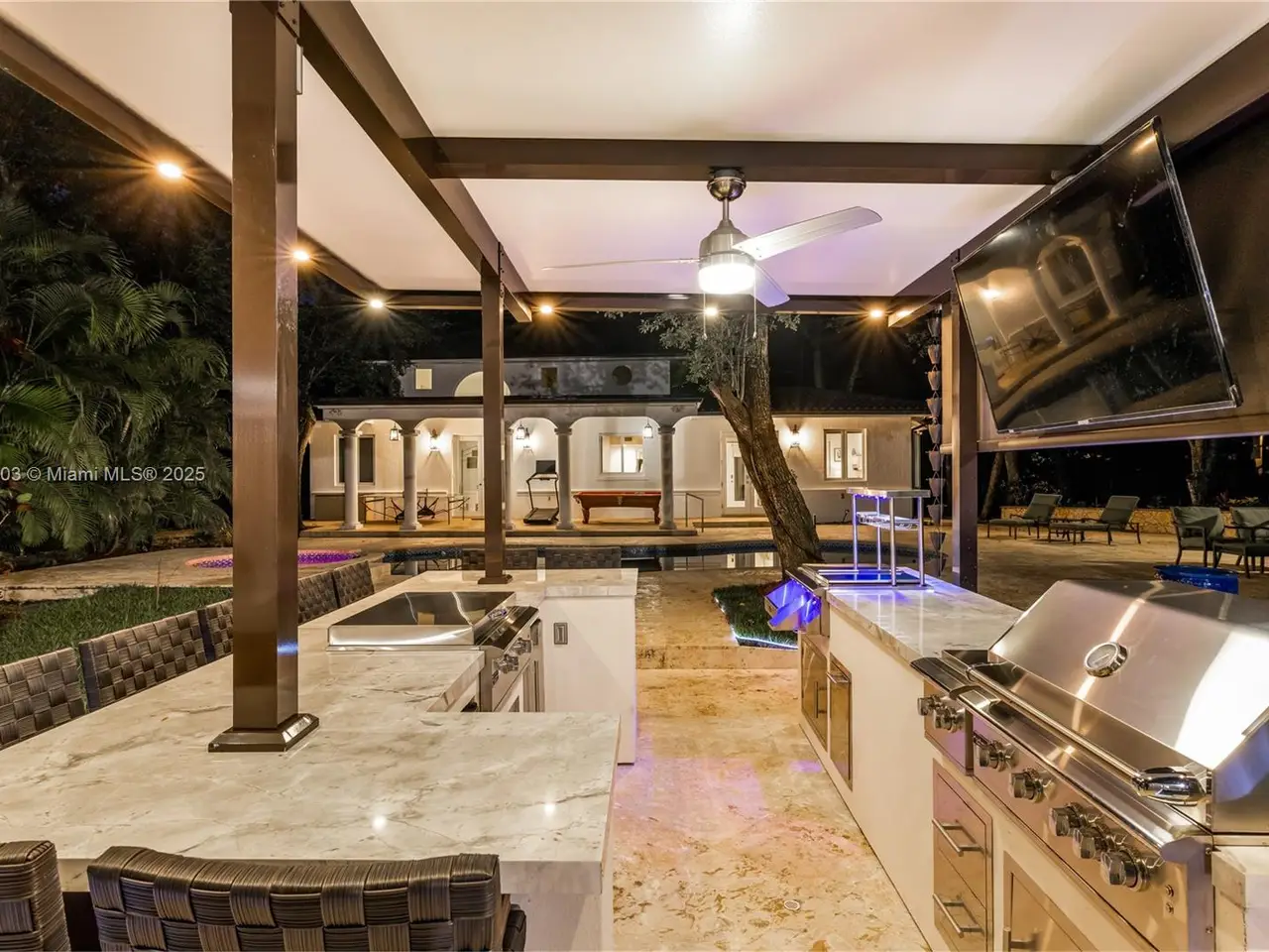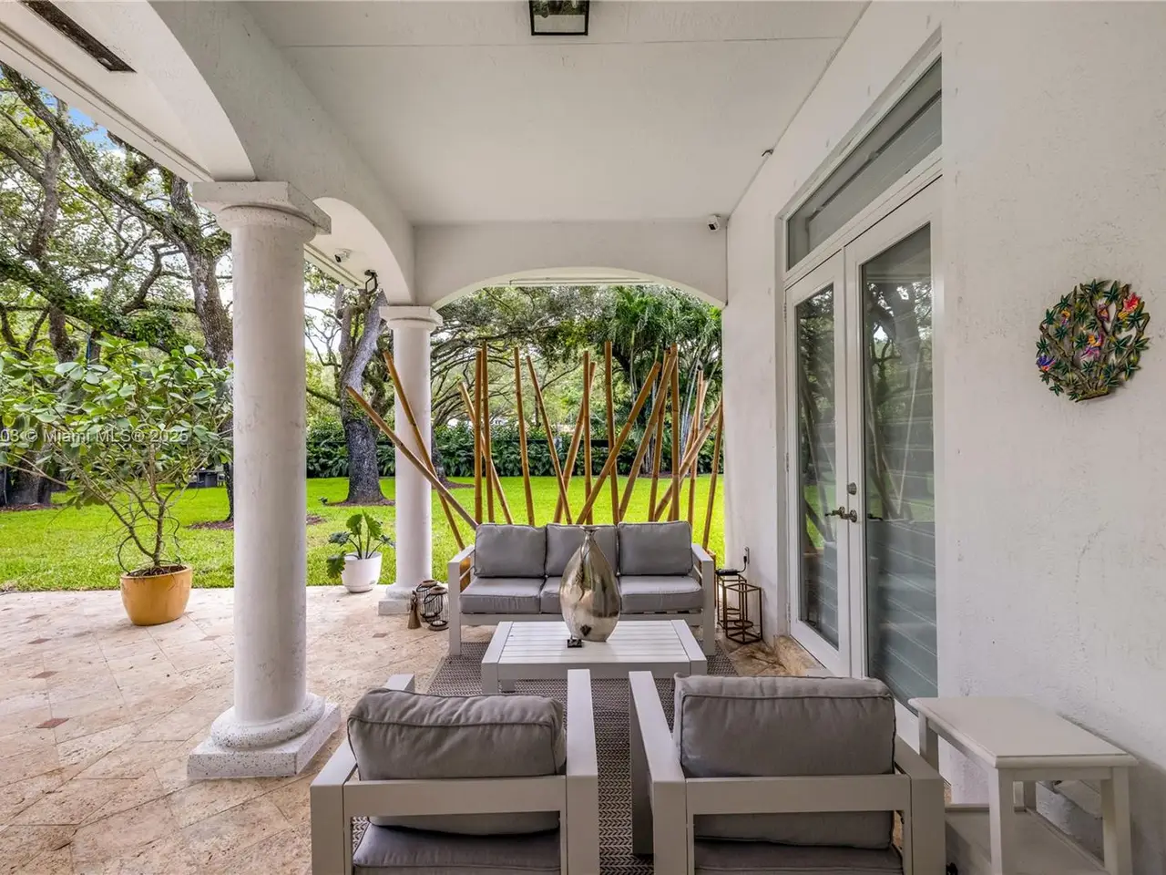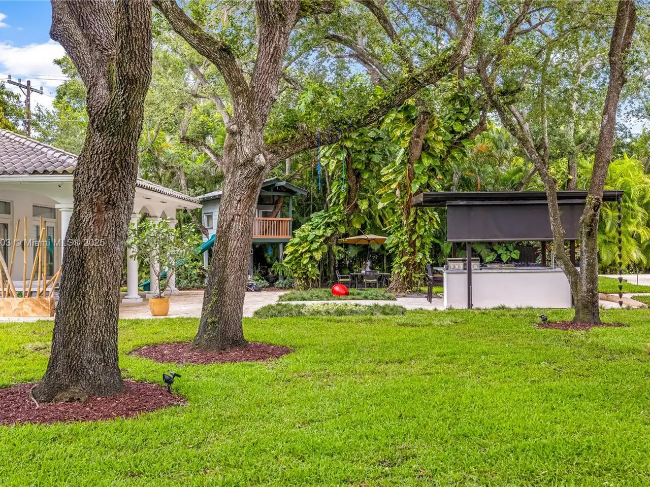 Stunning gated 1-story 8,126 total SF residence on a quiet cul-de-sac in prime North Pinecrest, steps from Gulliver & Beth Am. Set on a lush 1.1 acre with a 2-story, 1,300 SF guesthouse, treehouse, & ample parking. The 6-bed, 5.5-bath main home offers an office, new impact windows/doors, & Firenze Carrara polished marble tile throughout. Gourmet kitchen boasts a leather-textured marble island, Veneta Cucine cabinetry, & Miele appliances. Guest bath features full-height, single-slab Italian tile. Primary suite includes dual walk-in closets & a spa-style bath with Kohler DTV+ faucet less system for steam, audio, chromotherapy, & lighting. Whole-house Brilliant system manages lighting, Zoom intercom, & Sonos audio indoors/out. Outdoor oasis includes a new summer kitchen & resort-style pool.