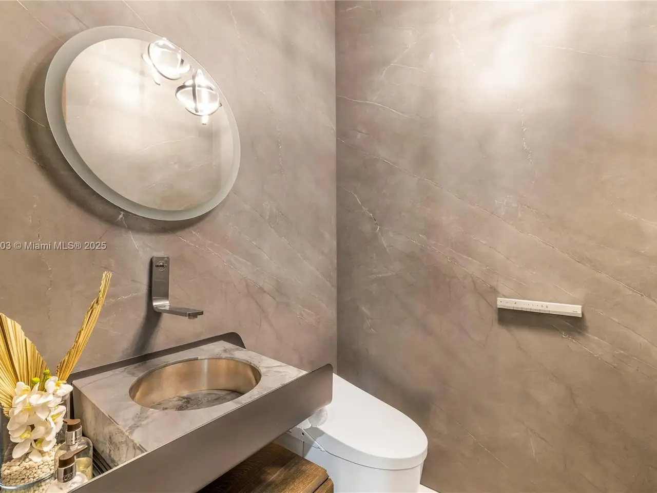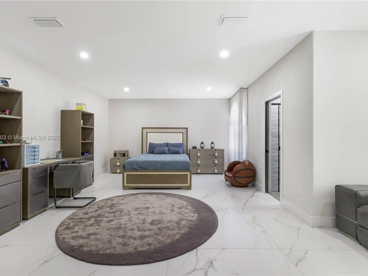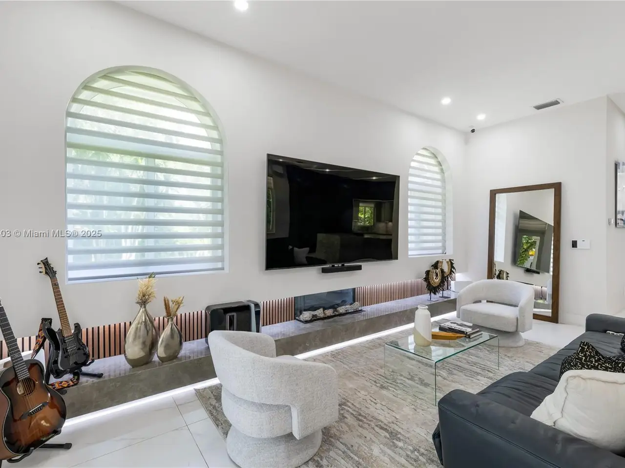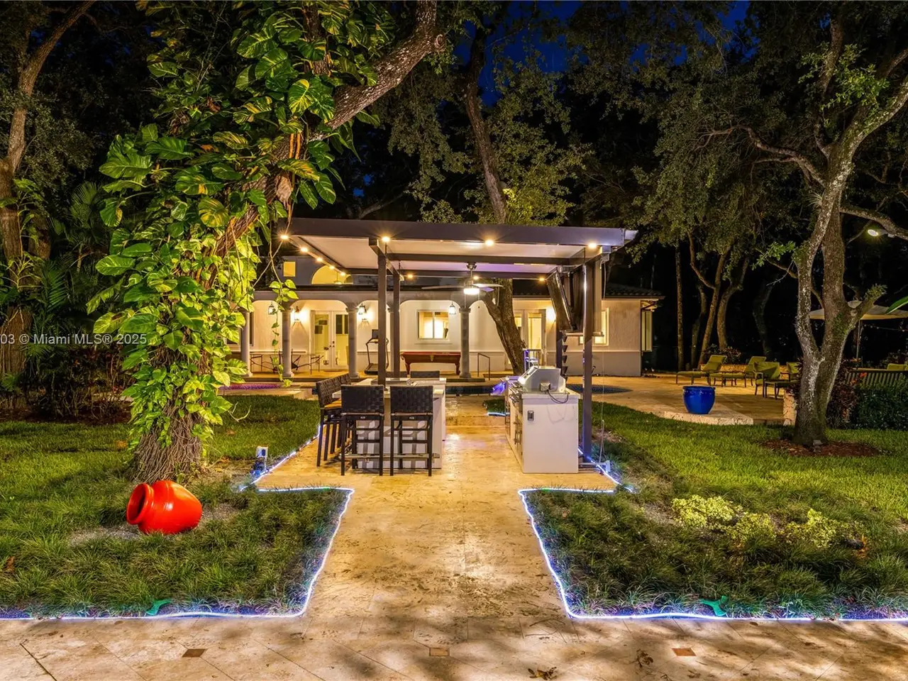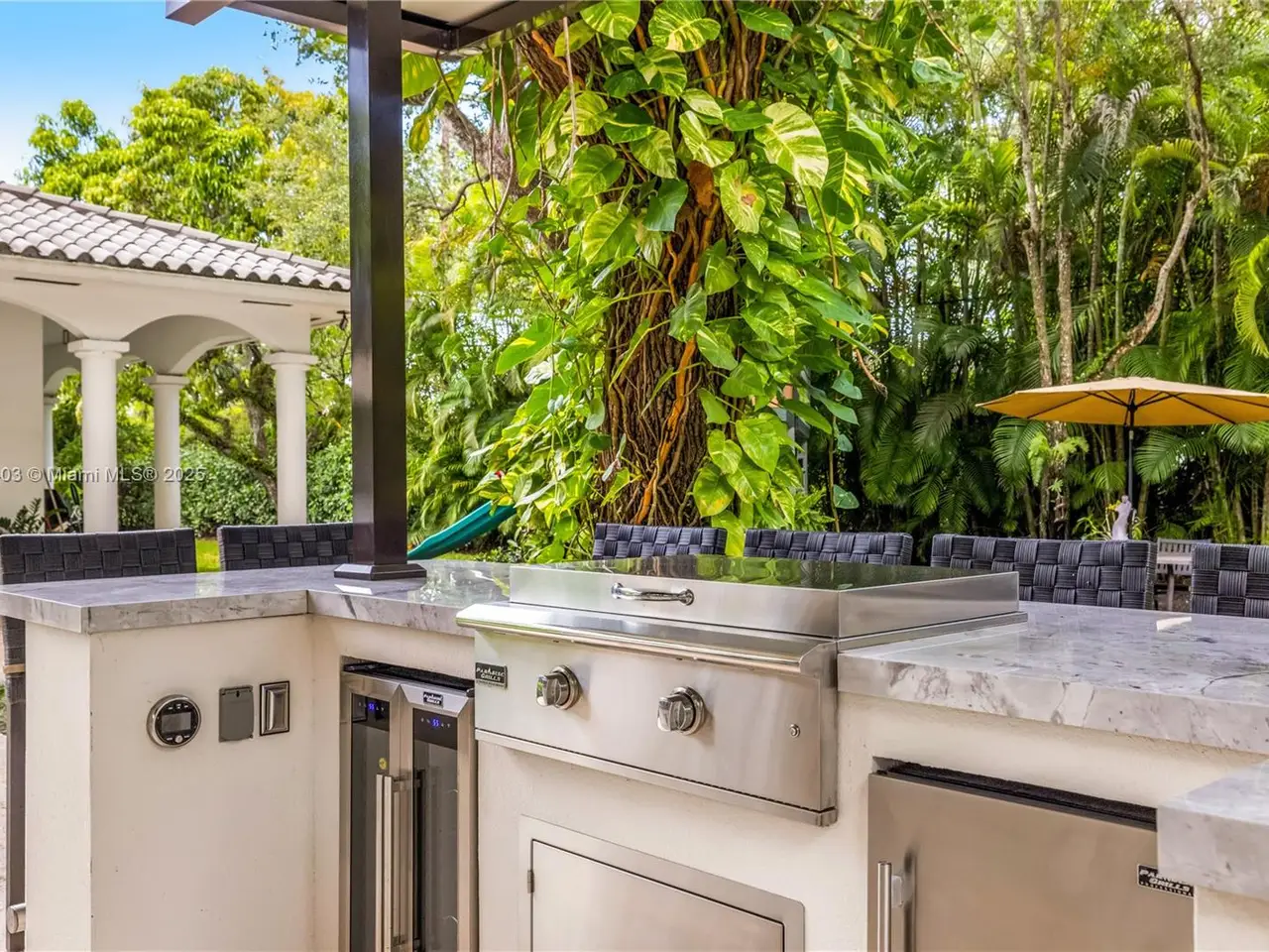 Stunning gated 1-story 8,126 total SF residence on a quiet cul-de-sac in prime North Pinecrest, steps from Gulliver & Beth Am. Set on a lush 1.1 acre with a 2-story, 1,300 SF guesthouse, treehouse, & ample parking. The 6-bed, 5.5-bath main home offers an office, new impact windows/doors, & Firenze Carrara polished marble tile throughout. Gourmet kitchen boasts a leather-textured marble island, Veneta Cucine cabinetry, & Miele appliances. Guest bath features full-height, single-slab Italian tile. Primary suite includes dual walk-in closets & a spa-style bath with Kohler DTV+ faucet less system for steam, audio, chromotherapy, & lighting. Whole-house Brilliant system manages lighting, Zoom intercom, & Sonos audio indoors/out. Outdoor oasis includes a new summer kitchen & resort-style pool.