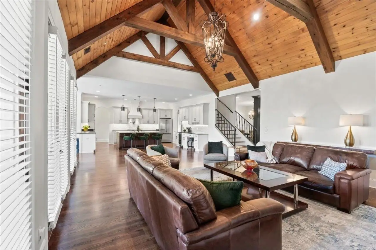 • Vaulted wood-beamed family room