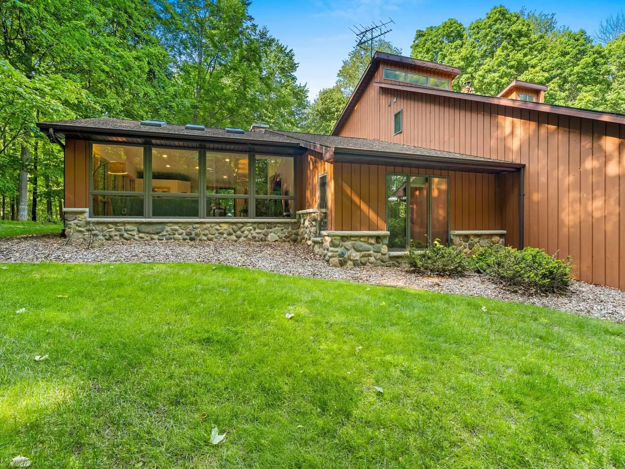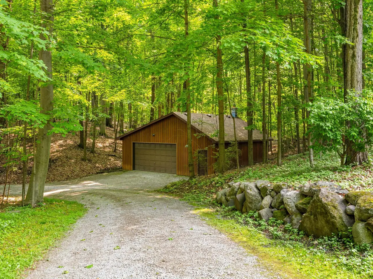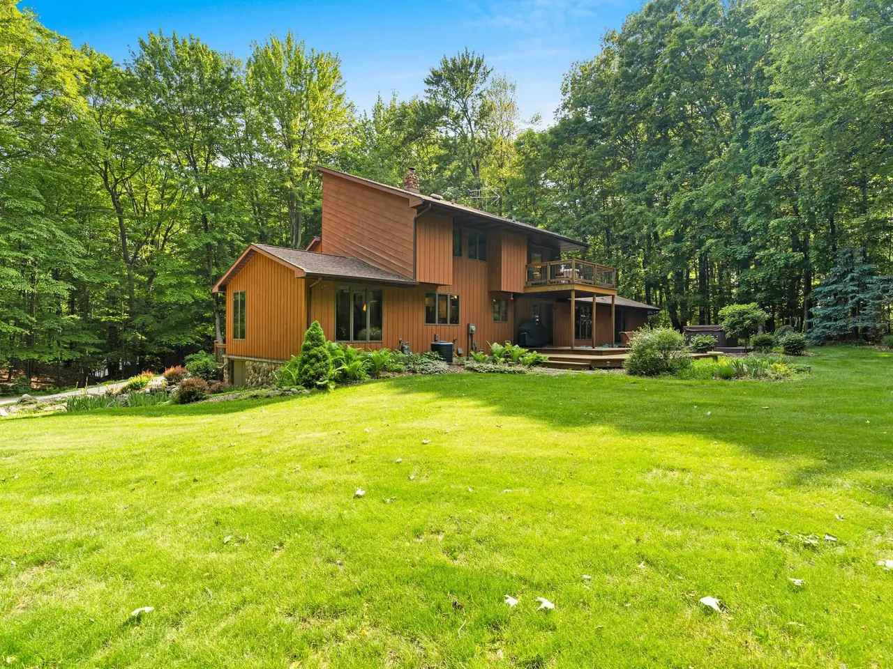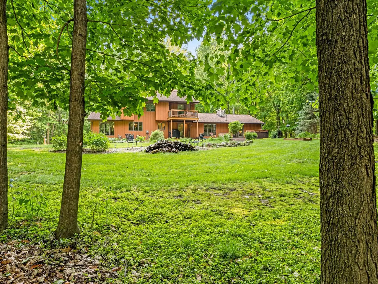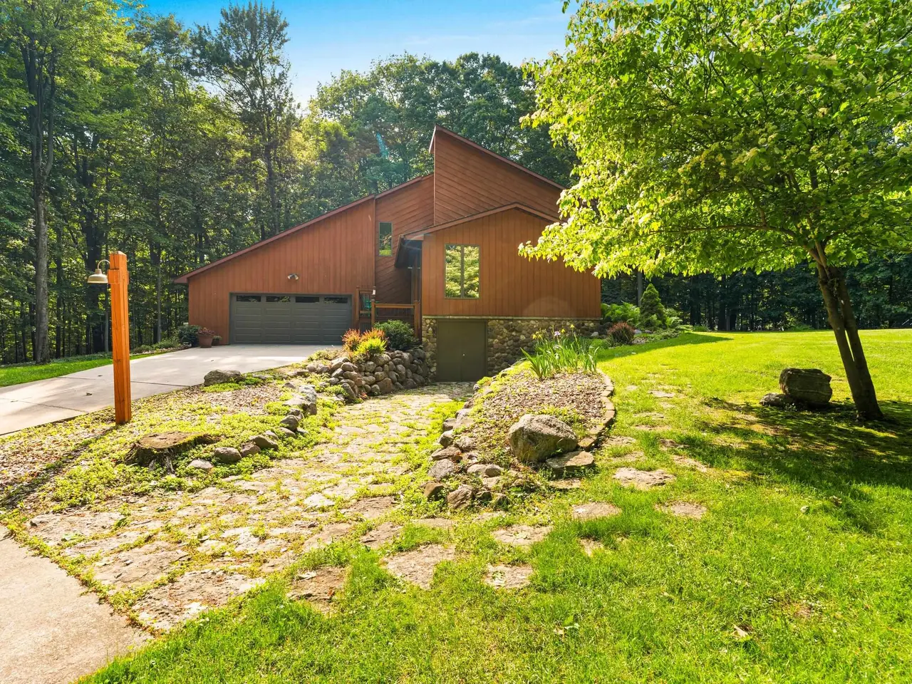 Secluded Wooded Retreat! Beautiful & meticulously cared for spacious home. Modern & upgraded amenities; architectural character and charm. Sought after private wooded location! 2 Outbuildings; lower is 30 X 50. Sits on almost 5 acres with water access and serene water views. Relax in the hot tub or by the fire pit and enjoy the magnitude of wildlife. Home offers fully renovated kitchen/dining with granite counter tops and ss appliances. 2 living rooms; wb fireplace. Sunroom with in-floor heat and panoramic sunset views. Mother-in-law suite on main level with heated floors. Optional 3 bedrooms upstairs including Master which features vaulted ceilings, walk in tile shower and walk-in closet. Walkout basement with ample storage. Close to New Zoo, Reforestation Camp and more. A must-see!