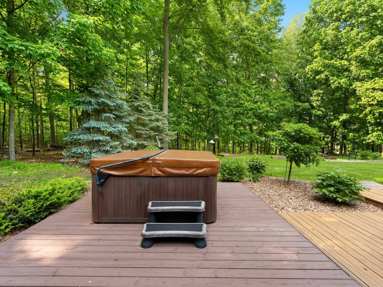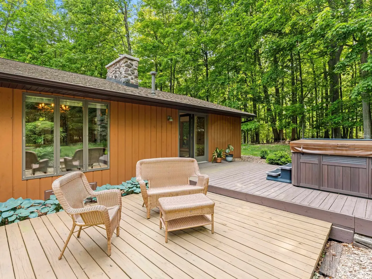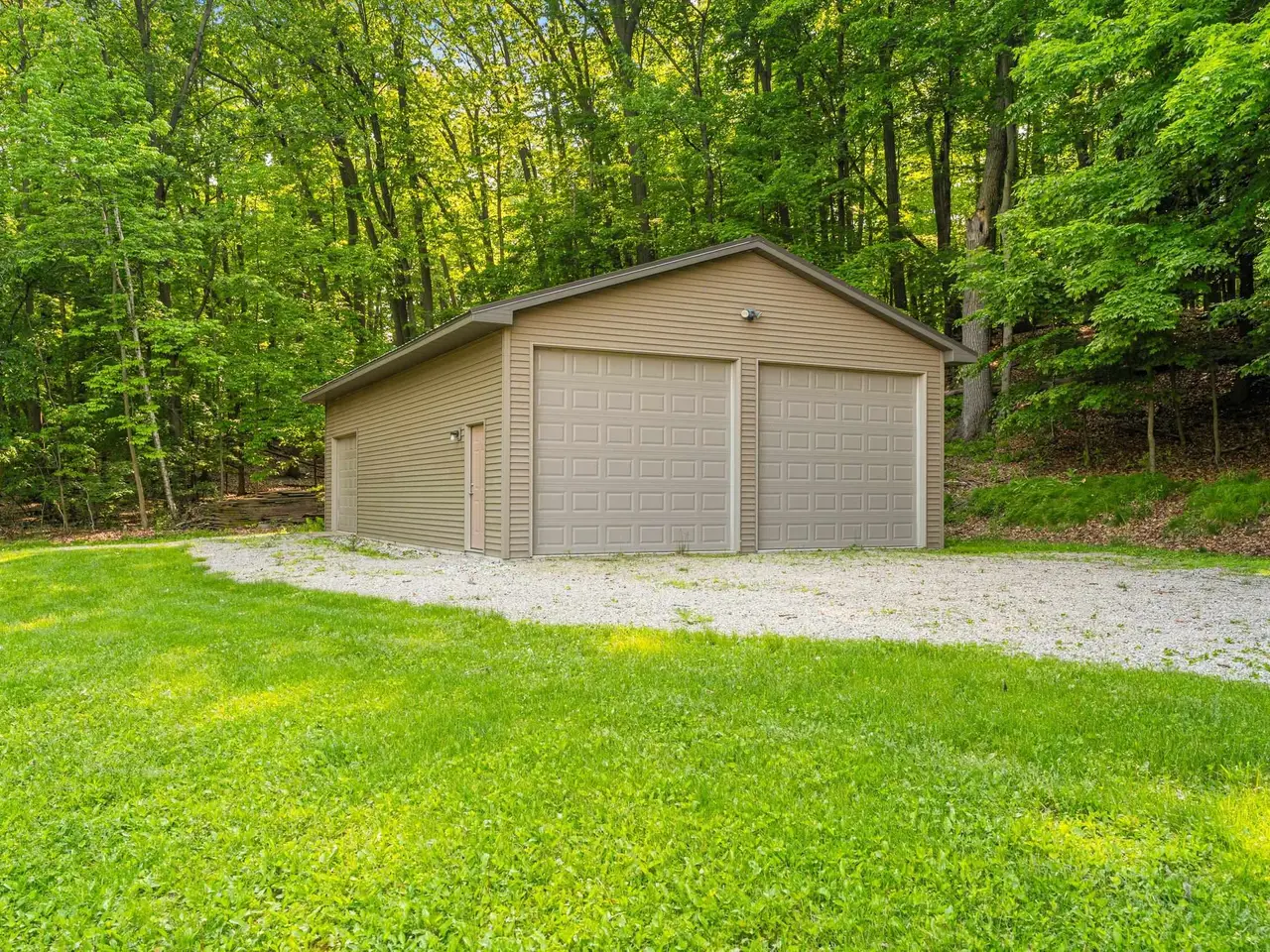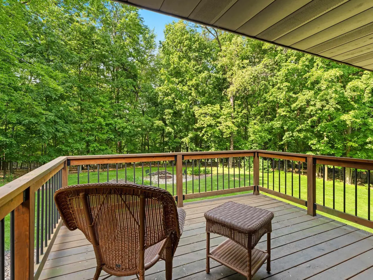 Secluded Wooded Retreat! Beautiful & meticulously cared for spacious home. Modern & upgraded amenities; architectural character and charm. Sought after private wooded location! 2 Outbuildings; lower is 30 X 50. Sits on almost 5 acres with water access and serene water views. Relax in the hot tub or by the fire pit and enjoy the magnitude of wildlife. Home offers fully renovated kitchen/dining with granite counter tops and ss appliances. 2 living rooms; wb fireplace. Sunroom with in-floor heat and panoramic sunset views. Mother-in-law suite on main level with heated floors. Optional 3 bedrooms upstairs including Master which features vaulted ceilings, walk in tile shower and walk-in closet. Walkout basement with ample storage. Close to New Zoo, Reforestation Camp and more. A must-see!