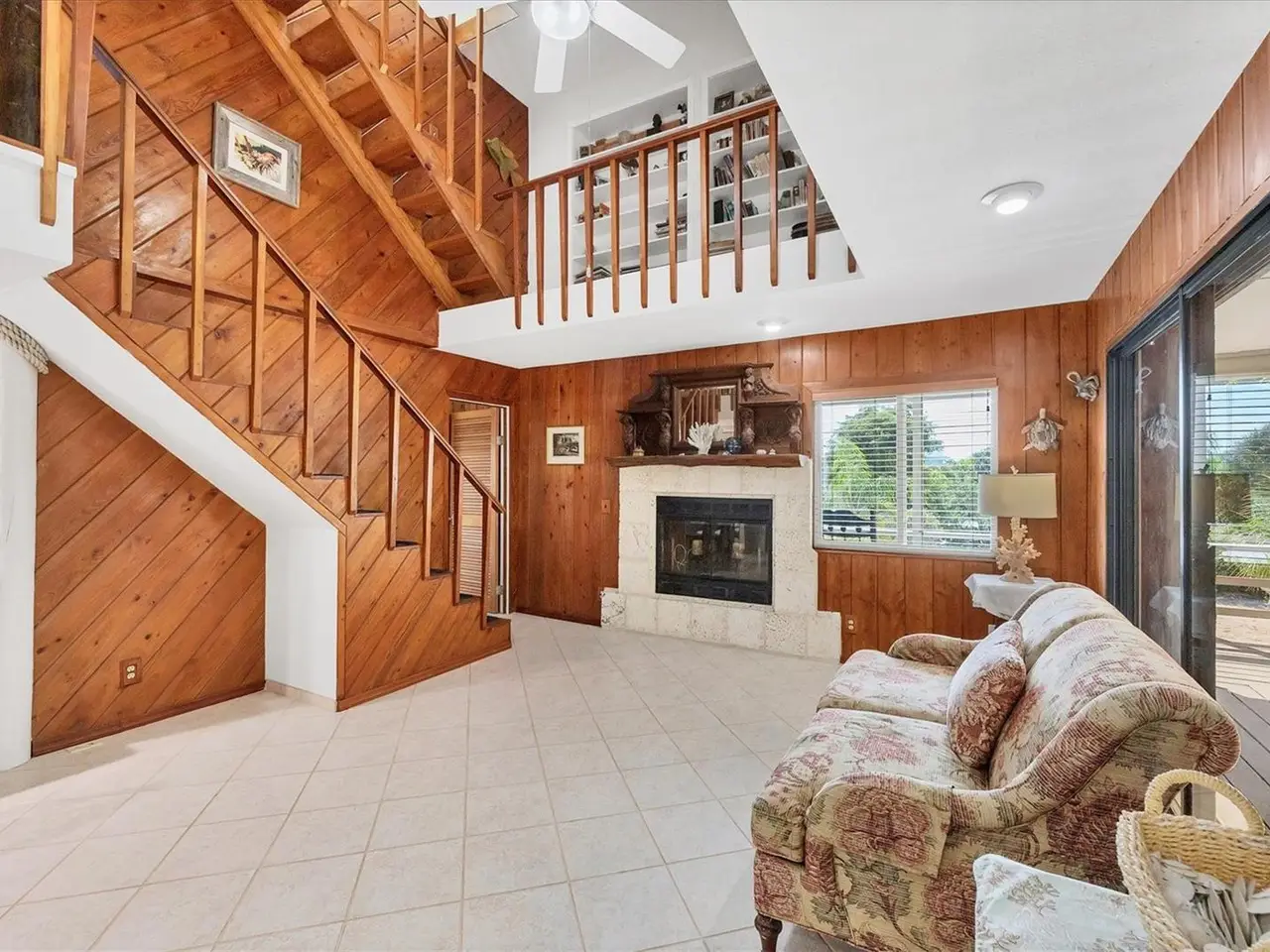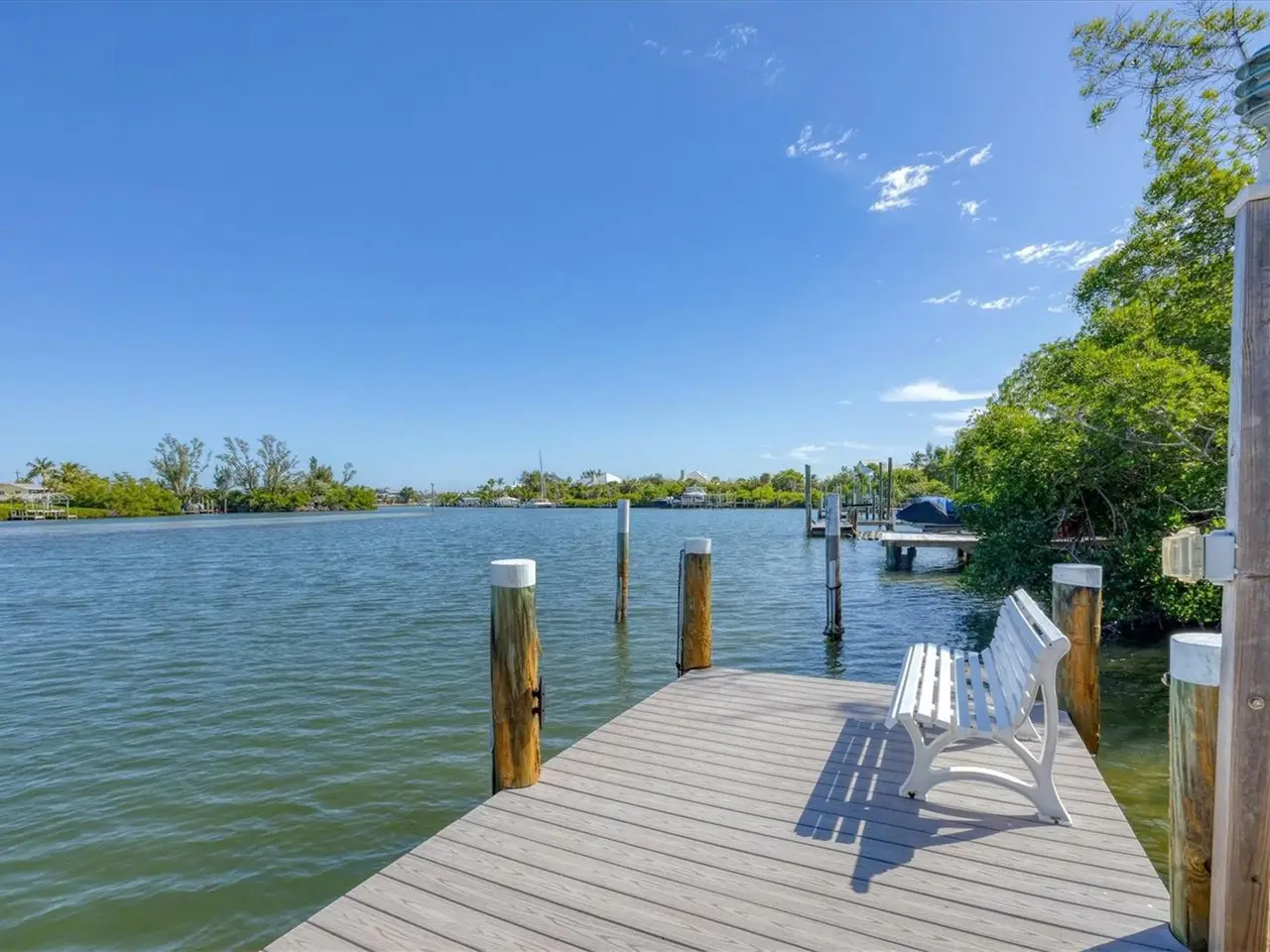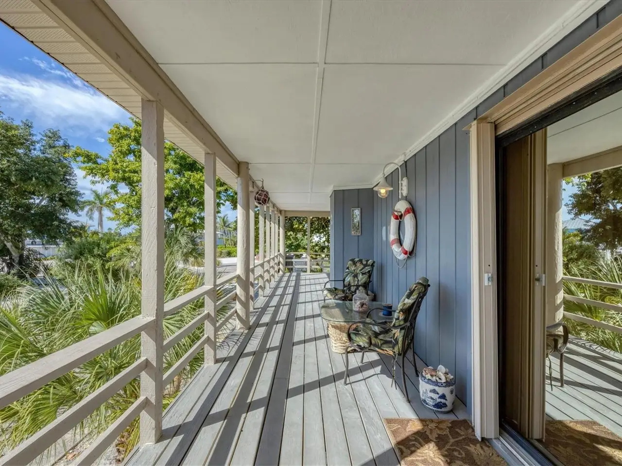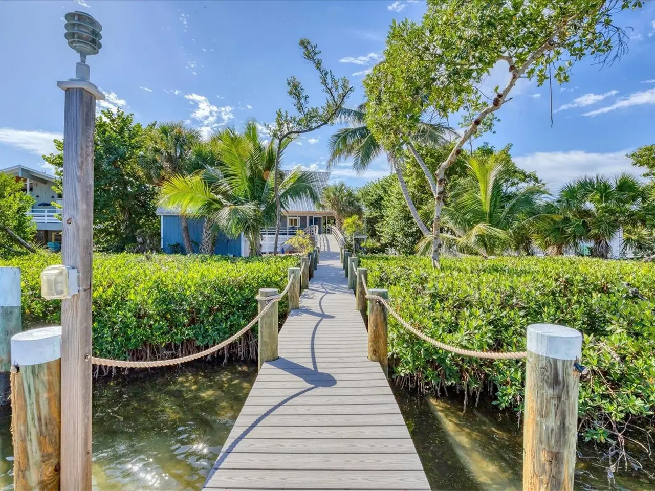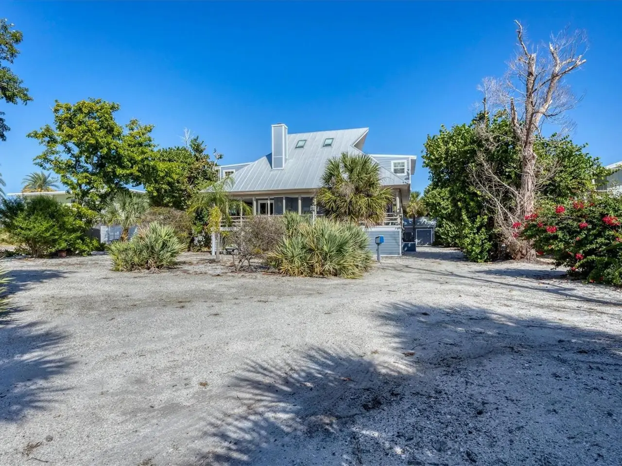 Welcome to Don Pedro Palm Island. This home is uniquely located on sailboat deep water with one of the largest open views of Old Bocilla Pass. These properties rarely become available. You have the opportunity to purchase this Key West Pole Barn designed home with large wrap around covered porches, a separate free standing 12x16 shed/work shop plus a private dock with AZEK decking and 10,000-pound boat lift all situated on an oversized parcel that has plenty of space for a private pool. No bridges to the ICW and the Gulf of Mexico for your boating pleasure. As you enter the home, you'll notice the vaulted ceilings, southern pine walls, and open floor plan. 3 sets of glass sliders in the great room that bring the outdoor living indoors with access to the covered porches. There's also a wood burning fireplace surrounded by a coral mantel. The spacious updated kitchen opens to the dining and living area for easy entertaining. There is a beautiful second floor loft with travertine flooring plus an office space, large entertainment area plus the primary suite that offers two sets of French doors and beamed ceilings. The primary bath offers dual sinks, updated cabinetry and walk in shower. The third-floor bedroom does not have a door or closet but is considered to be a 3rd bedroom by county records. Please call to view this custom home with high impact windows or accordion hurricane shutters with many recent upgrades including in 2024 upgraded electrical, hardy board siding, crab trap and hot water heater. In 2023 new HVAC system. In 2022, a new metal roof on the house and shed and in 2019 plumbing upgraded to PEX, plus in 2018 a new drain field. Come see what Palm Island has to offer.