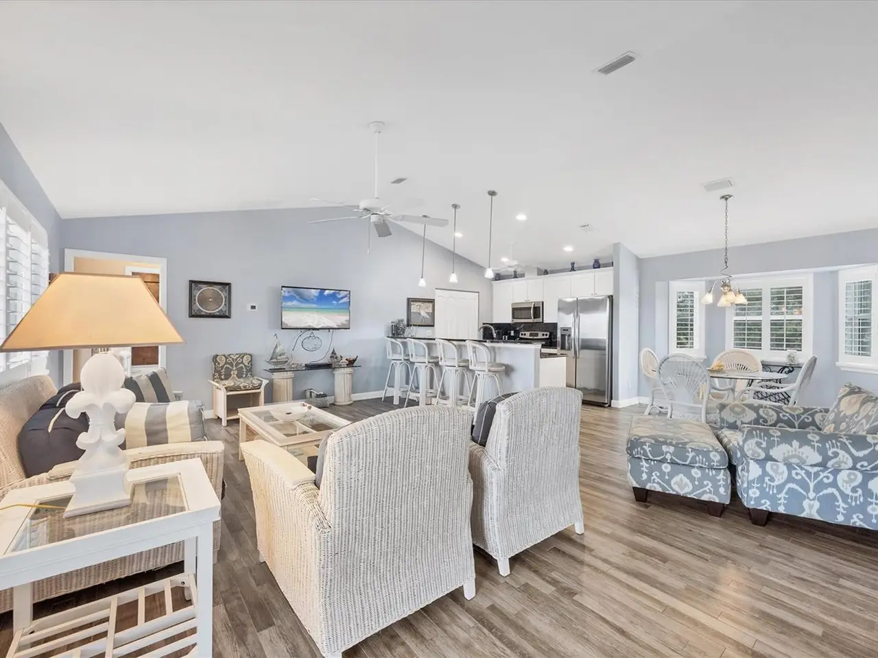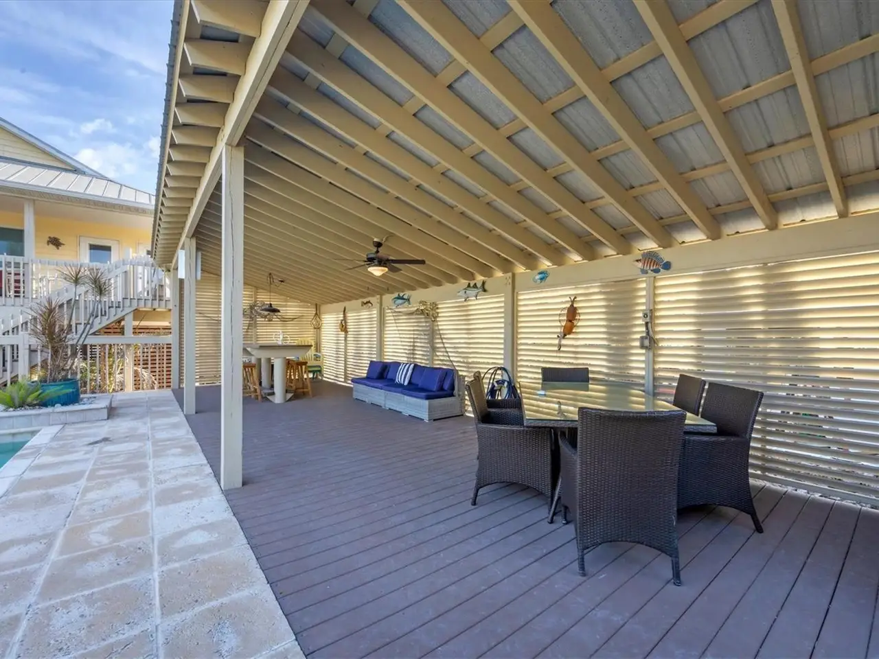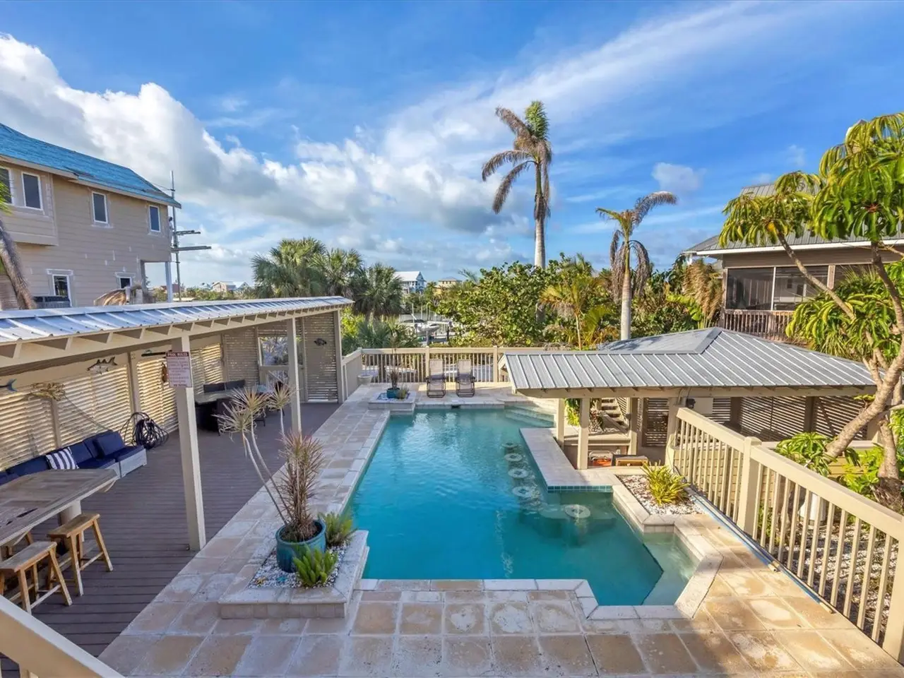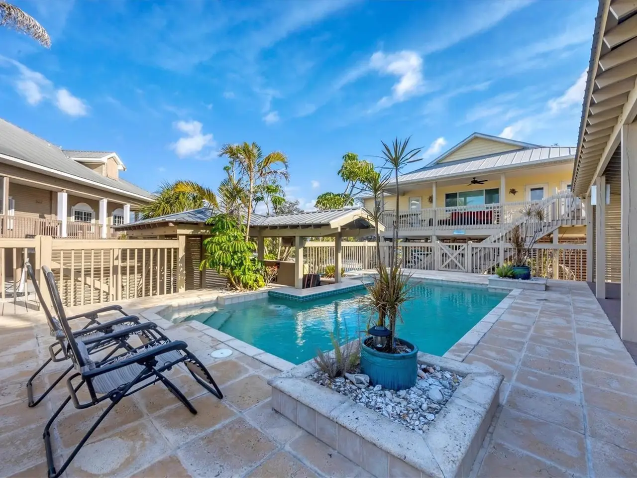 Welcome to Don Pedro/Palm Island! This exclusive Key West style Florida home offers tasteful and updated interior design as well as expansive outdoor entertainment area. The lot is just shy of one half acre. This 2 bedroom, 2 bath home has wood like tile flooring, windows with interior plantation shutters throughout, granite countertops throughout, stainless steel appliances, high coffered ceilings, impact glass and much more. Air conditioned Bonus Room with 1/2 bath. Outdoor living space includes a large pool with swim-up bar offering six in pool bar seating area, a covered 10 x 16 foot outdoor grill area, a 12 x 36 foot lounging area covered by metal roofing, louvered walls, composite decking. Additional exterior amenities include outdoor shower, air conditioned bonus room with pool bath, a 17 x 13 foot garage, and a 25 x 36 foot paved area under home. There is a shared dock located on Kettle Harbor waterway with no bridges to the Intracoastal Waterway and Gulf of Mexico. This property offers the best that Florida has to offer and is a MUST SEE.