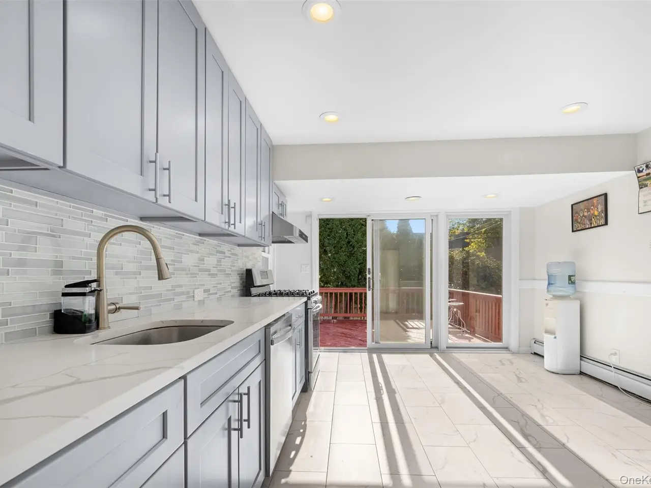 Beautiful Split-Level Family Home on a Corner Lot - Move-In Ready! Welcome to this inviting and well-maintained split-level single-family home offering comfort, style, and functionality. Step inside to a bright living room featuring a cozy fireplace, creating a warm and welcoming space for gatherings. The open layout flows seamlessly into the dining area and modern kitchen, complete with granite countertops, marble tile flooring, quality cabinetry, and full utilities. From the kitchen, step right out onot your private deck - a perfect spot for morning coffee or weekend barbeques. The upper level features three spacious bedrooms, including a primary suite with its own private bath. Each bedroom is filled with natural light, large windows with blinds, and generous closet space. A second full bathroom serves the remaining bedrooms. An additional fourth bedroom on the next level provides extra flexibility - ideal for guests, a playroom, or a home office - with two closets for added storage. The lower level offers a comfortable family room with tile flooring, a powder room, and access to the attached garage. The finished basement includes a washer and dryer and offers space for recreation, a gym, or storage. Outside, enjoy a beautifully landscaped backyard featuring a paved patio area perfect for family gatherings and summer entertaining. THe corner lot provides added space, privacy, and great curb appeal. Conveniently located near parks, schools, shopping, and major highways, this home offers everything you need for easy, comfortable living. A wonderful opportunity to own a move-in ready home that truly has it all!