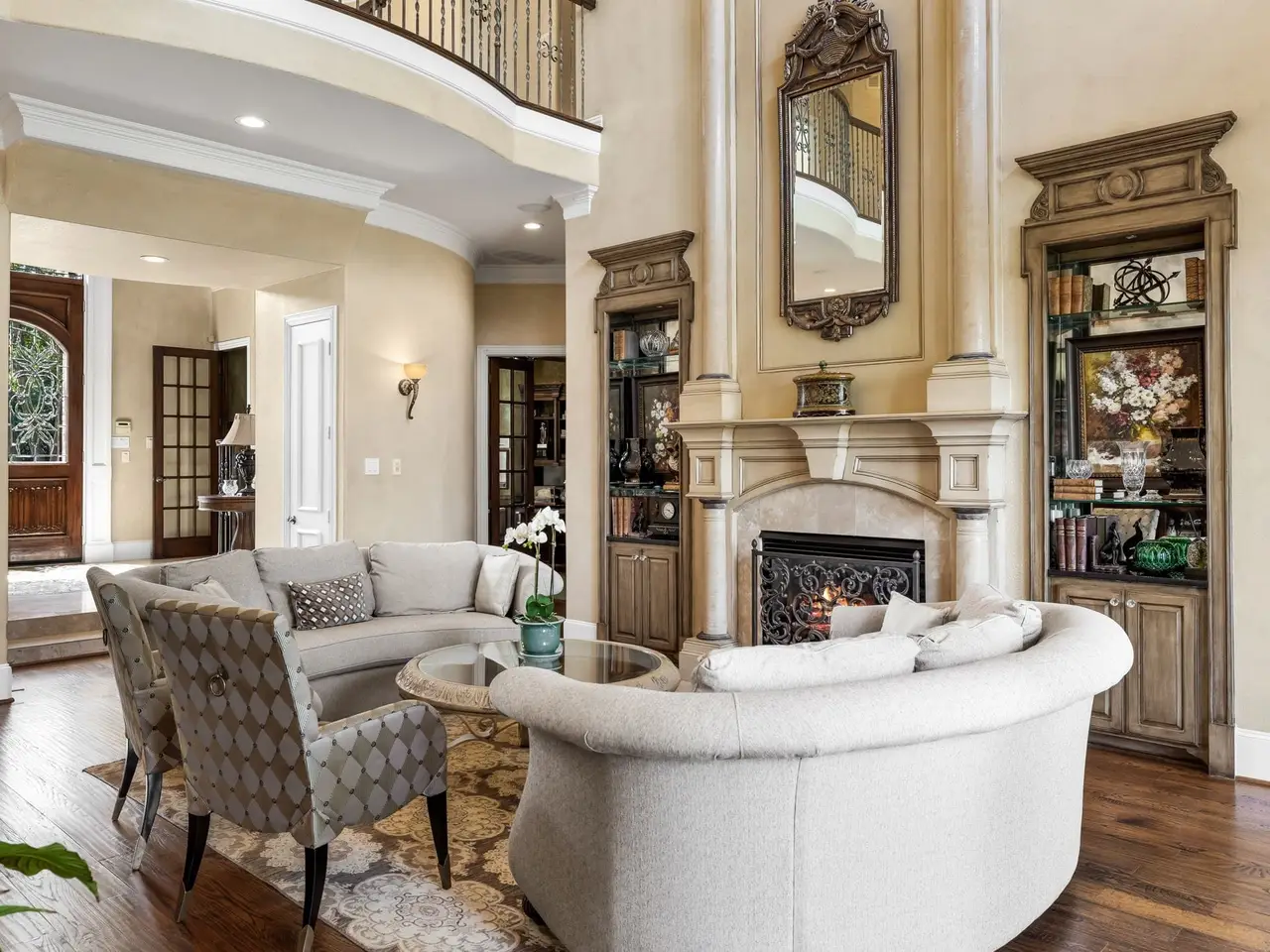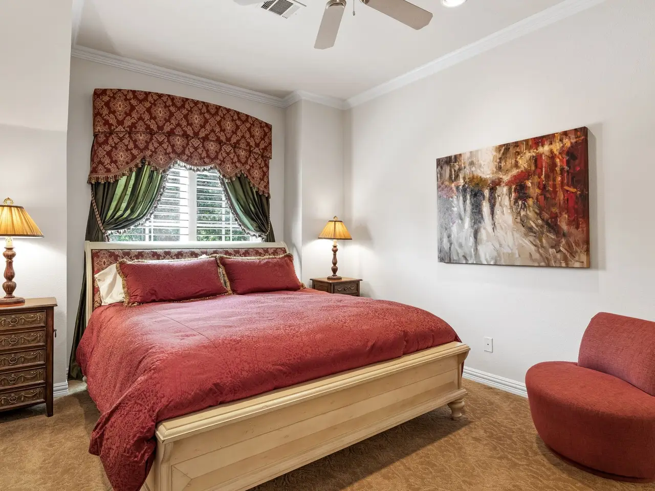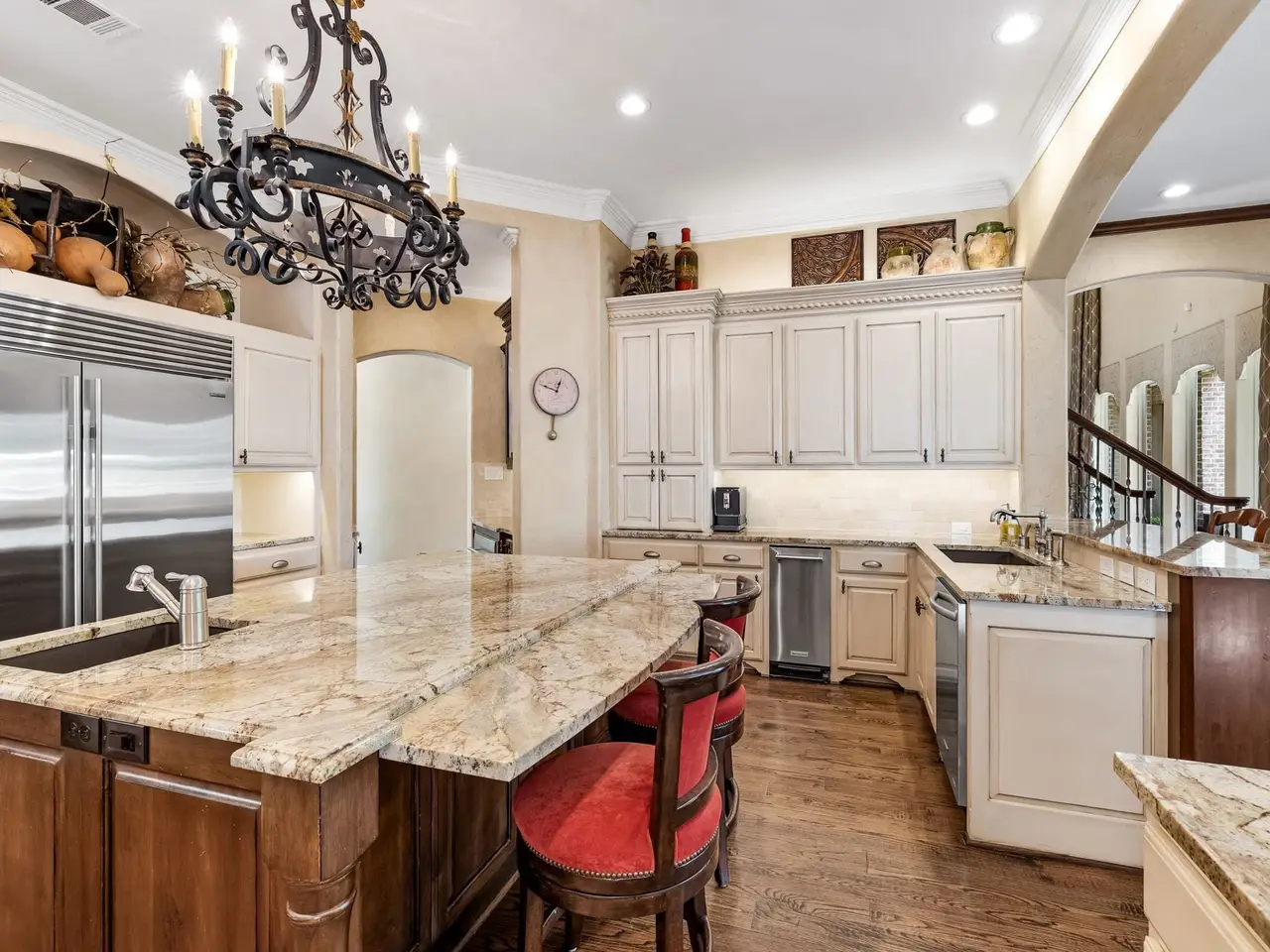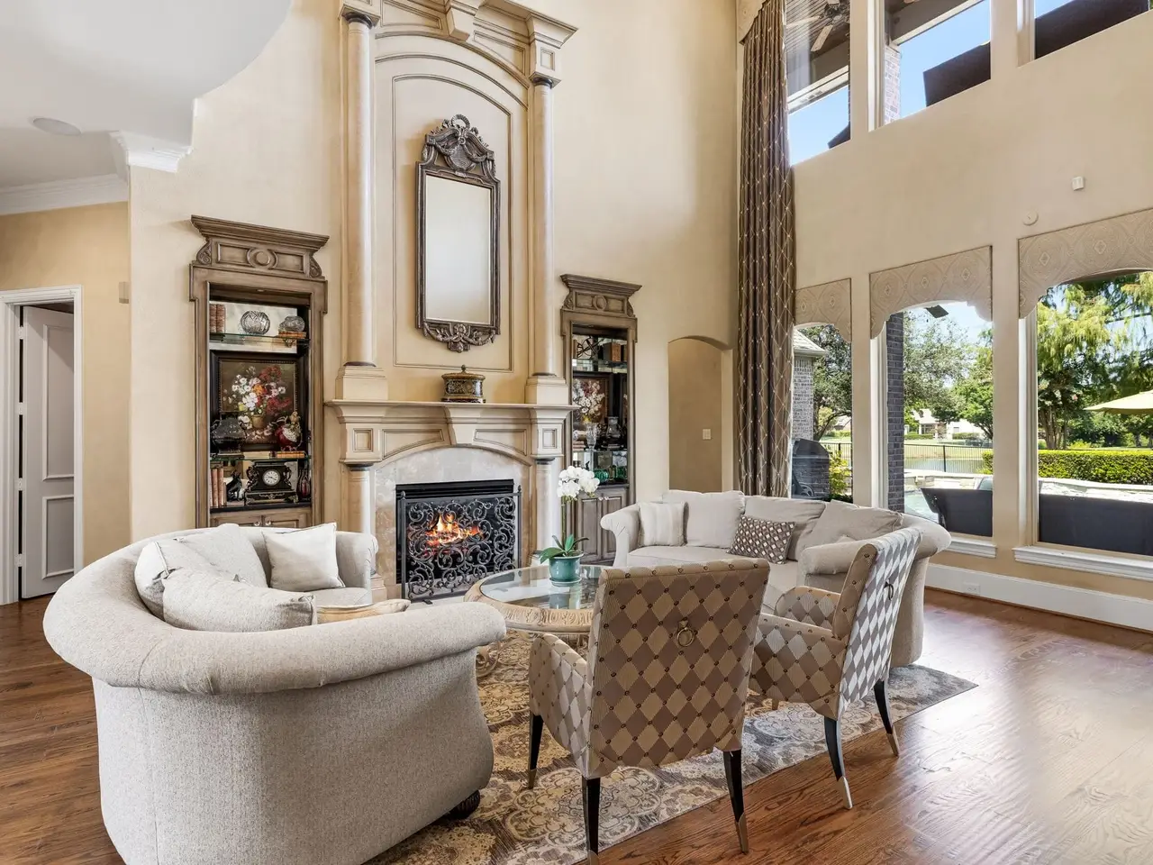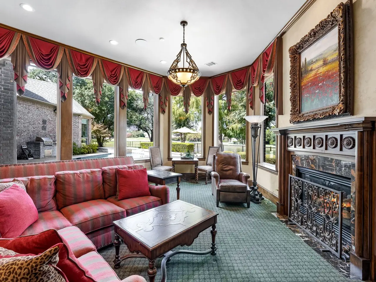 Nestled on a private cul-de-sac lot, this magnificent home offers a perfect balance of grand living and relaxed elegance, all set against the breathtaking backdrop of Gleneagles golf course and a tranquil lake. Your journey begins by stepping through custom leaded glass doors into a spectacular entry defined by a majestic double staircase and mosaic tile. Living room features a cathedral ceiling and stunning wall of windows that frame the golf course and sparkling pool. Its an ideal setting for both quiet evenings and grand celebrations. Automated Lutron shades and lighting throughout allow you to effortlessly set the perfect ambiance. Outside is your private outdoor oasis, where a sparkling pool and spa seem to merge with manicured greens. Built-in grill and refrigerator make al fresco dining a pleasure, while the expansive wrap-around lake view adds serenity. Gourmet kitchen is a chef's dream, featuring a large island, Sub-Zero refrigerator, Wolf commercial gas range, and dual convection ovens. Enjoy casual meals in the breakfast nook with a charming built-in banquette. Den provides a cozy retreat with its golf course views, while the elegant dining room, with its butler's pantry and chandelier, is ready for formal gatherings. Primary suite is a peaceful escape with a sitting area that overlooks the golf course. Spa-like primary bath elevates relaxation to an art form, featuring a spacious walk-in shower, a hydro-tub, and a see-through electric fireplace that connects to the bedroom. The custom closet is a room in itself, with a center island and built-in dressers topped with granite. Game and media room is the ultimate destination for fun, with bar, refrigerator, and attached arcade room. Study provides a perfect space for focus, complete with a wet bar and a wall of built-ins. Practicality is not forgotten, with a walk-in attic, large storage closet, front & back staircases, and safe room for peace of mind. Every detail of this home is designed to enrich your lifestyle.