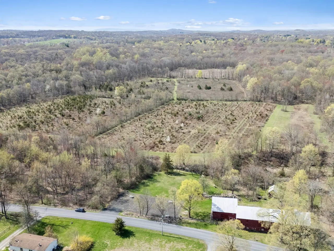 Open fields with deciduous forest